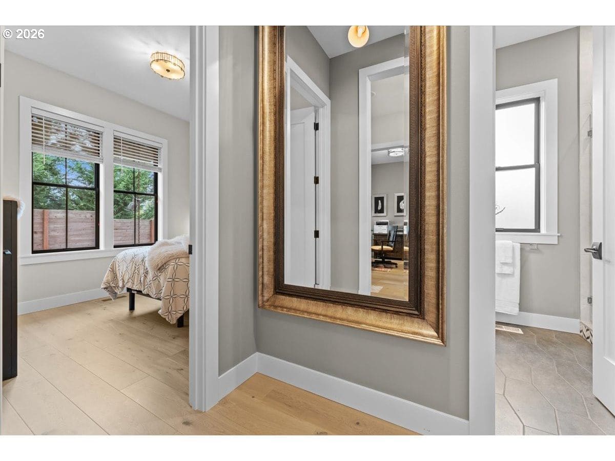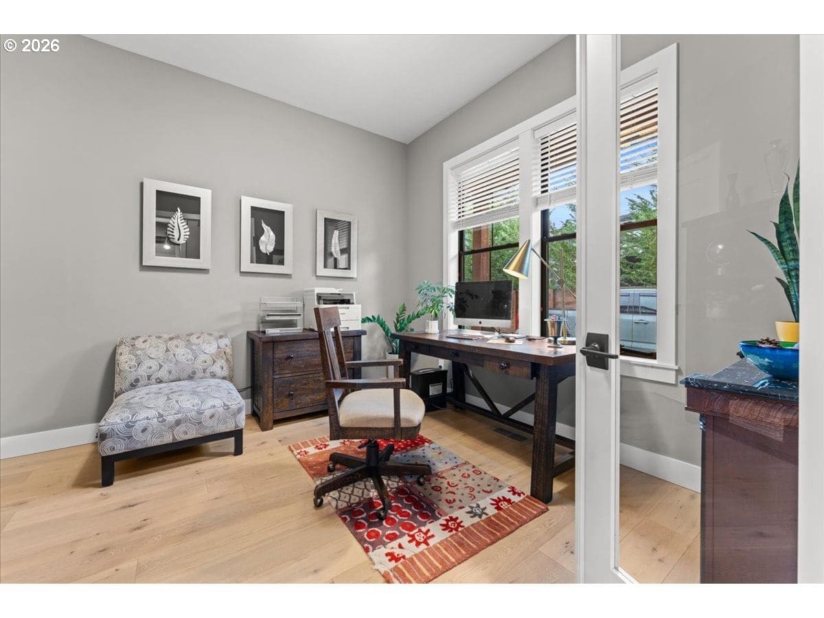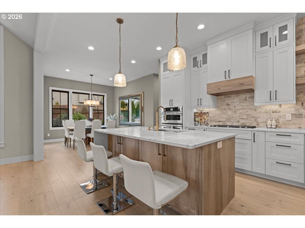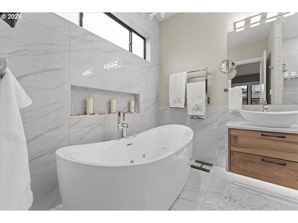 Welcome to this Modern Farm House with metal roof, surrounded by Fanno Creek Trail, Garden Home Park, Garden Home Recreation Center, walking trails, local shops (Black Rock Coffee, Trader Joe's, Ace Hardware, Dogtopia, Mudbay, and more) just minutes away and less than 2 miles from Washington Square Mall. Built with Earth Advantage/Energy Star practices for efficiency, durability and comfort. Main-level living with three bedrooms and two baths on the main, plus an upstairs multi use entertainment room with a built-in wet bar. Private fenced yard and large covered porch with vaulted ceiling, fan and BBQ hookup. South facing garden area with maturing apple and cherry trees, generous size shed for all your garden gear and generous RV parking for your favorite adventure vehicle complete this charming, light-filled home. Featuring high and vaulted ceilings, 8' doors, Fiberglass Marvin windows, quartz waterfall countertops throughout, heated tile floors in primary and under-the cabinet lighting in both bathrooms. Easy reach to major freeways, major employers, and everyday amenities. Your exciting next chapter starts here!