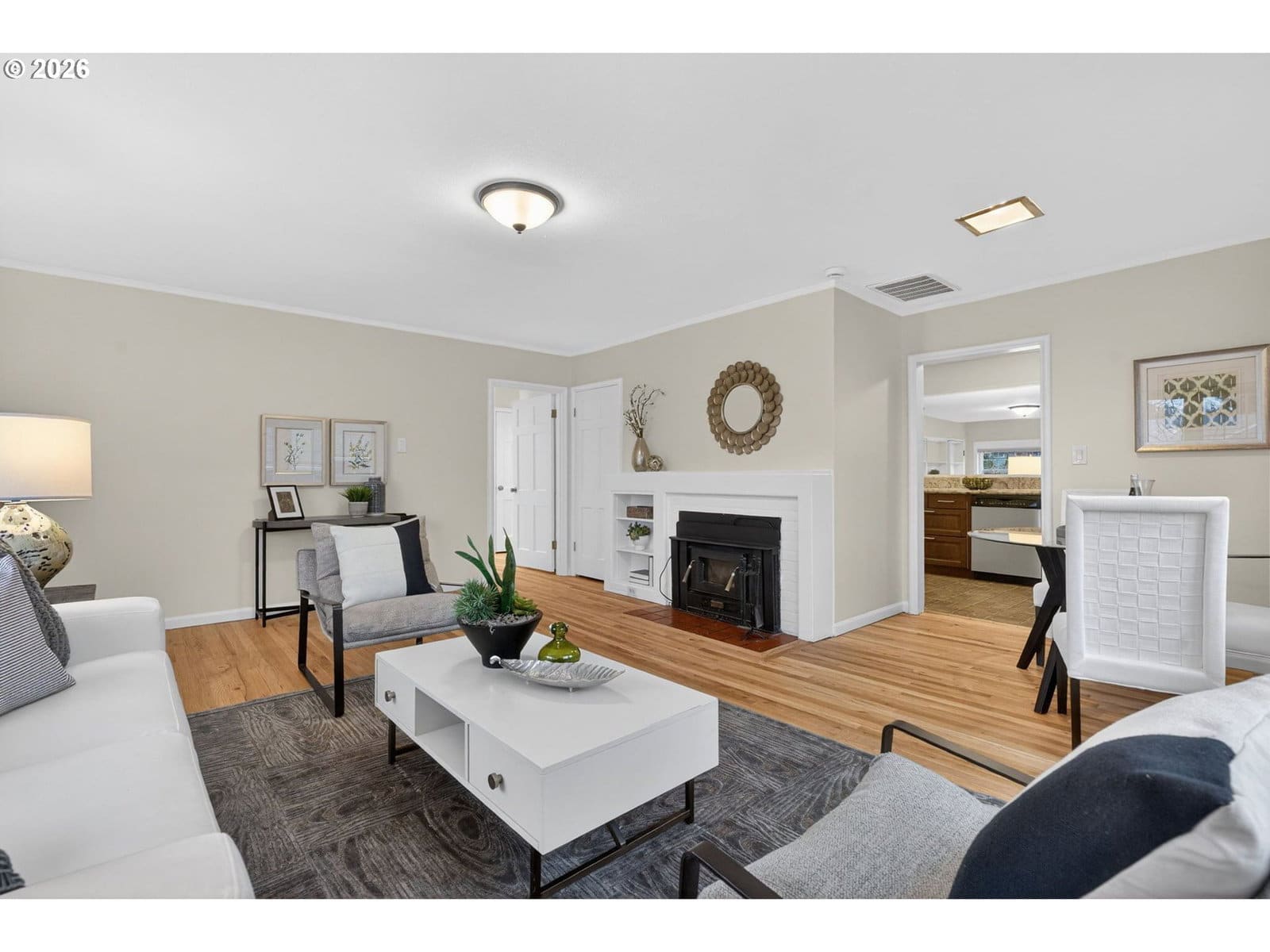 Cedar Hills jewel box! One level living at its best on this beautiful tree lined street in a quiet, sought after neighborhood! This charming ranch lives larger than it appears, sitting on a spacious 8,200+ sq ft lot with ample room to garden, play, or entertain. The welcoming entry opens to a bright living room featuring a fireplace, original built ins and dining space. Refinished hardwood floors and fresh interior paint create a light, inviting atmosphere throughout. The generous cook’s kitchen is stylish and functional with granite counters, stainless steel appliances, and abundant storage. Designed with flow in mind, the kitchen connects seamlessly to the large family room with woodstove and brand new carpet. A “hidden” laundry closet and nearby full guest bath add everyday convenience. You will love the multi purpose bonus room off the family room – an ideal space for a home office, craft room, or playroom! Relax in the primary bedroom, which opens to the backyard patio to enjoy your morning cup of coffee; two additional bedrooms and full bath with tub/shower combo & updated lighting. Step outside to a private, fenced backyard oasis featuring an expansive stamped concrete patio, whimsical garden paths, and mature plantings—perfect for alfresco dining or quiet relaxation. Need storage? An attached large storage room provides additional space for bikes, tools, or hobbies. Central A/C; major updates include new carpeting (2026), refinished hardwoods (2026), new sewer line (2024), new water heater (2023), and new roof (2020). HOA is for RV parking lot south of property. Stroll or bike to nearby Center St park with tennis and basketball courts, a playground with swings and a walking path! Enjoy shopping in nearby downtown Beaverton & newly renovated Cedar Hills Crossing; easy access to public transportation and great freeway access!