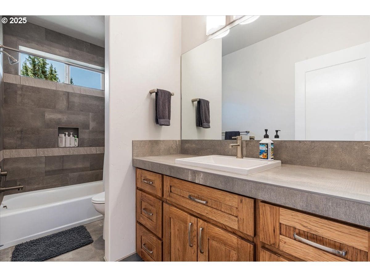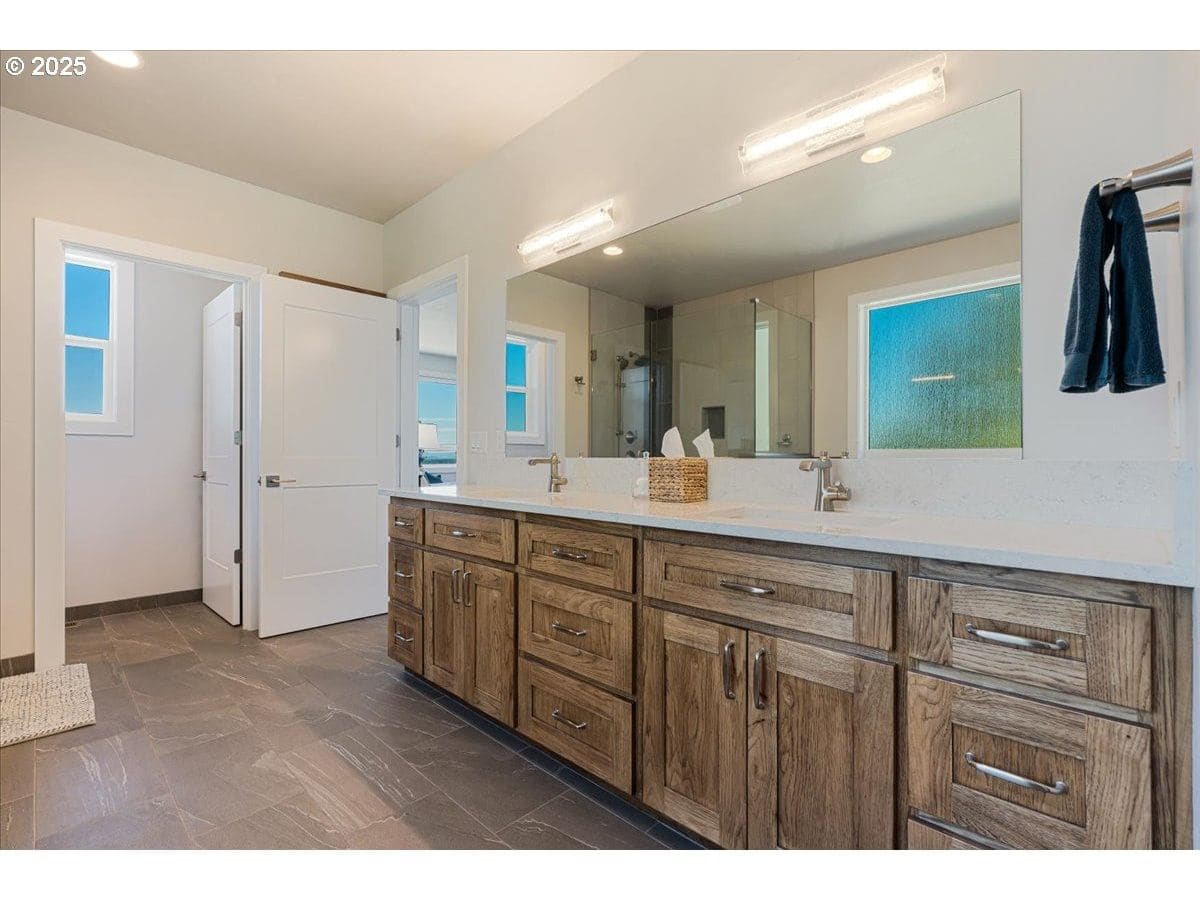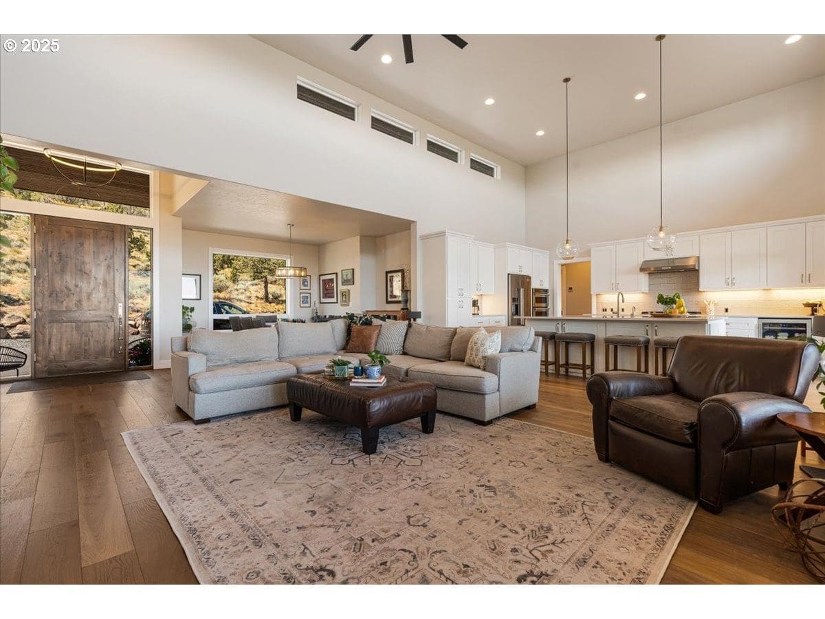 Welcome home to your Sundance Ridge estate where high desert living meets resort-style luxury, nestled within the prestigious Eagle Crest Resort. This isn’t just a home—it’s your permanent staycation with the main living all on one level. Built in 2020, this masterful Northwest home offers 3,568 square feet of meticulously crafted living space elevated by 16-foot ceilings, transom lit great room, and custom wood flooring. Entertain in style in your gourmet chef’s kitchen adorned with slab quartz countertops, a generous island with breakfast bar, gas range, stainless steel appliances, instahot dispenser, wine beverage fridge, and soft-close cabinetry. Blending seamlessly with the great room centered on the gas fireplace with a floor to ceiling rock surround. The additional bonus room off the great room gives you plenty of space to practice your put indoors on the off-season. Comfort is key with 3 bedrooms, 2.5 baths, and dedicated office and laundry. The luxurious primary suite hosts sweeping views of the mountains, a soaking tub, tiled walk-in shower, dual-vanity quartz counters, and spacious walk-in closet. An additional 800 square foot of fully finished lower level flex space offers boundless opportunity with an additional garage and private exterior entrance.Live with peace in-mind as the home is equipped with a whole house air purifier and ionization generator.Perched on a 0.6-acre lot backing to the Cline Butte, your expansive 2-story patio opens to sweeping views of Mt. Jefferson, Mt. Hood, Smith Rock, and the cascading desert landscape beyond. As part of Eagle Crest Resort, enjoy privileged access to golf courses, a clubhouse, fitness center, tennis and pickleball courts, pools, a resort restaurant, RV/boat storage, and scenic trails emulating a luxury getaway lifestyle year-round. Live exceptionally in Eagle Crest today!