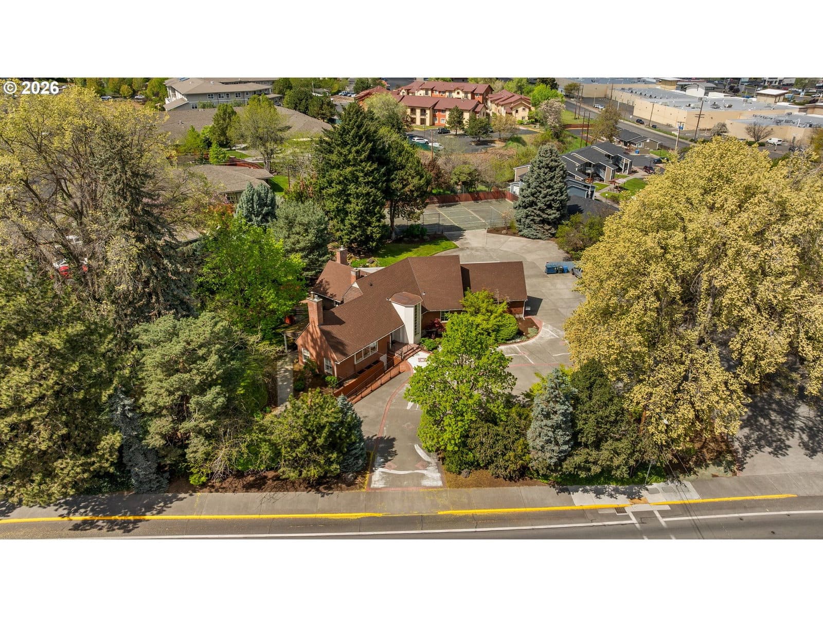 Grand in scale, rich in character, and rare in opportunity — this is the kind of property that stops you the moment you arrive. From the circular drive and mature landscaping to over 6,200 square feet of timeless living space spread across three thoughtfully designed levels, every detail feels intentional. Expansive gathering rooms, oversized bedrooms, built-ins, and multiple fireplaces create a home that feels both grand and inviting.Natural light pours through large windows, highlighting architectural details that speak to craftsmanship and permanence. The layout offers flexibility without sacrificing flow — equally suited for multigenerational living, a private live-work lifestyle, or simply room to grow into. The finished lower level, complete with separate access, provides an additional layer of versatility rarely found in properties of this scale. Outside, the grounds feel established and intentional. Mature trees, generous parking, and a private tennis and pickleball court make this property as functional as it is beautiful. The second tax lot — zoned high density residential — opens the door to future development potential, an increasingly rare find at this price point and in this location. This is more than just a home — it's a property with substance. A place designed for those who value space, privacy, and the kind of lifestyle that simply can't be found anywhere else in town. Opportunities like this don't come along often. Schedule your private showing today. Possible owner carry contract.