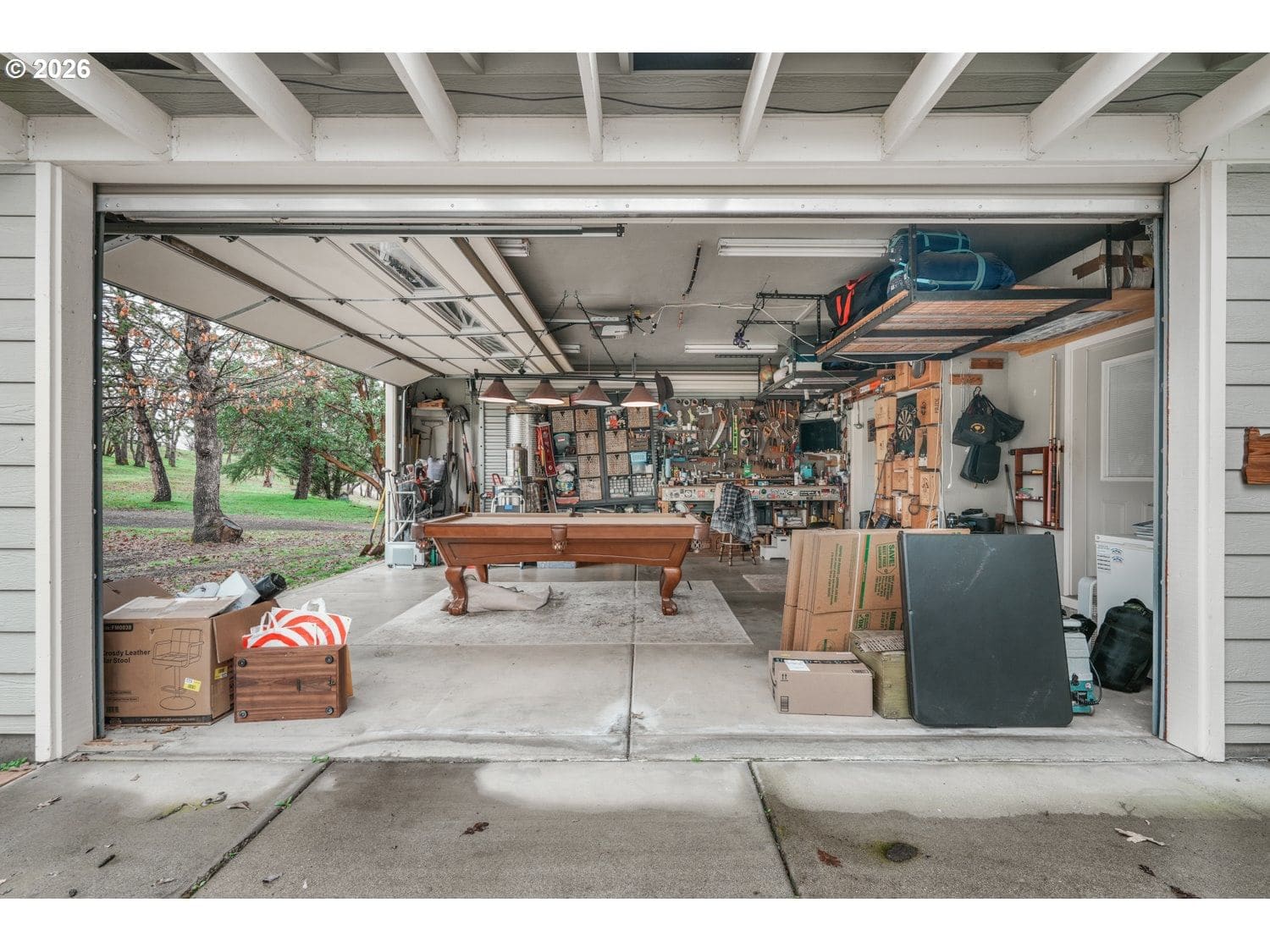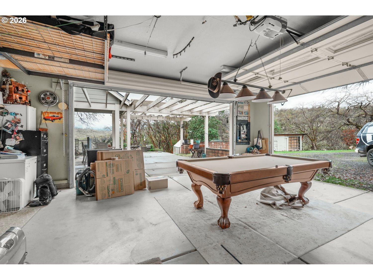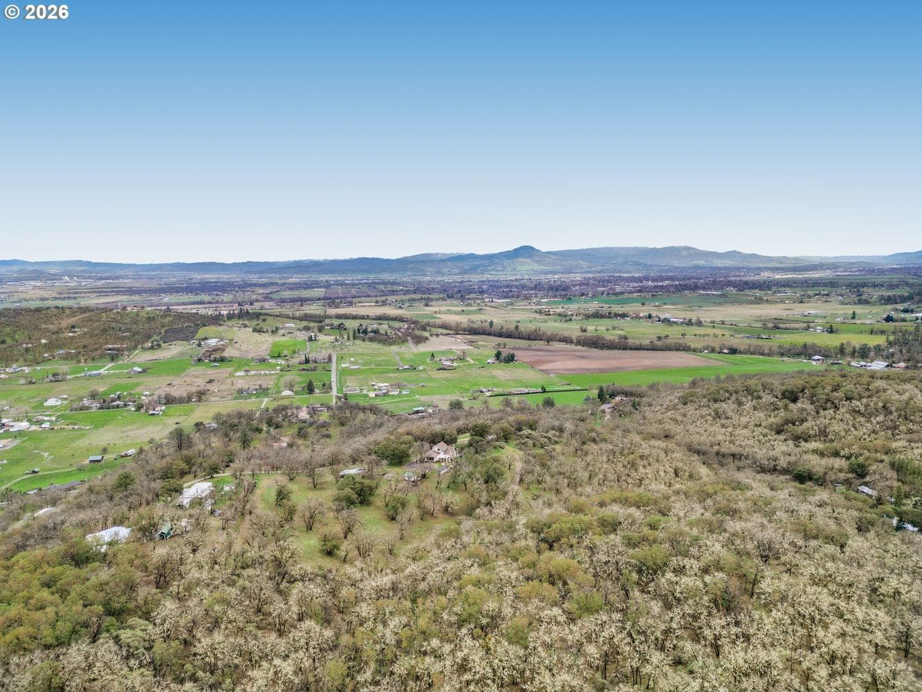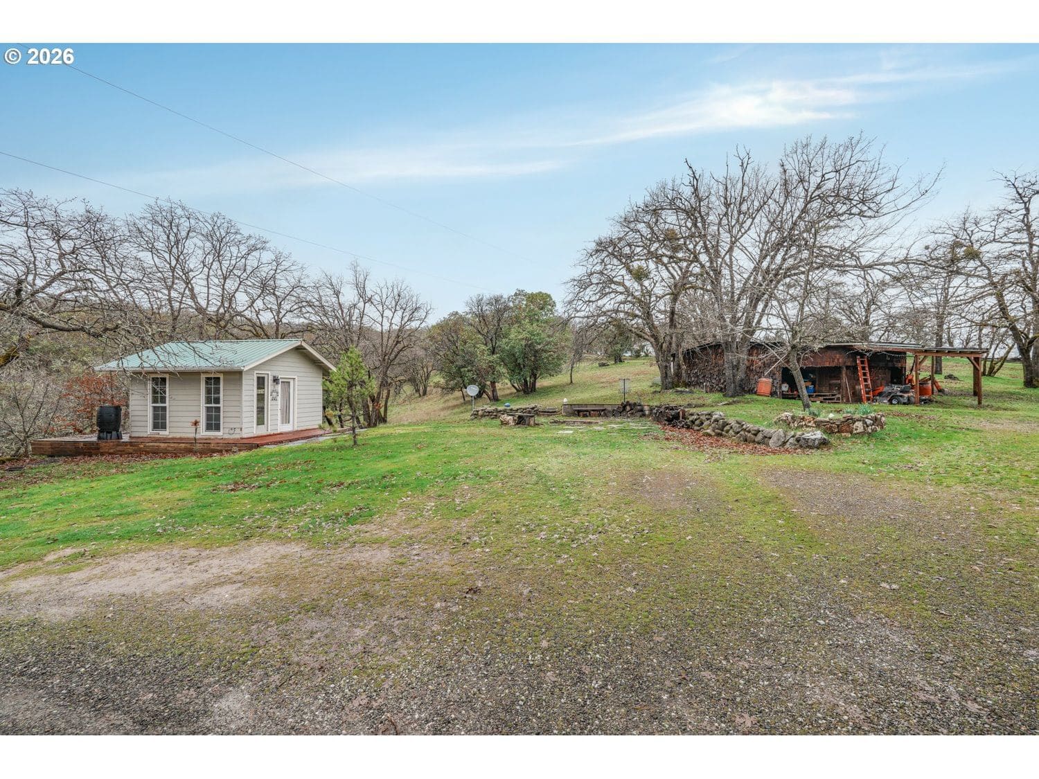 Perched high above the valley on 16.81 private acres, this custom-crafted cabin captures breathtaking views of Table Rock, Mt. McLoughlin, and Mt. Ashland from its expansive 44' x 31' wraparound covered porch. The peaceful setting offers wide-open vistas, abundant wildlife including deer and wild turkey, and even a historic 1800s gold mine that adds character and story to this one-of-a-kind property. Inside, warm hardwood floors span the main living areas, while large windows fill the home with natural light. The inviting living room features a stone wood-burning fireplace and soaring vaulted, beamed ceiling. Just off the living space, the dining area has sliding doors to the covered patio making it perfect for indoor-outdoor living. The kitchen is thoughtfully designed with granite countertops, stainless steel appliances, an island with bar seating and lots of prep space. A main-level bedroom with a double closet and a full bathroom offers flexibility for guests or multi-generational living. There's a convenient laundry room on the main level with a sink and built ins for storage. Upstairs, a loft with a skylight and built-in bookshelves creates an ideal reading nook or home office. The spacious primary suite showcases vaulted ceilings, a walk-in closet, and a private bath complete with dual vanities and a glass walk-in shower. Additional features include a detached bonus room with a vaulted ceiling that's ideal for a studio, office, or fitness space, a distinctive two-car garage that opens on three sides to function as a breezeway, and a detached shop divided into three separate rooms for projects, storage, or workspace. A generous dog run is ready for your four-legged companions. Enjoy the tranquility of country living with the convenience of being just 15 minutes from local restaurants and the Rogue Valley International–Medford Airport. *See updates list in documents.