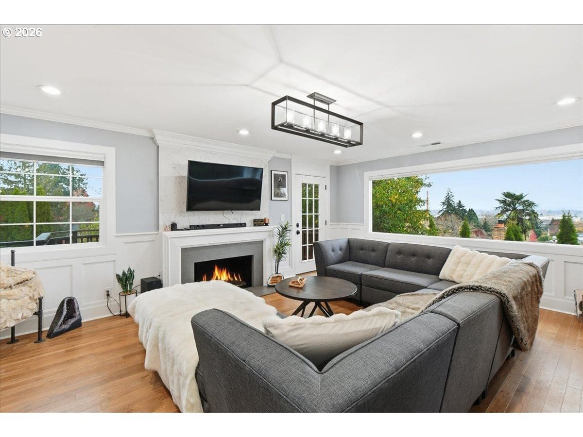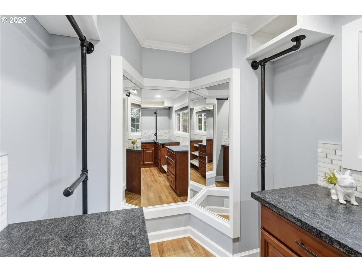 This beautifully updated home blends luxury and craftsmanship. Enjoy two mountain views, a tranquil water feature, and a fully remodeled kitchen with quartz, stainless appliances, and wine cooler. Primary suite boasts a rain shower, French doors to the deck, and a luxurious closet with three-way mirrors, lit shoe rack, and granite over custom cabinets. Relax in the sauna, work out in the fitness room, or entertain with a downstairs kitchenette, main level bar, and generous back deck. The lower level has previously been rented out as an apartment and would not take much to allow for that once again for dual living arrangements. AC Ready.