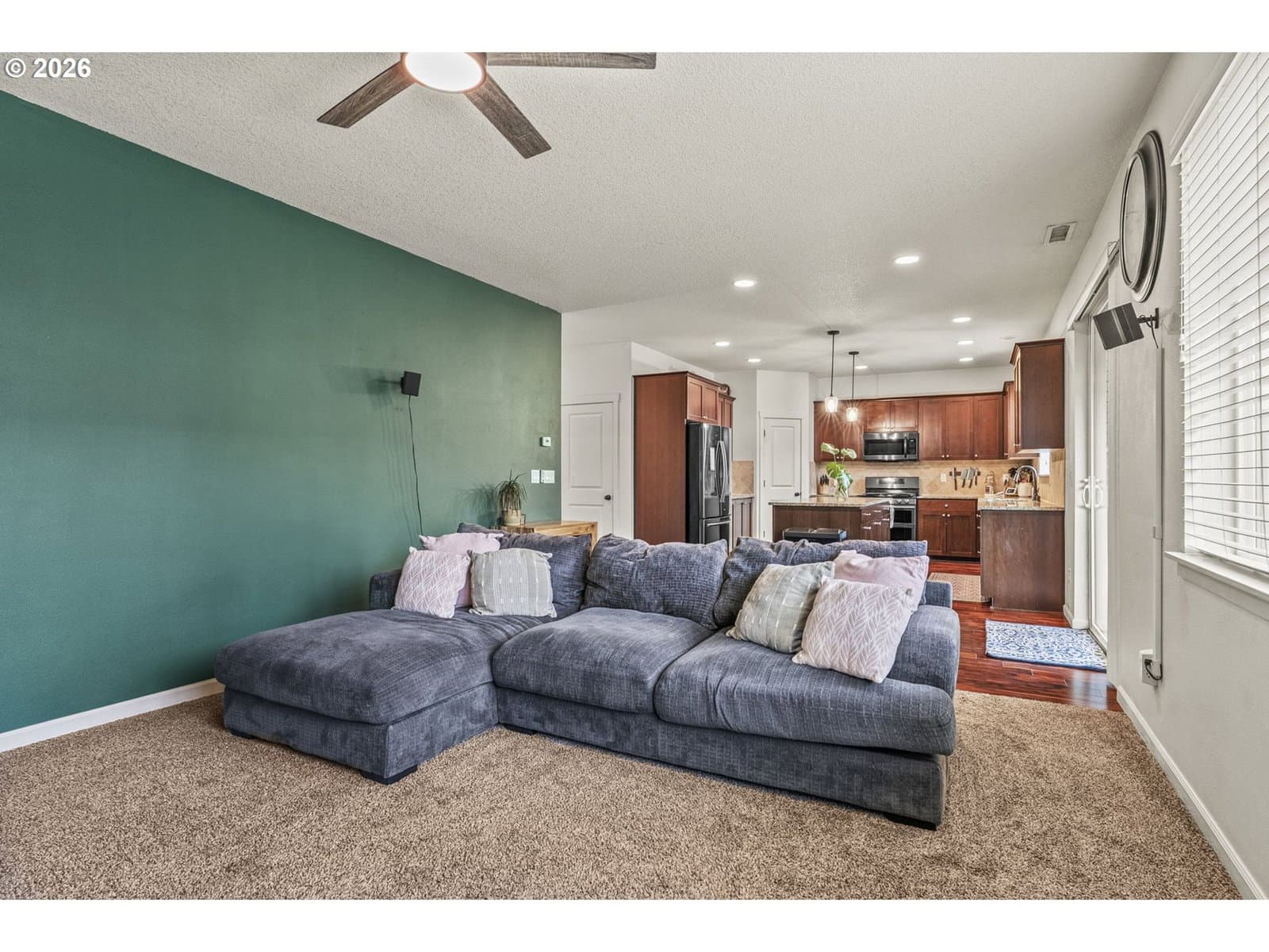 This well-designed 2,410 sq ft home offers a functional layout with 5 bedrooms and 3 full bathrooms, providing flexibility for a variety of living needs. Located in an upscale neighborhood, the home combines practical features with comfortable living spaces.The main level includes a bedroom and full bathroom, making it ideal for multi-generational living, guests, or a home office. The living room features a gas fireplace and flows into the kitchen and dining nook. A sliding glass door off the dining area provides direct access to the backyard, allowing for easy indoor-outdoor living. The kitchen is equipped with granite countertops, a center island, hardwood cabinetry with ample storage, laminate flooring, and gas range. Additional features include a built-in microwave and double oven, offering both convenience and functionality. Upstairs, the primary bedroom includes a walk-in closet and a soaking tub. Three additional bedrooms and two full bathrooms complete the upper level, providing space for family, guests, or flexible use. Exterior features include a patio and a large, fully fenced backyard, suitable for outdoor entertaining, recreation, or pets. Rare and sought after property, let's get this under contract now!