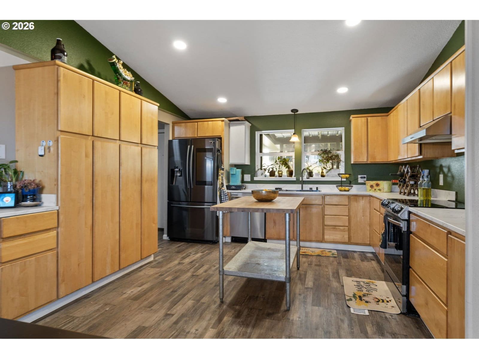 Columbia river views on flat usable acreage, with shop or second living quarters, backed to beautiful green space! This 3-bedroom, 2-bath, 1,800 sq. ft. home is nestled on nearly 2 peaceful acres. With breathtaking views, this property offers a perfect blend of modern updates and versatile spaces tailored to an outdoor lifestyle. Inside you’ll find a fresh and inviting interior with newer cabinets, countertops, flooring, fixtures, and more! The spacious kitchen is perfect for entertaining, while the large dining area with built-ins easily accommodates a full-sized dining table. The expansive primary bedroom boasts a walk-in closet and private ensuite, offering a serene retreat. Step outside from the utility room onto a generous back deck, ideal for relaxing or hosting gatherings. The property features a wrap-around driveway for added convenience, a full RV hookup with power, water, and septic, plus a detached building with endless possibilities—use it as a storage space, workshop, or use the upstairs as a studio or additional living area. A separate storage shed provides even more functionality and the fully fenced for run is a bit for your fur babies. Situated just 30 minutes from Vancouver, WA, and 16 minutes from Longview, this home combines tranquility with convenience. Kalama’s charm lies in its small-town appeal, framed by the Columbia River and steeped in history from the Northern Pacific Railway and the Port of Kalama. Plus, you’re only 8 minutes away from McMenamins Kalama Harbor Lodge, offering dining, entertainment, and beach access.This move-in-ready property is bursting with opportunities for relaxation, recreation, and customization. Don’t wait—schedule your tour today and make this exceptional property your new home!