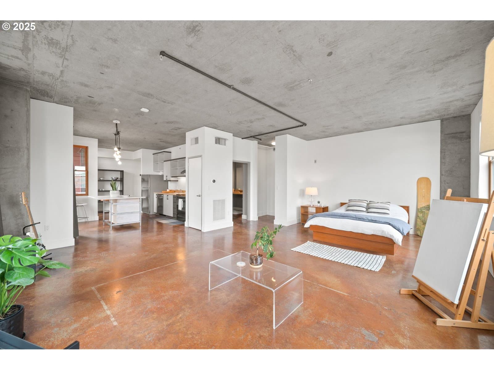 Urban Loft Living in the Heart of Portland! Stunning Artists Studio - Light, Bright & Full of Character! Welcome to the Stylish Old Town Lofts! This Spacious Corner Unit offers an Open, Airy Floorplan - Rare and hard to find! Complete with High Ceilings, Stained Concrete Floors, and Walls of Windows that Flood the Space with Natural Light. The Open-concept Layout, Modern Kitchen with a Stunning Island and Ample Storage make Entertaining Effortless. Storage Galore! Lots of Extra Storage in Entryway. Walk-in Closet off Bedroom. Laundry in unit. Lots to see! Step Outside to your Private Covered Balcony, Perfect for Morning Coffee or Evening Relaxation. Community Rooftop Sun Deck on the same floor, very convenient to this unit! Enjoy the perks of a well-managed, well-funded HOA in a secured building, complete with a deeded parking space and storage unit. Located in Old Town, right on the edge of the Pearl District, you’re just steps from art galleries, restaurants, shops, and nightlife. Plus, easy access to MAX Light Rail, Lan Su Chinese Garden, and Portland Saturday Market. Move-in ready with incredible value — don’t miss this one!