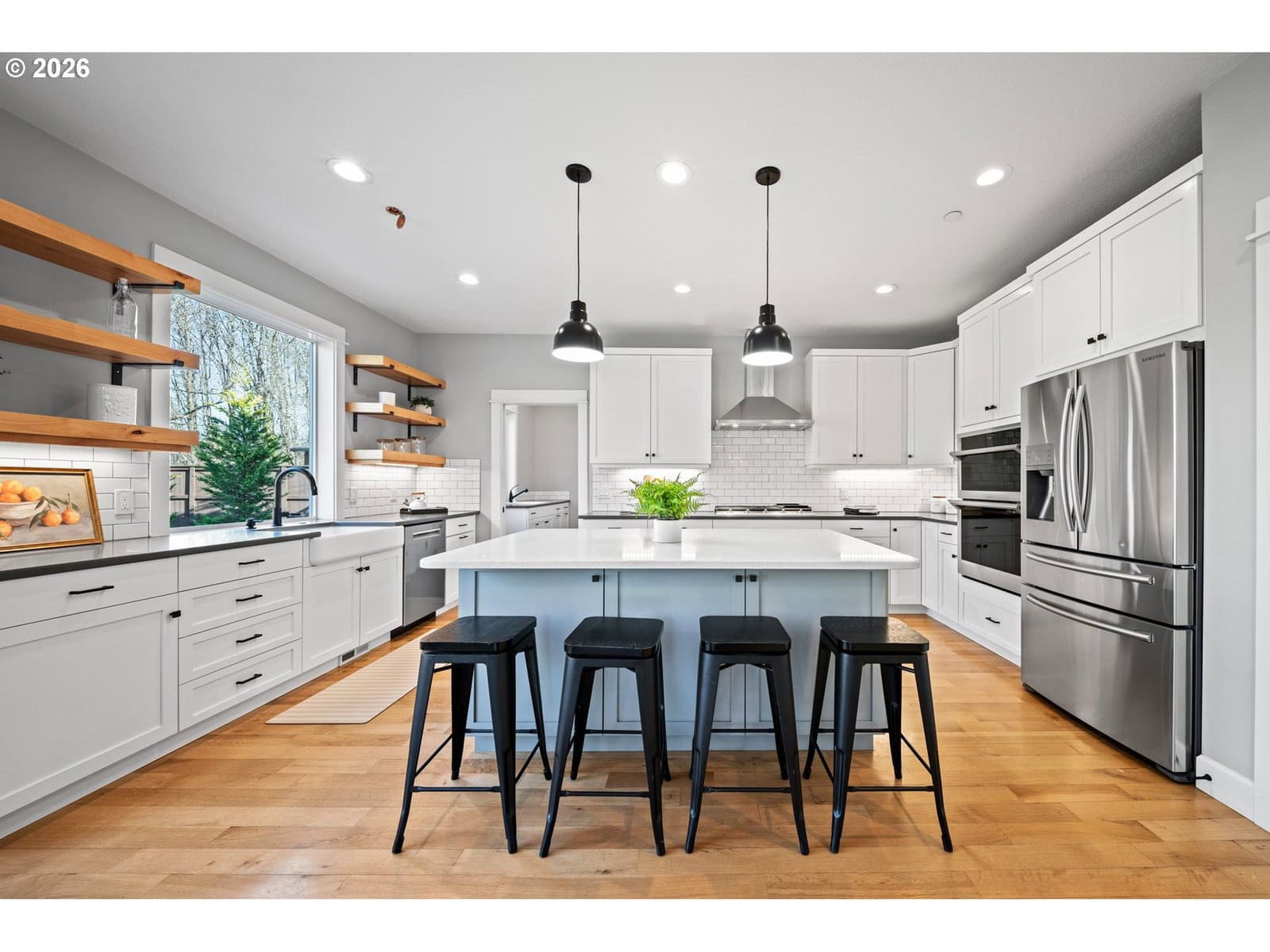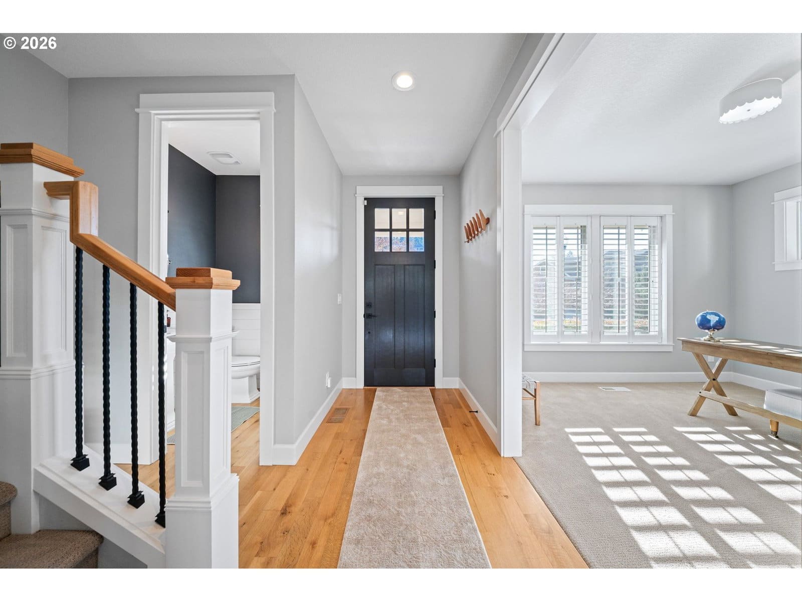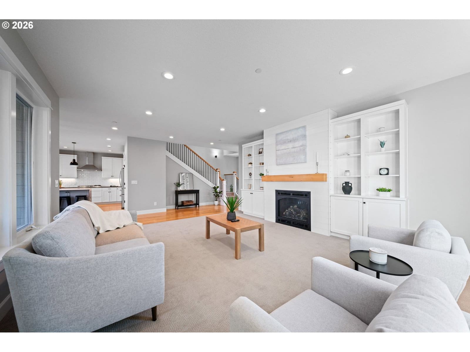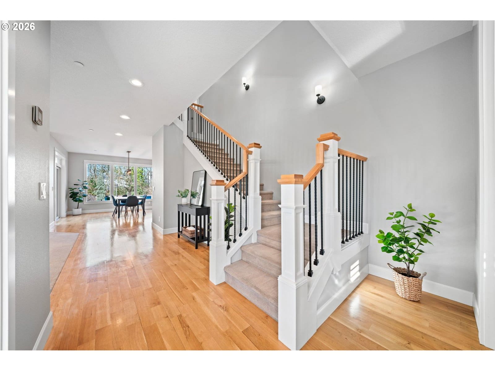 Indulge in elevated living in this beautifully designed Camas residence, perfectly positioned on a premium large corner lot backing to a private green space. The bright, open-concept layout showcases hardwood floors, spacious living areas and refined finishes throughout, creating an inviting yet sophisticated atmosphere. The gourmet kitchen features quartz countertops, custom cabinetry, island with seating, and a pantry —ideal for both everyday living and entertaining. A versatile main-level office or den offers flexibility. Upstairs, the primary suite with vaulted ceilings is a serene retreat with a spa-inspired bath, walk-in tiled shower, and expansive walk-in closet. Huge 4th bedroom or bonus room functional for many different needs. Step outside to a fully upgraded, hardscaped backyard designed for year-round enjoyment, complete with a private putting green, chipping area, stamped concrete, water feature, and terraced fire-pit space perfect for gatherings. Additional highlights include an over-sized three-car garage, convenient guest street parking, and a prime location just minutes from Lacamas Lake, shopping, top-rated Camas schools, and only a 5-minute drive to Camas Meadows Golf Course. A rare opportunity offering luxury, lifestyle, and location—this is a must see! In the heart of Camas and in Grass Valley School District, Sierra Meadows is a small and private neighborhood consisting of only 14 homes.