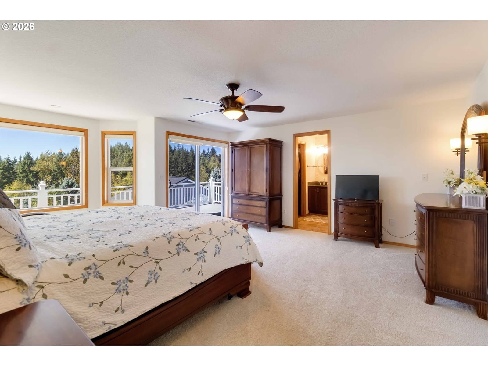 Welcome to this 2,180+ sq ft, 3-bed, 2.5-bath home in sought-after Mt Brynion Estates. The open main level features a spacious great room, dining area, and a well-equipped kitchen with double oven, convection microwave, cooktop, pantry, and eating bar. Enjoy year-round outdoor living on the private, covered deck which includes a hot tub. Upstairs, the oversized primary suite includes a walk-in closet, private bath, and access to the upper-level deck. Two more bedrooms and another full bath complete the second floor. The oversized garage features finished floors, a sink, and ample storage. Lower level (not included in square footage) contains a hobby room and 10x14 unfinished storage space! Corner lot with RV parking and second driveway with covered parking. Roof replaced in 2020. A must-see!!