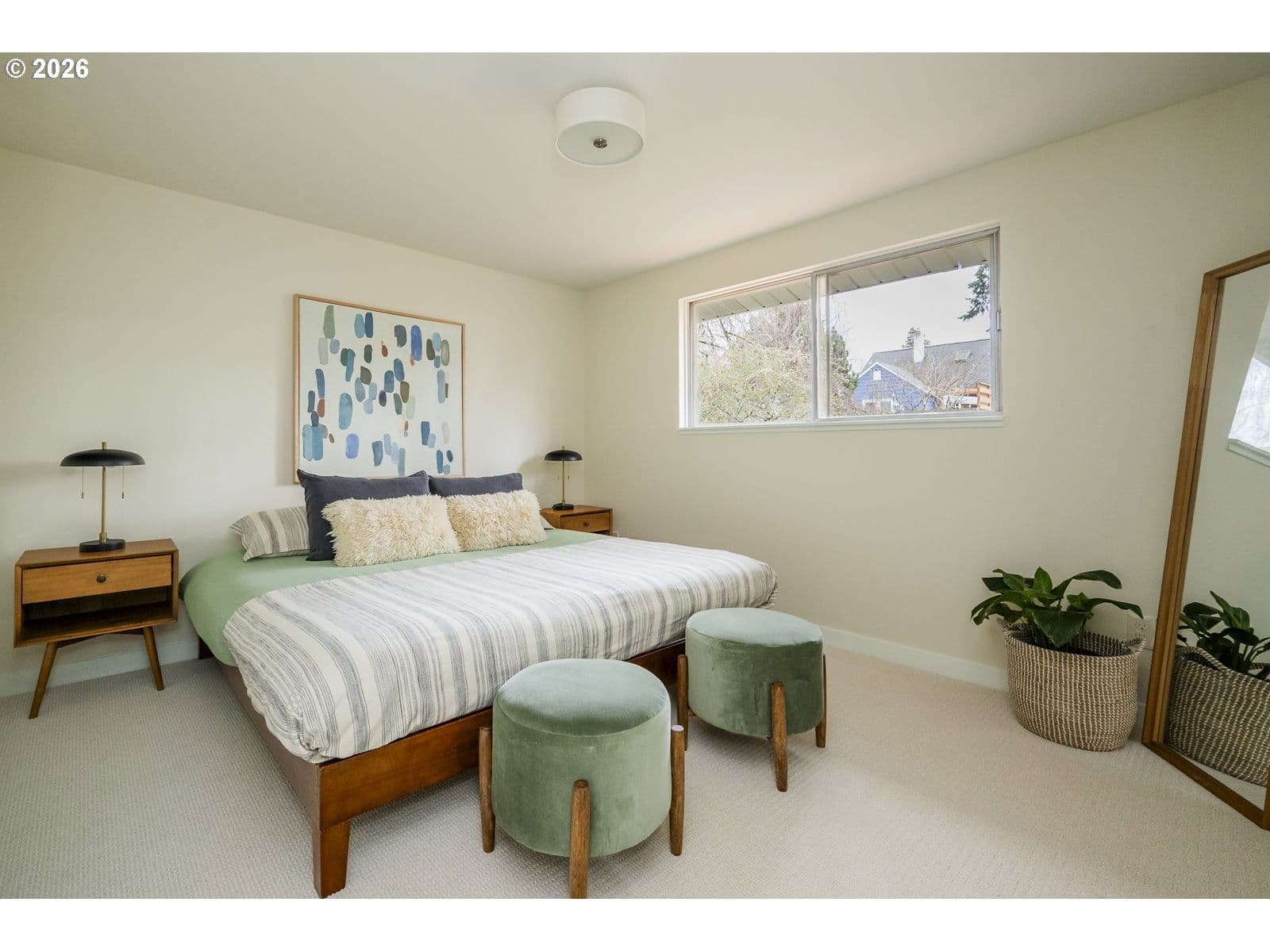 One level living in desirable Overlook! This sweet ranch checks all the right boxes- it's spacious and bright, with a floor plan that flows, and a refreshed kitchen with new appliances and marmoleum floors that looks out over the oversized, fenced backyard. The living room is both spacious and serene, with a wood burning fireplace for cozy winter evenings in. The three comfortable bedrooms include a primary with updated private ensuite half bath, and the full hall bathroom features marmoleum flooring and an upgraded vanity. The attached two car garage is a rare treat and the perfect place to store your gear, tinker with tools, create a home gym, or simply park and stay out of the rain! Fresh paint, new carpet, and a brand new furnace and a/c are the icing on the cake. The large .17 acre lot is a peaceful place to garden and play, or explore its development potential. Enjoy living only .6 miles to all of the fun shops and restaurants on Mississippi, and just a few blocks to spectacular sunset views at Mocks Crest Park! [Home Energy Score = 6. HES Report at https://rpt.greenbuildingregistry.com/hes/OR10245102]