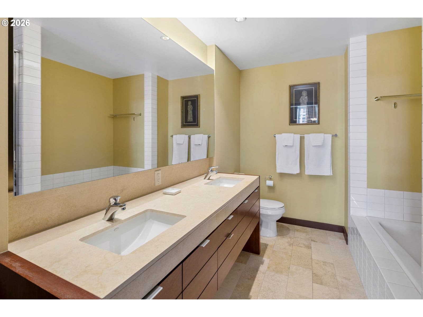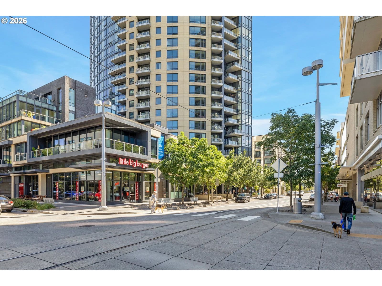 This stunning 2 bedroom, 2 parking spot south waterfront condo features one of the most sought after floor plans in all of the prestigious Meriwether Building. The large gourmet kitchen features custom cabinets, quartz countertops, two Miele convection ovens, gas cooktop with range hood, spacious island and ample storage. The gas-plumbed covered balcony offers space for year-round enjoyment with views of the Willamette River, Mt. Hood and city. The inviting living room has a cozy gas fireplace, large dining space perfect for hosting and an adjoining multi-functional den/flex space. The primary ensuite offers high end carpet, double closets with custom built ins and a beautiful bathroom. The spare bedroom is strategically placed on the other end of the unit and enjoys close proximity to second bathroom and beautiful city views. The coveted Meriwether offers an abundance of lifestyle amenities including 24/7 concierge, a large recreation room for parties/events, private guest parking, rentable guest suite, bike & kayak storage and beautiful courtyards. So close to the Riverwalk, shopping, restaurants, streetcar, OHSU and all the south waterfront has to offer!