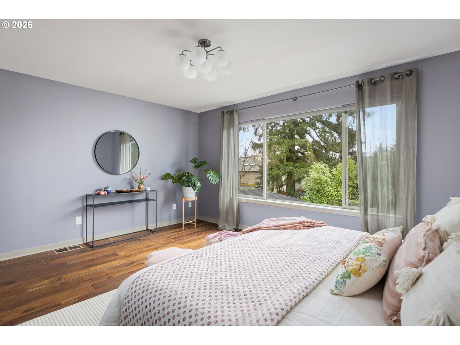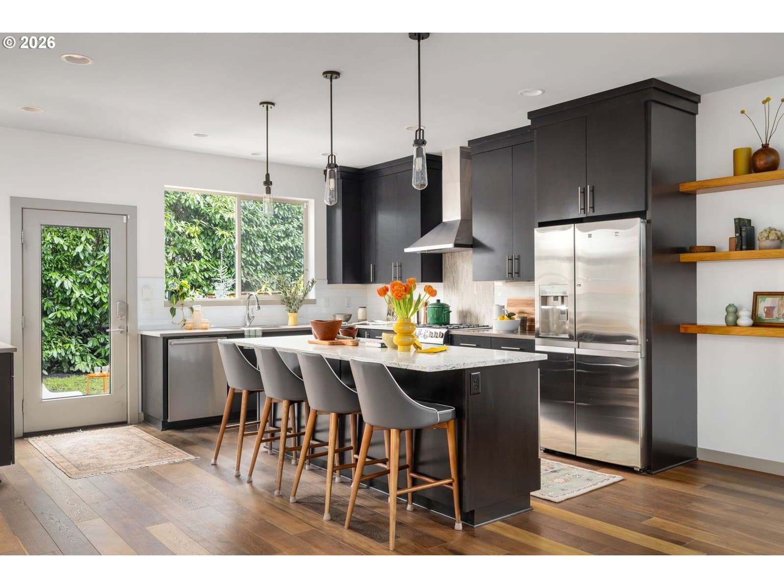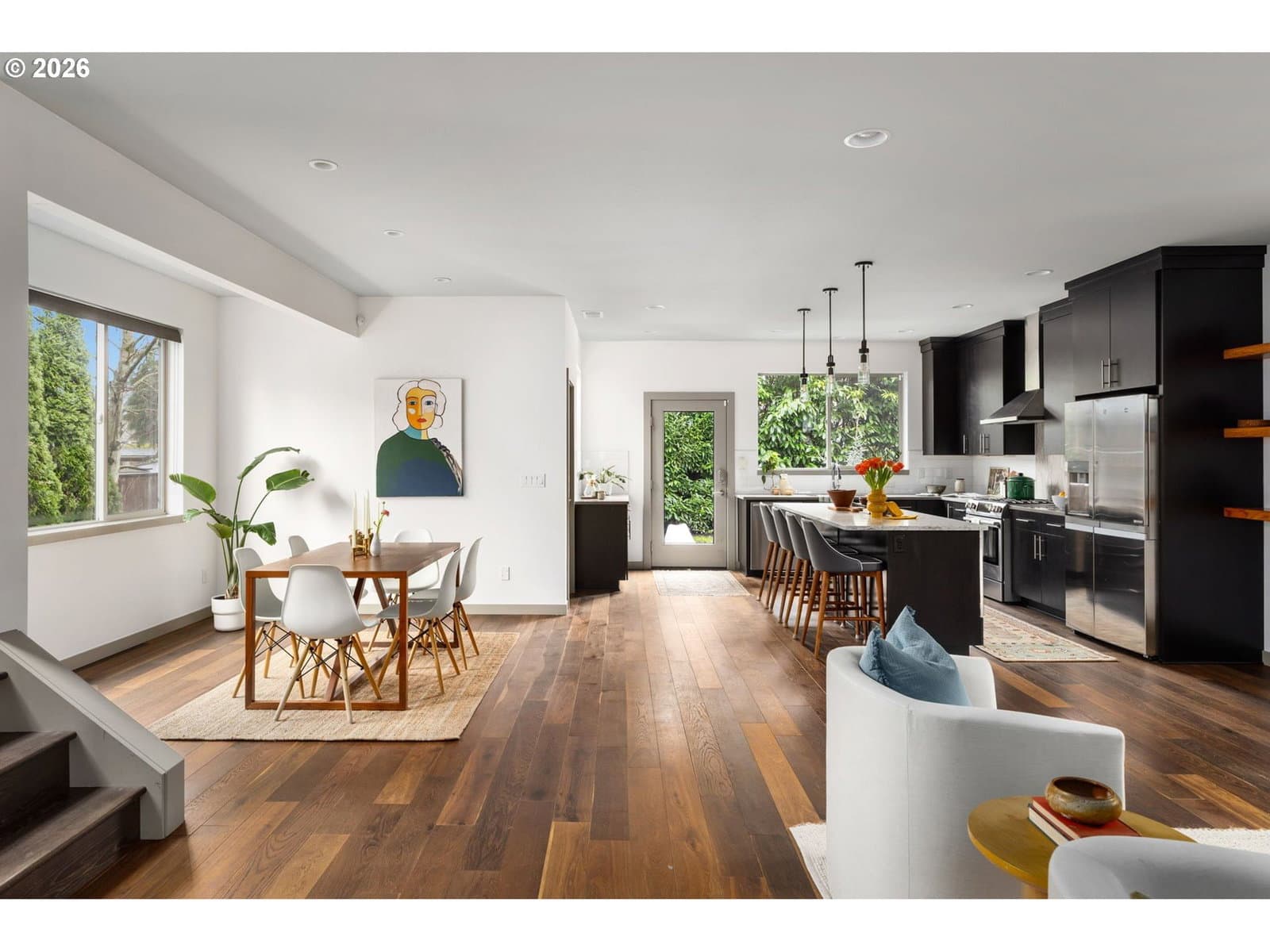 Welcome to your contemporary crush! Four bedrooms, three bathrooms, and enough natural light to make your houseplants write you thank you notes. This beauty serves clean lines, big vibes, and walls of windows that basically whisper, “let there be light.” Inside you’ll find gorgeous wood floors, an open-concept living space, and a fireplace that’s ready to set the mood. This house doesn’t play when it comes to functionality. A main level bedroom paired with a full bathroom right across the hall makes multi-gen living an absolute breeze. Perfect for guests who want privacy, in-laws who appreciate their own zone, or a home office setup with a proper reset space. It’s flexible, functional, and genuinely comfortable. The kitchen brings the heat with a generous island made for charcuterie spreads, chaotic baking experiments, or your morning coffee ritual before conquering the world. Enjoy a glorious pantry that swallows Costco runs whole and still has room for your secret snack stash. Upstairs are 3 spacious bedrooms that don’t believe in the word “cramped,” 2 full bathrooms and the laundry room, because hauling baskets up and down stairs is a workout no one asked for. Keep the clothes where they live and retire from the Stairmaster for good. Out back you have thoughtful landscaping and a yard that is roomy enough for pups, parties, or plotting your next garden era. it’s giving low maintenance and high impact. [Home Energy Score = 8. HES Report at https://rpt.greenbuildingregistry.com/hes/OR10158722]