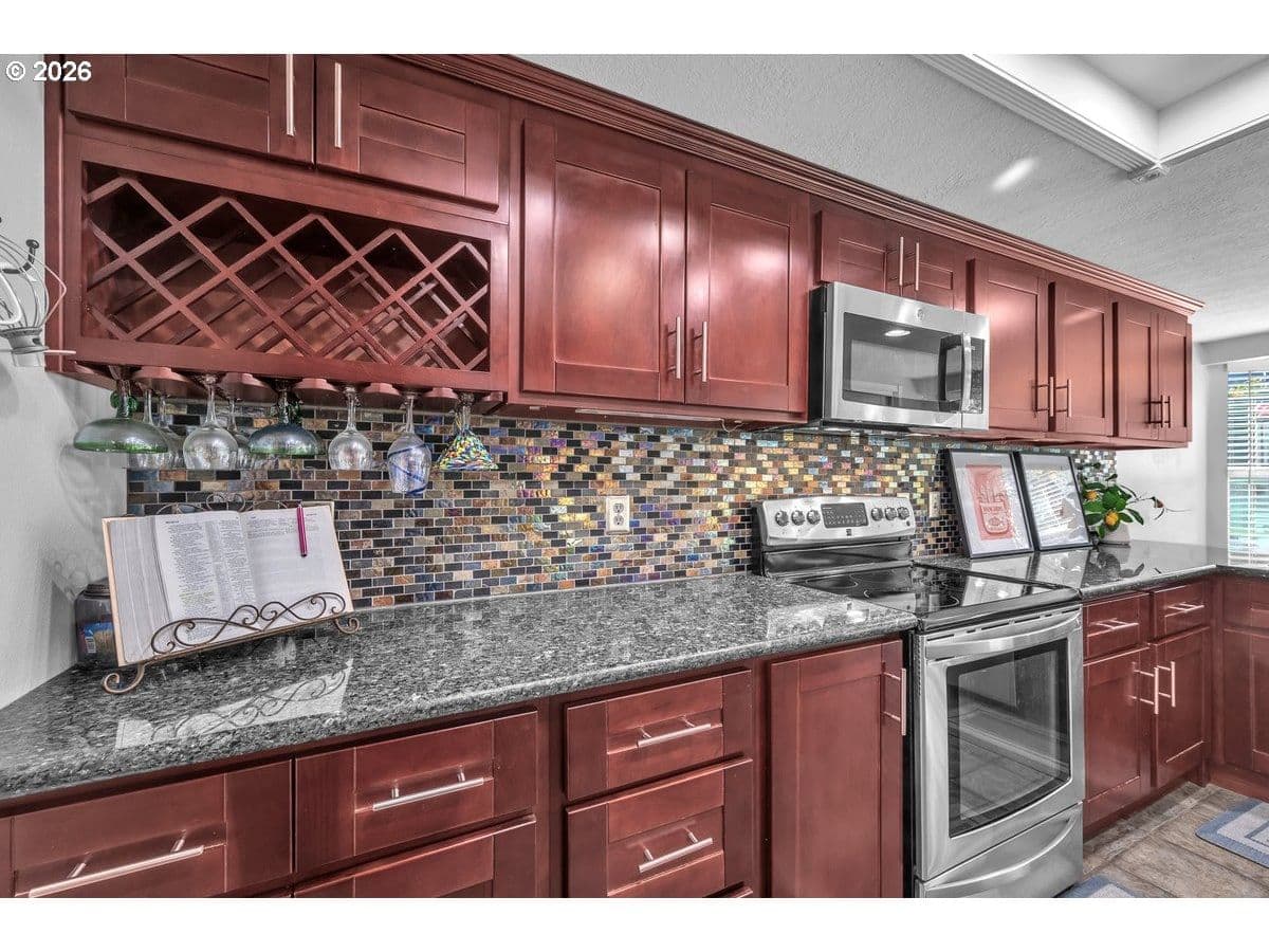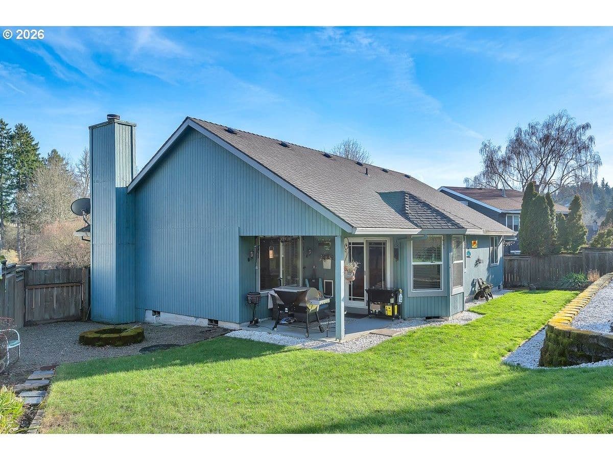 Smart, thoughtfully updated, and designed for easy one-level living, this 3-bedroom, 2-bath home is tucked into a lovely neighborhood offering the perfect balance of quiet living and conveniently located near everything you need. At the heart of the home, the oversized kitchen features stainless steel appliances, generous workspace, and abundant storage—ideal for everything from casual weeknight meals to weekend gatherings. Other features include: warm wood floors, a cozy fireplace create a welcoming atmosphere, and primary suite with a walk-in closet. The kitchen opens effortlessly to a covered patio and expansive, fully fenced yard, extending your living space outdoors for entertaining, relaxing, or play. An additional outdoor storage/work area adds flexibility for hobbies, projects, or extra gear. Enjoy easy access to nearby trails, Cooper Mountain Nature Park, highly rated schools, shopping, dining, and major employers—making it simple to enjoy the best of both nature and daily life.