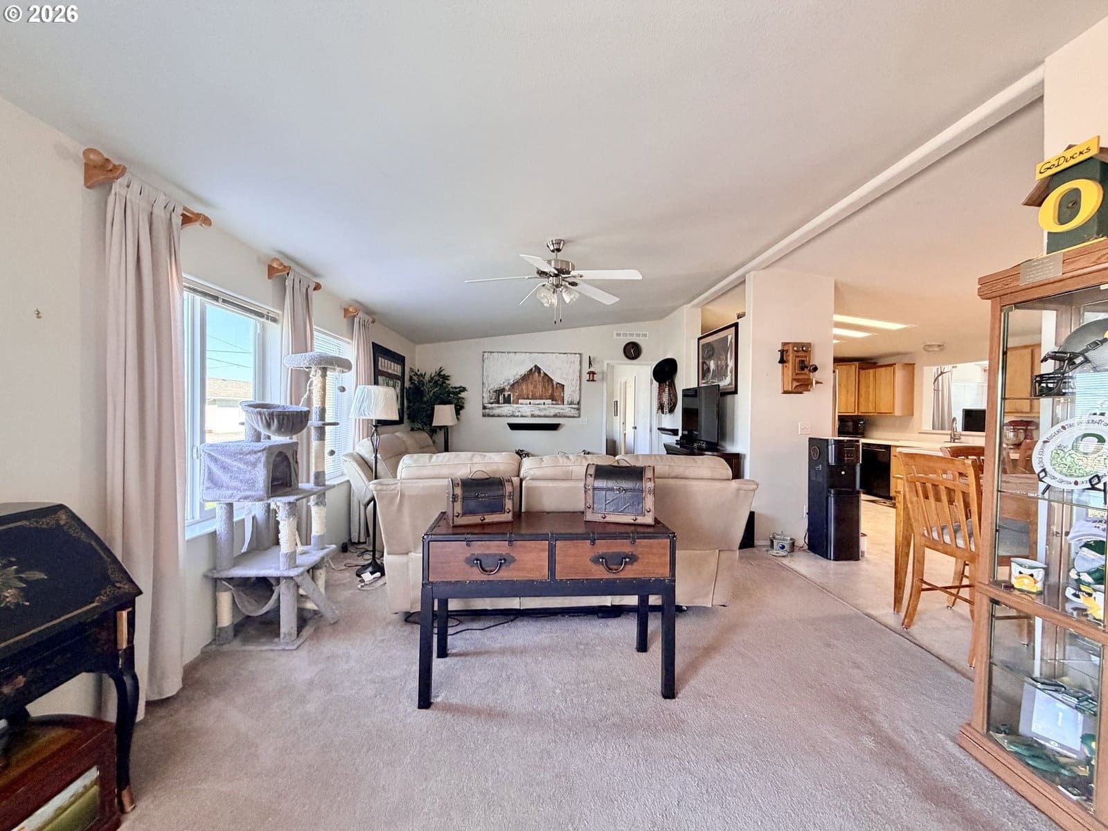13days on marketWelcome to this exceptional double-wide home with a pod on a spacious corner lot near the Columbia River, ideal for fishing and boating enthusiasts. Step inside to an entry that flows into a comfortable living, dining, kitchen, and second living space. The dining area opens to a generously sized kitchen. You’ll find extensive cabinetry, a pantry, and a vaulted ceiling that adds volume to the space. Off the kitchen/dining room, a second living area adds flexibility—ideal for gatherings, hobbies, or a quiet retreat. This space features a vaulted ceiling, abundant windows, and a sliding door that opens to a covered deck for outdoor enjoyment. Primary bedroom is entered off the living room with the ensuite having a double sink vanity, walk-in shower and linen closet. On the opposite end of the home is a full bathroom with adjoining laundry, and two spare bedrooms that have vaulted ceilings. Outside, the property is equipped with timed underground sprinklers, fencing with gates, and gutters. An oversized 26x38 garage was built alongside the home and features insulation, lighting, a propane heater, roll-up door with opener, and multiple outlets—ready for projects or storage. There’s also generous RV parking with (2) 50-amp hookups. A new HVAC system was installed in 2024. If you’re looking for a property that offers usable space inside and out, this one is worth seeing and let this be the home you move into!