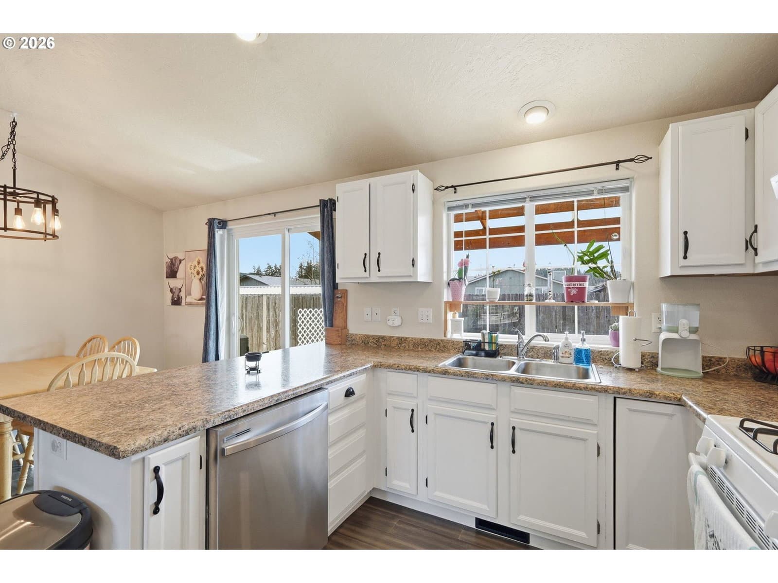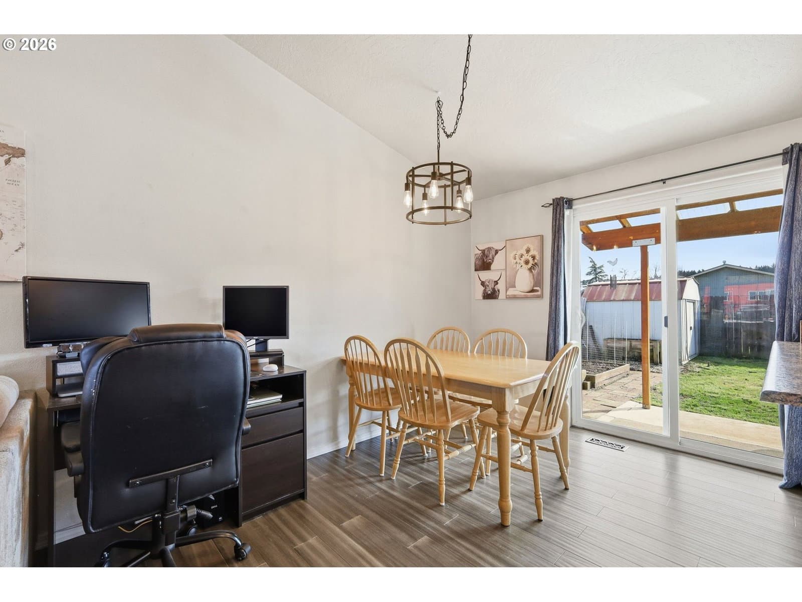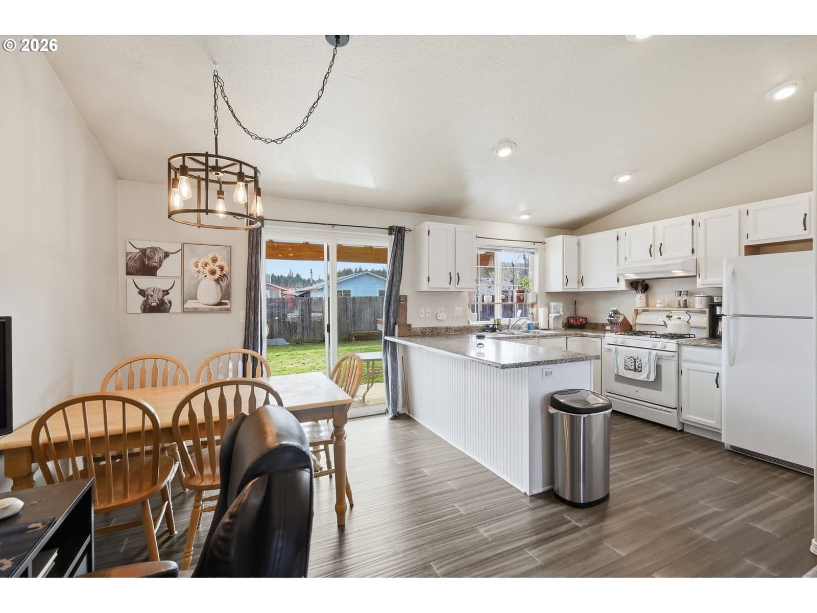 Located on a quiet, dead-end street in Cottage Grove, this well maintained single level home offers 3 bedrooms and 2 bathrooms. The spacious living room features vaulted ceilings and a bay window, creating an open and functional living space. The kitchen includes free standing gas stove, an eating bar, pantry, and abundant cabinet storage. New flooring has been installed throughout the main living areas. Vinyl windows and a forced air heating/cooling system provide year round comfort and efficiency. The bedrooms are nicely sized, and the layout offers practical, everyday livability.Outside, you’ll find a fully fenced backyard, covered patio, and a storage shed for tools and equipment. Driveway behind house allows for backyard access.Cottage Grove is known for its small town feel and access to outdoor recreation. Enjoy weekends at Dorena Lake, biking or walking the Row River Trail, or exploring the area’s historic covered bridges. This home is just minutes from the newly renovated Main Street, featuring art walks, local eateries, and classic small-town charm. All within a quick commute to Eugene, U of O, and Lane community College. If you’ve been looking for a solid starter home, this is the one! Move-in ready homes in this price range are becoming harder to find, making this a smart opportunity for first-time buyers, investors, or anyone looking for a well kept, low maintenance property in a great location. Agent is related to seller.