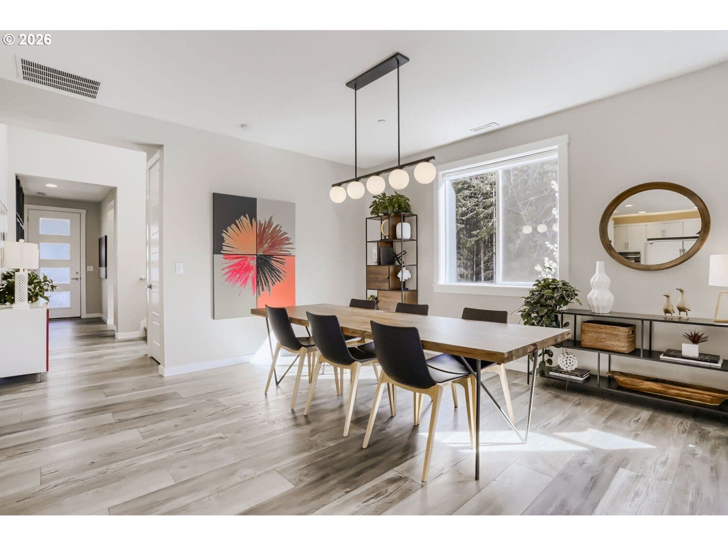 This light and bright corner-lot home offers a perfect blend of sophisticated design and functional living space, ideal for both everyday comfort and grand entertaining. The open main-floor layout seamlessly connects the generous dining room and inviting great room to a gourmet kitchen, where home chefs will appreciate the quartz countertops, gas range and oven, large pantry, and an extra-large refrigerator. For effortless indoor-outdoor flow, a large 3-panel slider opens directly to a covered patio and a beautifully landscaped, fenced yard, complete with raised garden beds for the green-thumb enthusiast and a matching utility shed. The home’s thoughtful design extends to its versatile living areas, including a downstairs bedroom and full bathroom perfectly suited for a home office or guest retreat. The second floor is equally impressive, featuring a spacious loft for a media room or play space, alongside a convenient laundry room with a built-in sink. The lavish primary suite serves as a true sanctuary, highlighted by an elegant tray ceiling, dual walk-in closets, and a spa-like ensuite bathroom with dual sinks and a massive walk-in shower. Beyond the living spaces, this residence is built for modern efficiency and organization. The three-car garage is a standout feature, boasting deluxe sealed flooring, built-in shelving, and dedicated wiring for EV chargers. Additionally, the home features fully owned solar panels that completely cover the electric bill, offering significant long-term savings. Perfectly situated for outdoor enthusiasts, this 5 bedroom, 3 bathroom residence is near Winkelman Park, Cooper Mountain Nature Park, and the Powerline trail, truly accommodating a modern lifestyle with ease.