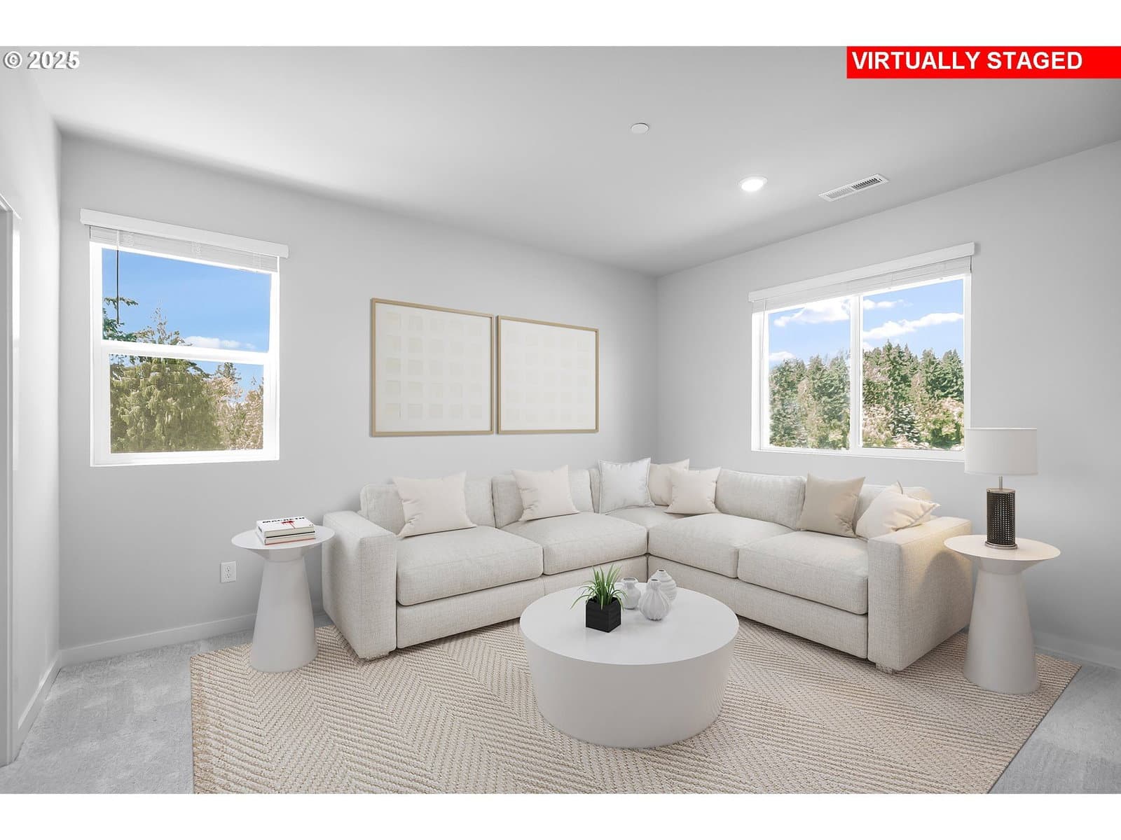 This two-story new construction Hammond home in Salmon Creek Ridge features a three-car garage and is just minutes from Salmon Creek trails, I-5, and shopping. The main floor includes a private bedroom and bath, a den off the entry, and an open kitchen, dining area, and great room warmed by a fireplace. Upstairs, a loft connects three bedrooms, including a primary suite with a soaking tub and walk-in closet. The kitchen includes quartz countertops, shaker-style cabinets, and a vertical tile backsplash. LVP flooring runs through the kitchen and entry, and LVT covers baths and laundry. The primary bath has a tiled shower with a separate tub. Wooden shelving, landscaping, and fencing complete the home. Central air conditioning, a refrigerator, washer and dryer, and blinds are included. Located on homesite 49, this home is move in ready. Flex credit/closing cost incentive available when financing with preferred lender! Use towards rate buydown and closing costs. Builder Paperwork, 1% E Mto FATCO,