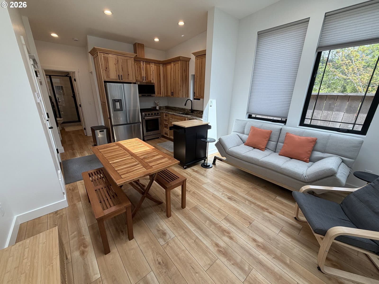 Experience elevated coastal living in this newly constructed custom residence in the heart of Gold Beach. Built in 2024, this impeccably designed 1 bedroom/1bath home offers 455 square feet of sophisticated style, where every detail has been thoughtfully curated for comfort and quality. From the moment you enter, you’re welcomed by soaring ceilings and a light-filled interior that enhances the home’s open, airy ambiance. The kitchen showcases premium finishes, including sleek granite countertops, high-end appliances, and beautifully crafted custom cabinetry that blends elegance with everyday functionality. Designed for effortless living, this single-level home is located within an gated community, offering both privacy and peace of mind. Step outside to your own private retreat with a fully enclosed yard featuring locally milled Port Orford cedar fencing, creating a warm and inviting outdoor space. Ideally situated just minutes from the beach, this residence offers a rare combination of modern craftsmanship and coastal charm in one of Gold Beach’s most desirable settings.