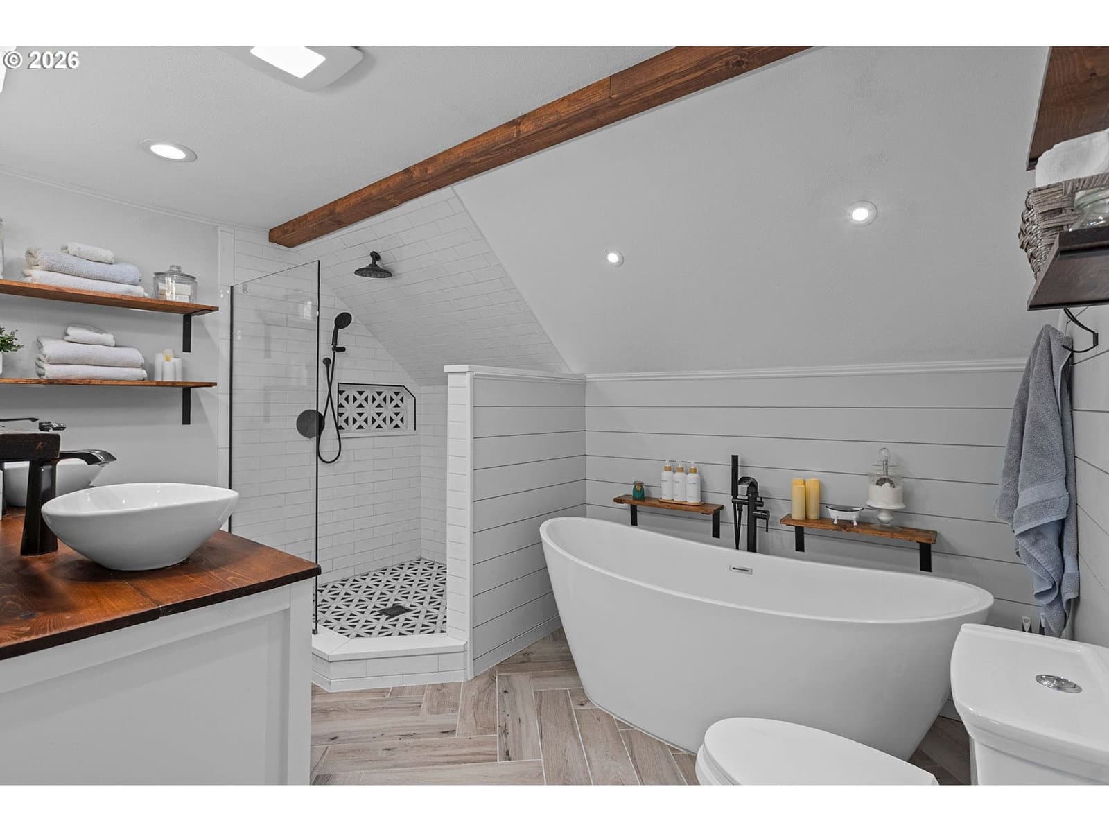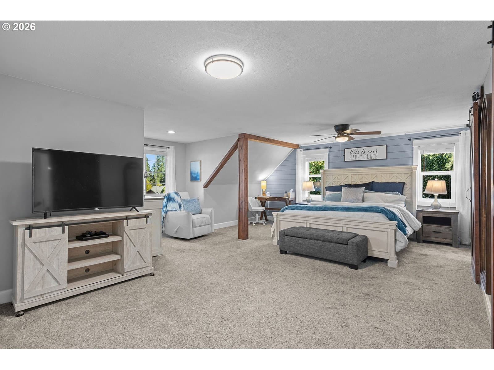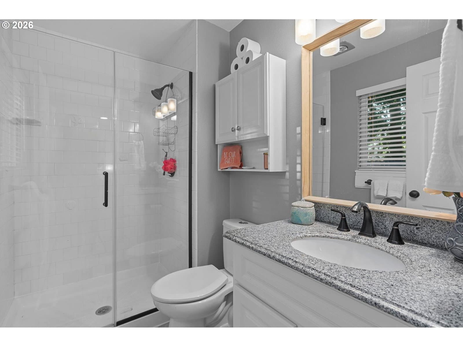 Set on a quiet cul-de-sac block, this beautifully updated Hollybrook home offers space, flexibility, and comfort in all the right places with 4 large bedrooms and 3 full bathrooms. The open high-performance kitchen features a 6-burner Zline gas range, quartz countertops, soft-close cabinetry, and generous workspace; perfect for everyday living and entertaining alike.Two updated primary suites provides excellent versatility, including a main-level suite with a highly accessible walk-in shower. Wood flooring spans the main level, while sizable bedrooms, significant closet space, and abundant storage throughout both levels ensure everything has its place. A cozy wood-burning fireplace adds warmth and charm.Enjoy year-round comfort with a new HVAC system, heat pump, and A/C installed in 2025, plus a brand-new roof in 2021. Durable newer fiber-cement siding adds long-term peace of mind. The covered backyard patio, firewood storage area, and additional storage shed create a private outdoor retreat. If you’ve been searching for large bedrooms, thoughtful storage, and flexible living spaces that adapt to your lifestyle, this home is a must-see. Schedule your private tour today! Approximately one mile from Historic Downtown Gresham, restaurants, shopping, hiking and more! Appliances stay with property.View 3-D walkthrough on RMLS directly.