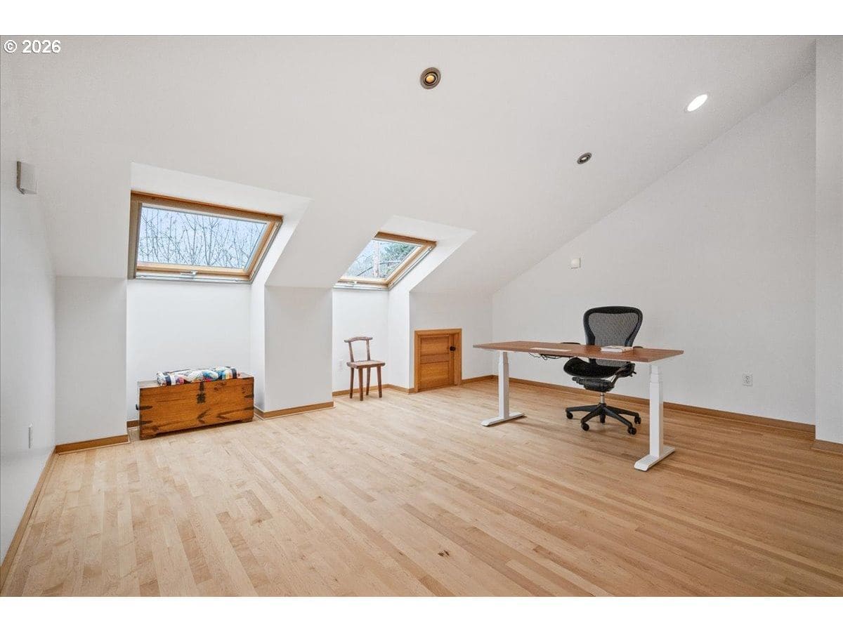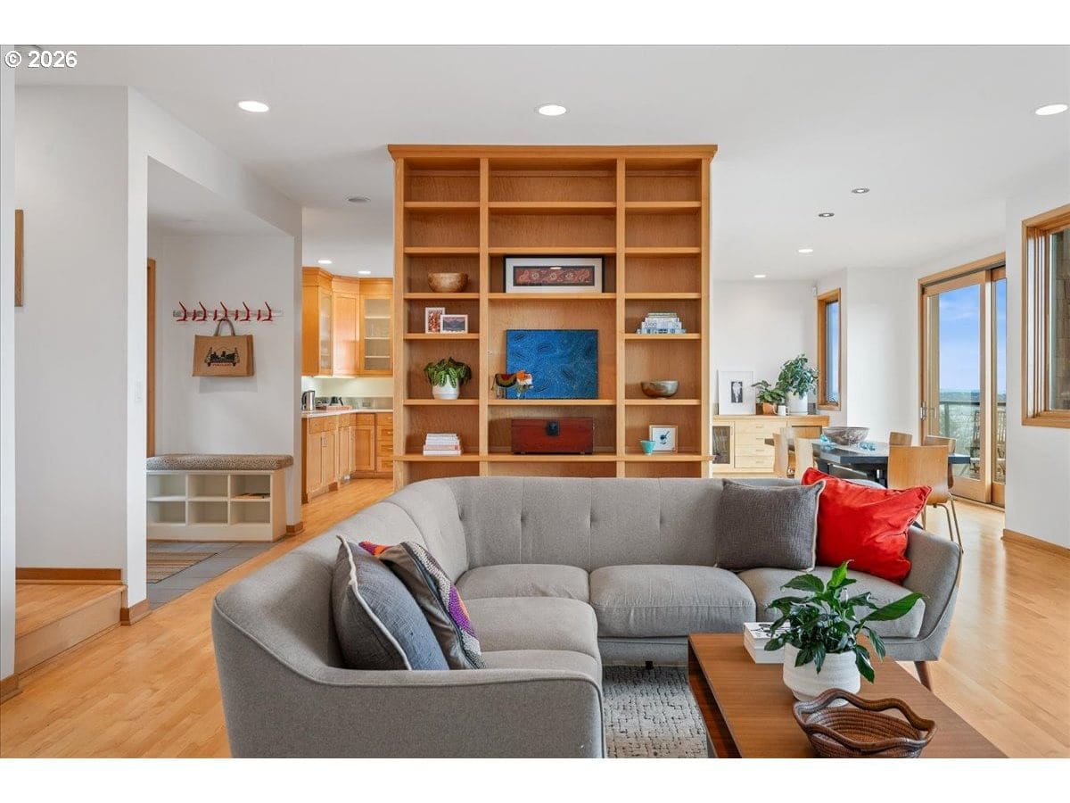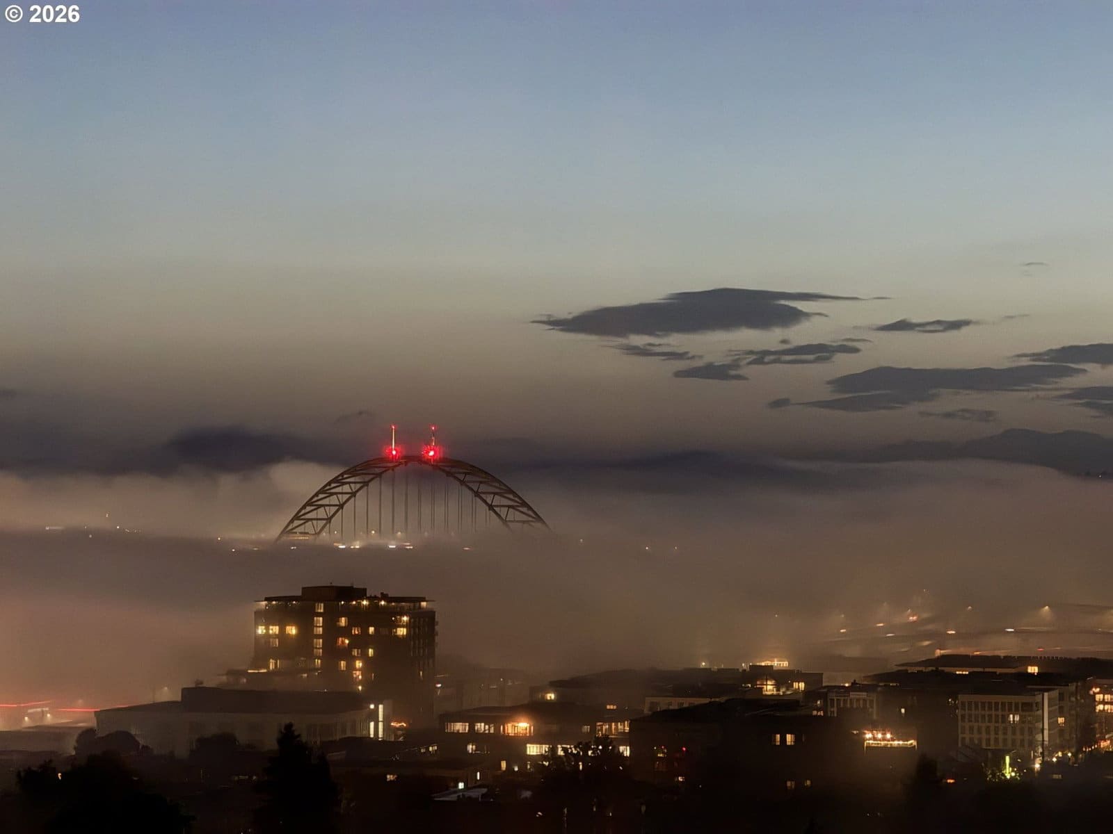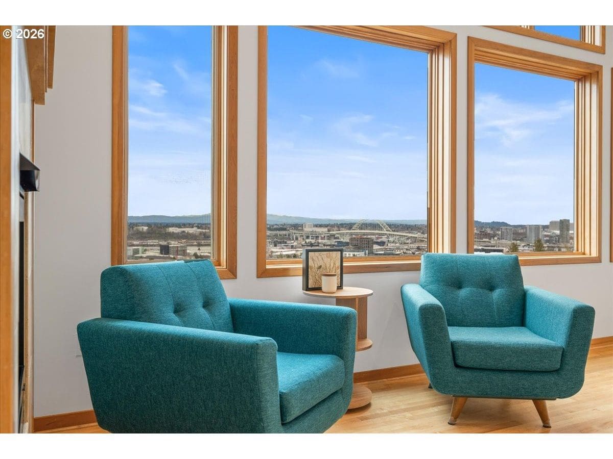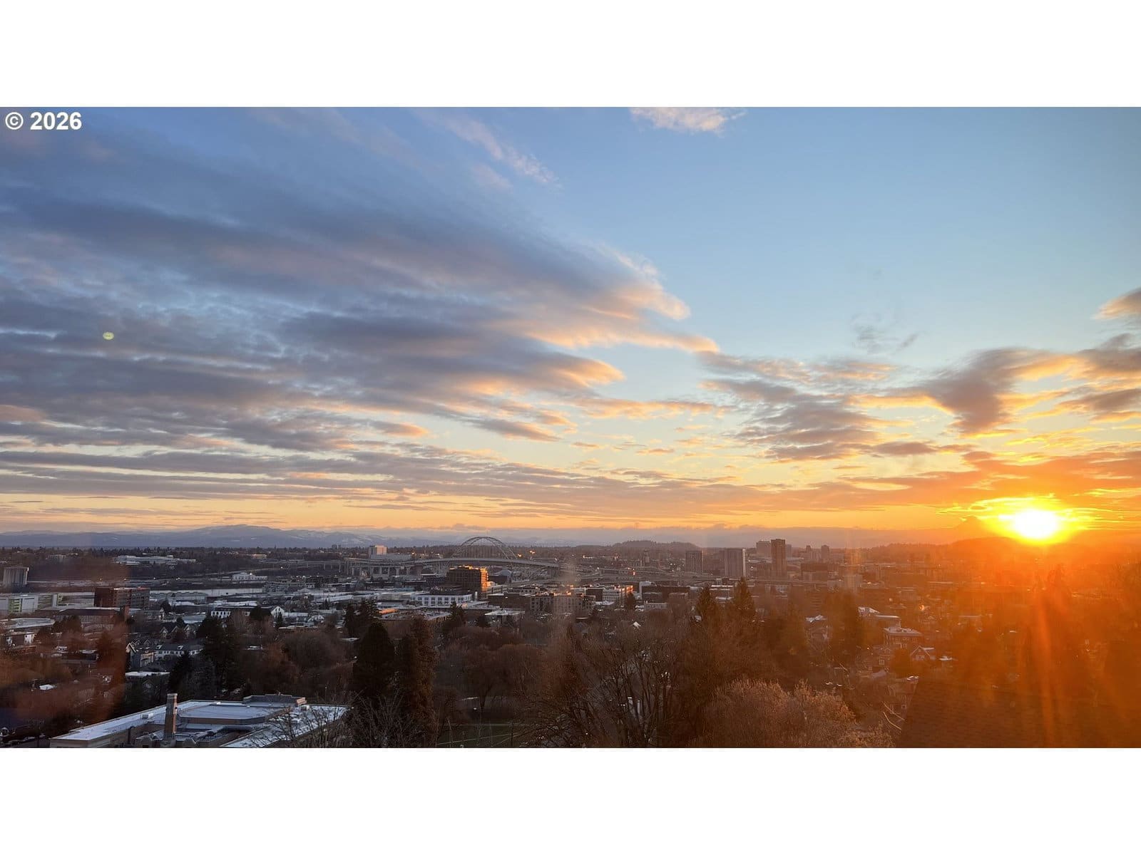 Kings Heights Contemporary with Sweeping City, River & Four-Mountain Views. Perched above the city in Portlands coveted Kings Heights neighborhood, this striking contemporary home offers nearly 4,000 square feet of light-filled living with panoramic views stretching from the river to four mountain peaks. From almost every level, the horizon unfolds in a sweeping tableau—sky, skyline, and distant mountains shifting beautifully throughout the day.The main level is designed for gathering and easy living in an open-concept floor plan with soaring ceilings & walls of glass. Custom floor-to-ceiling sliding doors open to an expansive view deck, creating a seamless connection between indoors and out. A roomy, feature-filled kitchen will satisfy any home chef. Freshly refinished hardwood floors, a newly painted interior, and a cozy gas fireplace bring warmth and polish to the space.Upstairs, the primary suite is a private retreat in the sky, featuring a radiant floor heated spa bath, generous walk-in closet, and an adjacent office or nursery with French doors opening to a covered, private deck—an ideal perch for morning coffee above the city.The lower level offers exceptional flexibility with a second en suite primary bedroom with private deck access, two additional bedrooms, full bath, laundry, and a spacious rec room with soaring ceilings, wired for A/V and equipped with blackout shades.Thoughtful upgrades include newly painted interior, new wool-blend carpets, gleaming re-finished wood floors, freshly stained decks, zoned HVAC with dual thermostats, a new dual-fuel Lennox furnace and heat pump with S40 smart thermostat, and gas fireplaces in both the living room and upper primary suite. The large, low-maintenance lot supports an easy lock-and-leave lifestyle, complemented by an attached two-car garage with EV charger.This is your Kings Heights penthouse perched above the city!