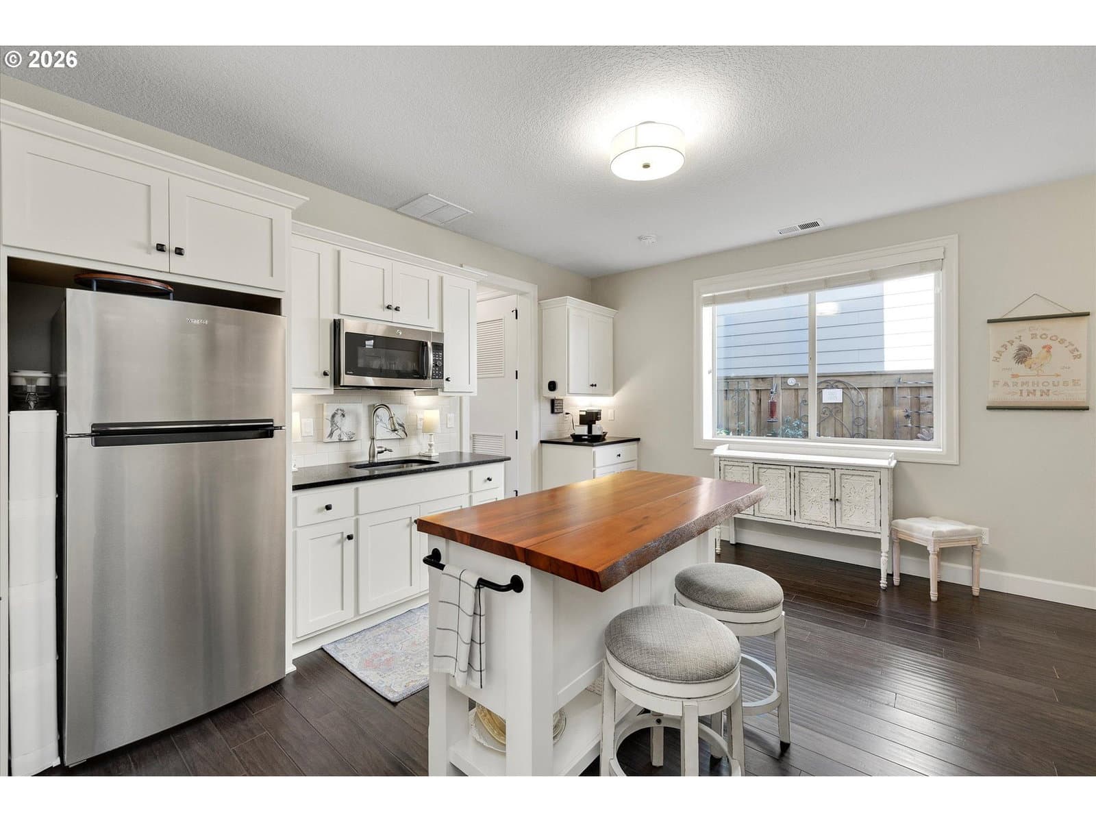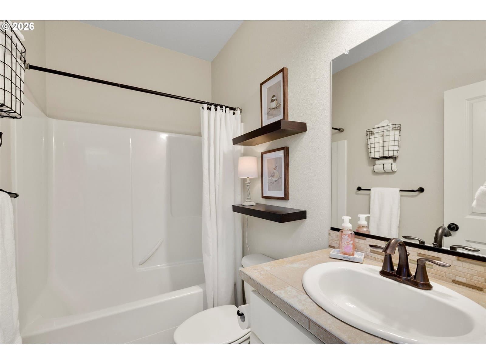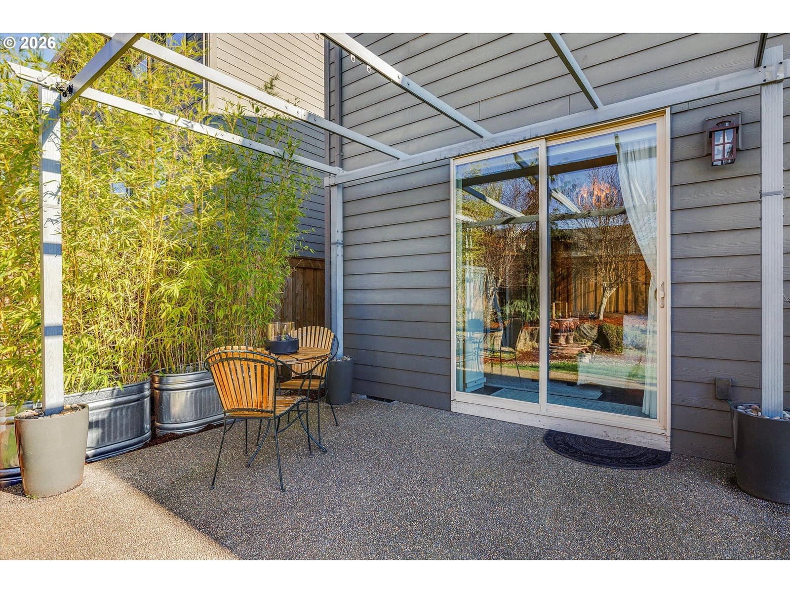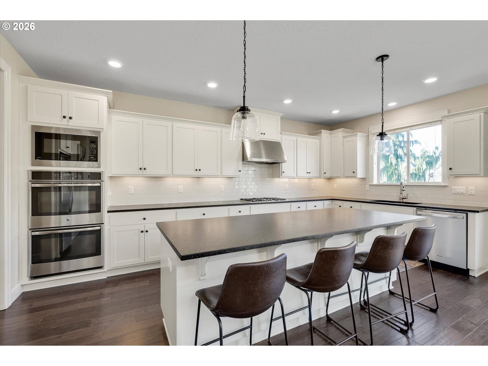 Built in 2015, this stunning 3,899 sq ft home offers a rare layout with an attached fully self contained 722 sq ft Multi-Generational Suite. This ground level suite is very private with its own entrance, dedicated garage, backyard with patio, pergola and sun-shade. Also includes 1 bedroom and on-suite bathroom, 15x13 spacious living room, stackable washer and dryer, generous kitchen with custom island and Brava oven & control over your own heat & AC, separate tankless water heater and engineered wood floors. This versatile space is ideal for multi-generational living, guests, college students, or add'l entertaining space for the home. The main home features 3176 sq ft, engineered wood floors on the main, EXPANSIVE kitchen/great-room concept, full of light, gas fireplace w/ built-ins and & 9 ft ceilings. Upstairs features 20X15 bonus loft room, primary suite with double sinks, & HUGE walk-in closet + an additional 3 bedrooms and 2 bathrooms (one Jack-n-Jill), large laundry room and plenty of storage thru-out the home. Located in a premier Happy Valley neighborhood with territorial backyard and Mt Hood view from upstairs & multi-gen suite front porch. Private HOA Park directly behind home. Enjoy the proximity to New Seasons, restaurants, trails, nature & 205....A truly one-of-a-kind opportunity offering space, privacy, and flexibility in an unbeatable location. All appliances are included.