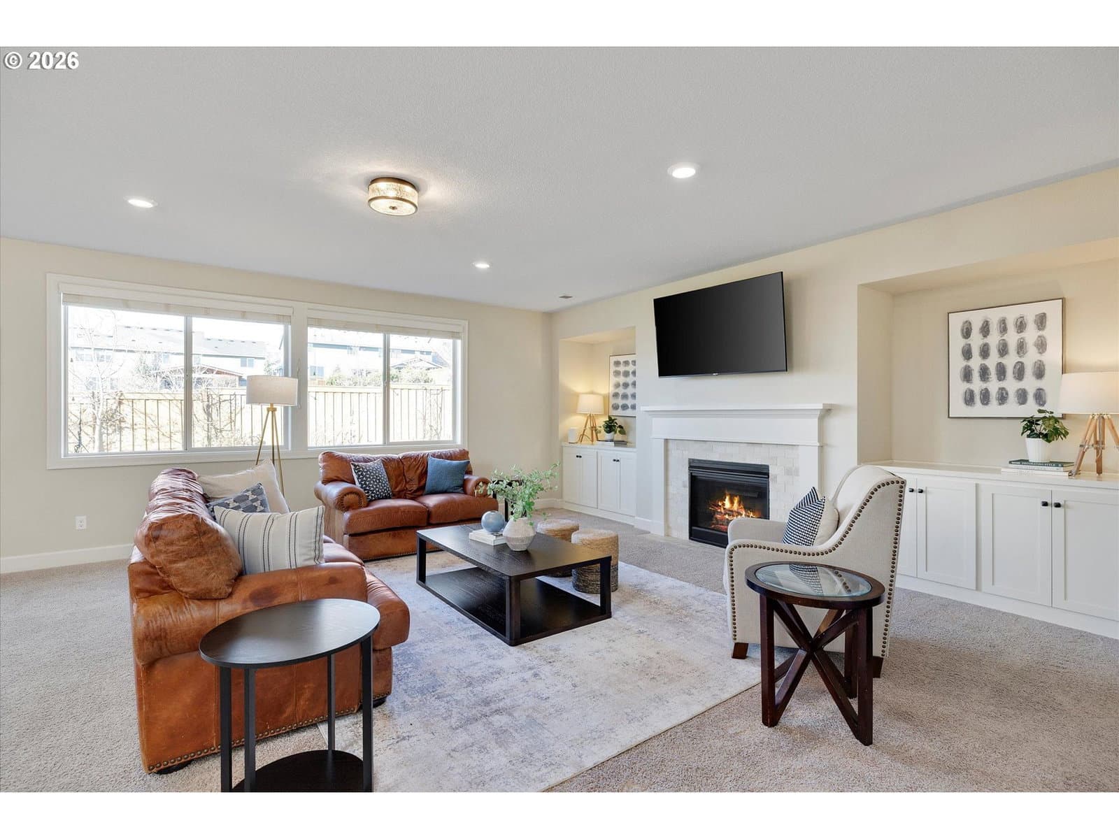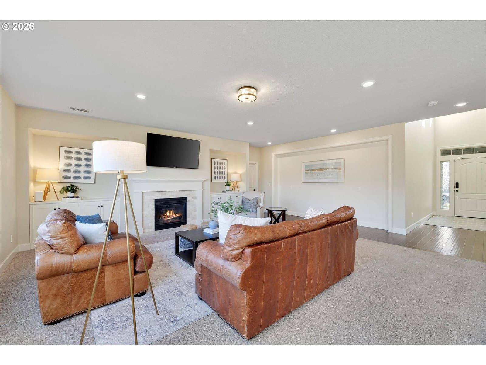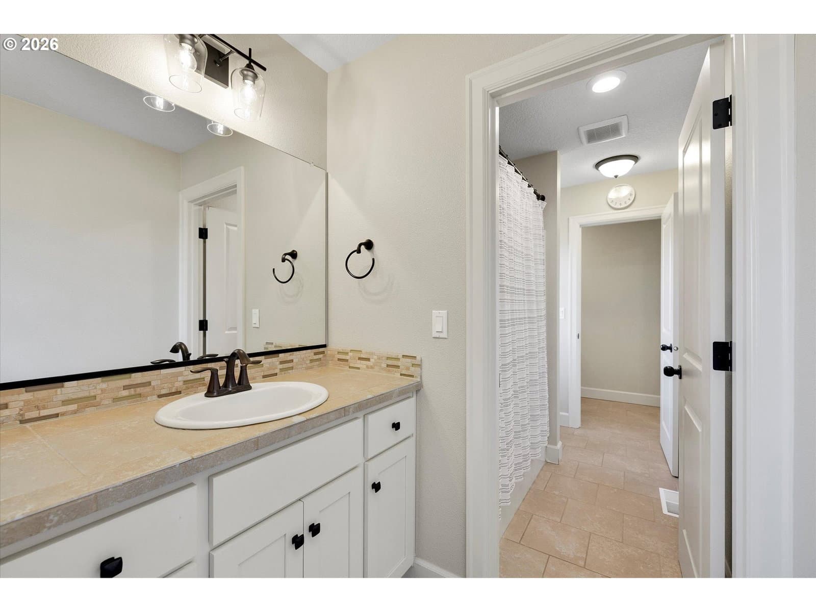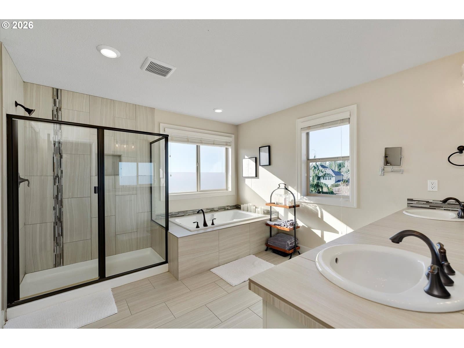 Built in 2015, this stunning 3,899 sq ft home offers a rare layout with an attached fully self contained 722 sq ft Multi-Generational Suite. This ground level suite is very private with its own entrance, dedicated garage, backyard with patio, pergola and sun-shade. Also includes 1 bedroom and on-suite bathroom, 15x13 spacious living room, stackable washer and dryer, generous kitchen with custom island and Brava oven & control over your own heat & AC, separate tankless water heater and engineered wood floors. This versatile space is ideal for multi-generational living, guests, college students, or add'l entertaining space for the home. The main home features 3176 sq ft, engineered wood floors on the main, EXPANSIVE kitchen/great-room concept, full of light, gas fireplace w/ built-ins and & 9 ft ceilings. Upstairs features 20X15 bonus loft room, primary suite with double sinks, & HUGE walk-in closet + an additional 3 bedrooms and 2 bathrooms (one Jack-n-Jill), large laundry room and plenty of storage thru-out the home. Located in a premier Happy Valley neighborhood with territorial backyard and Mt Hood view from upstairs & multi-gen suite front porch. Private HOA Park directly behind home. Enjoy the proximity to New Seasons, restaurants, trails, nature & 205....A truly one-of-a-kind opportunity offering space, privacy, and flexibility in an unbeatable location. All appliances are included.