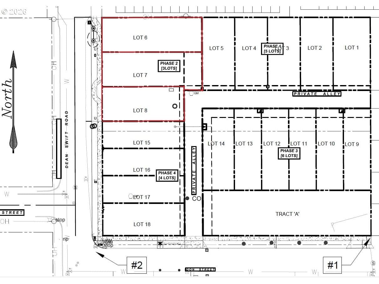 31days on marketThree mixed residential ("live-work") zoned bare lots for sale. These lots are flat and ready to build with paving, curbs, sidewalks, water, sewer, gas, and electric. The special zoning for these lots permits building "duplexes" with street-level low impact business and additional level(s) above for homes with the potential to rent the business levels and homes together or separately. The subdivision is also approved for attached or detached townhomes so buildings on separate lots may be joined or partially joined at the lot lines to reduce setback requirements and allow for 60% lot coverage. The front entrances of the structures would be on Dean Swift to the west with a 5' setback and a driveway access from Gracie Lane with an 18' setback. Lot 809 and 810 are larger to accommodate driveways with access for 809 through the driveway of 810 (see tax lot map for details). Lot 171234DC00809 is 4,180 sq ft measuring 110' x 38', Lot 171234DC00810 is 4,260 sq ft measuring 110' x 38' + 4' x 20', and Lot 171234DC00811 is 3,420 sq ft measuring 90' x 38' 62062 Dean Swift Rd is the old tract address being used for the ease of location of these three developed bare lots.