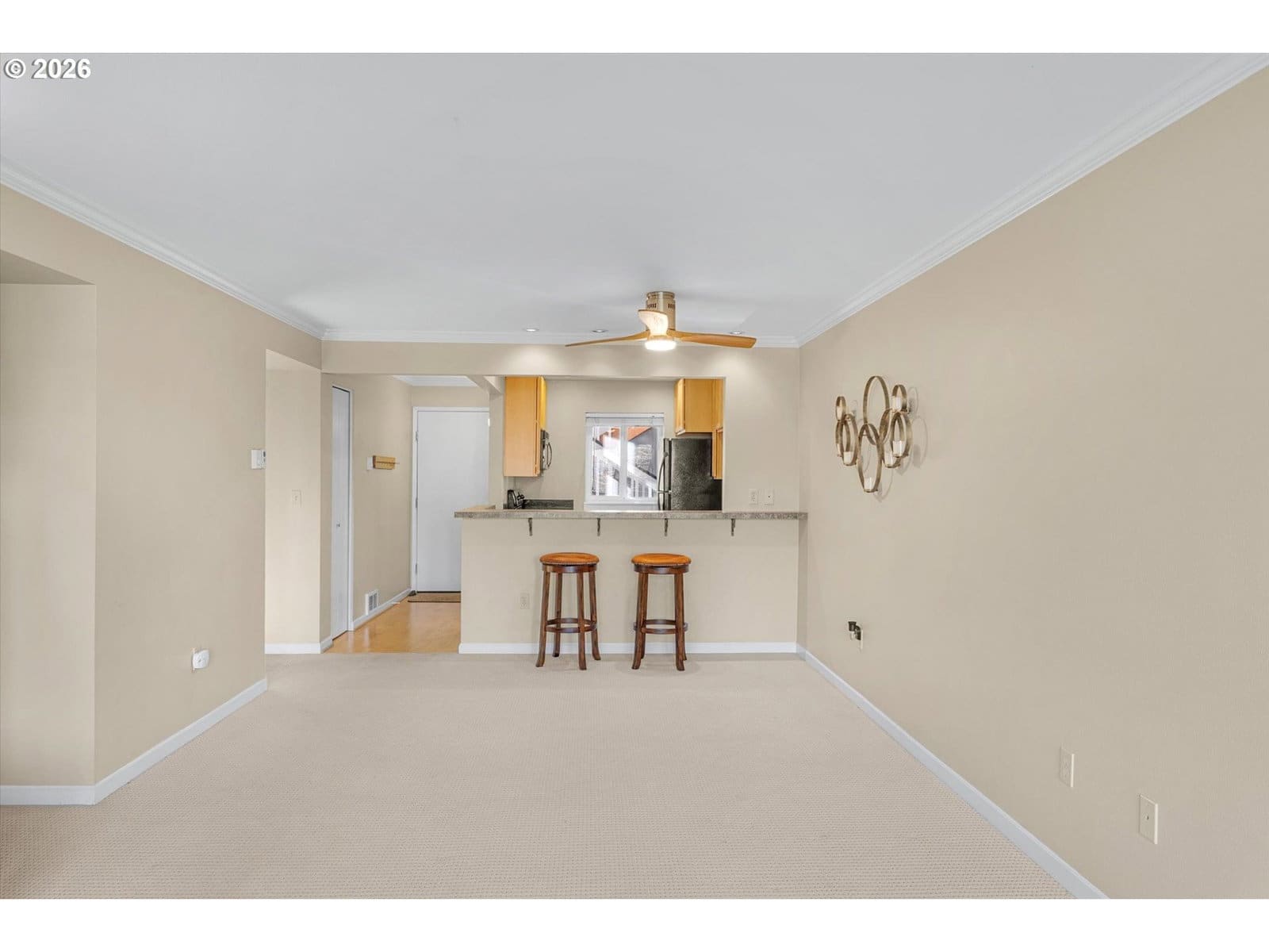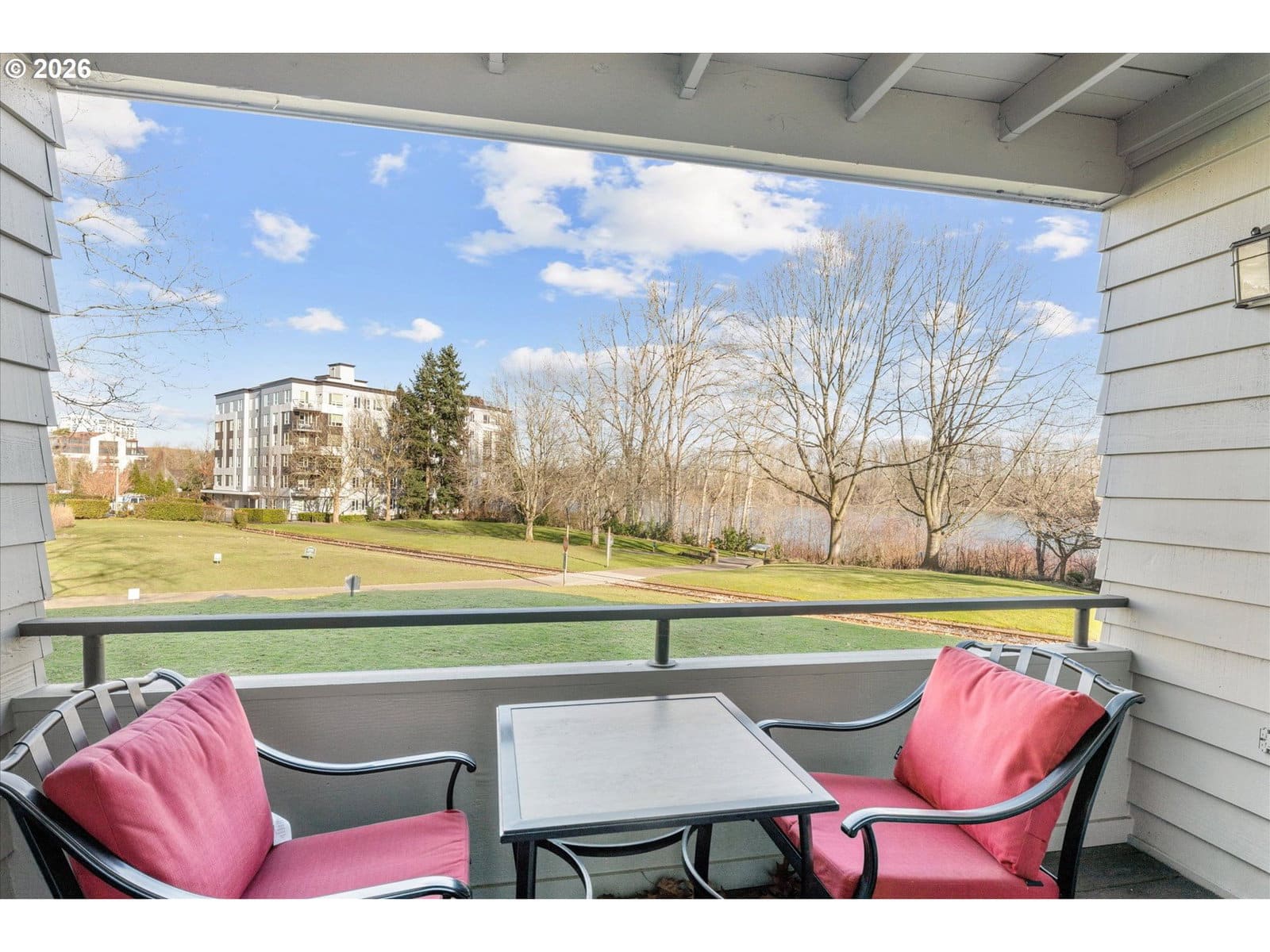 This 2 bedroom, 2 bathroom John’s Landing condo offers beautiful views of the Willamette River and trolley tracks. The spacious living room features a wood-burning fireplace and opens directly onto a balcony overlooking the river and walking path. The kitchen has warm tones and a cozy feel, while the primary suite includes a large view window and direct access to the balcony. The second bedroom works well as a guest room, office, or media space. Two assigned parking spaces, including one covered, provide added convenience. Enjoy a location close to coffee shops, restaurants, bars, and boutique shops, with easy access to Lake Oswego, OHSU, and downtown Portland for city living without the traffic. This condo is ideal for full-time living or as an income property.