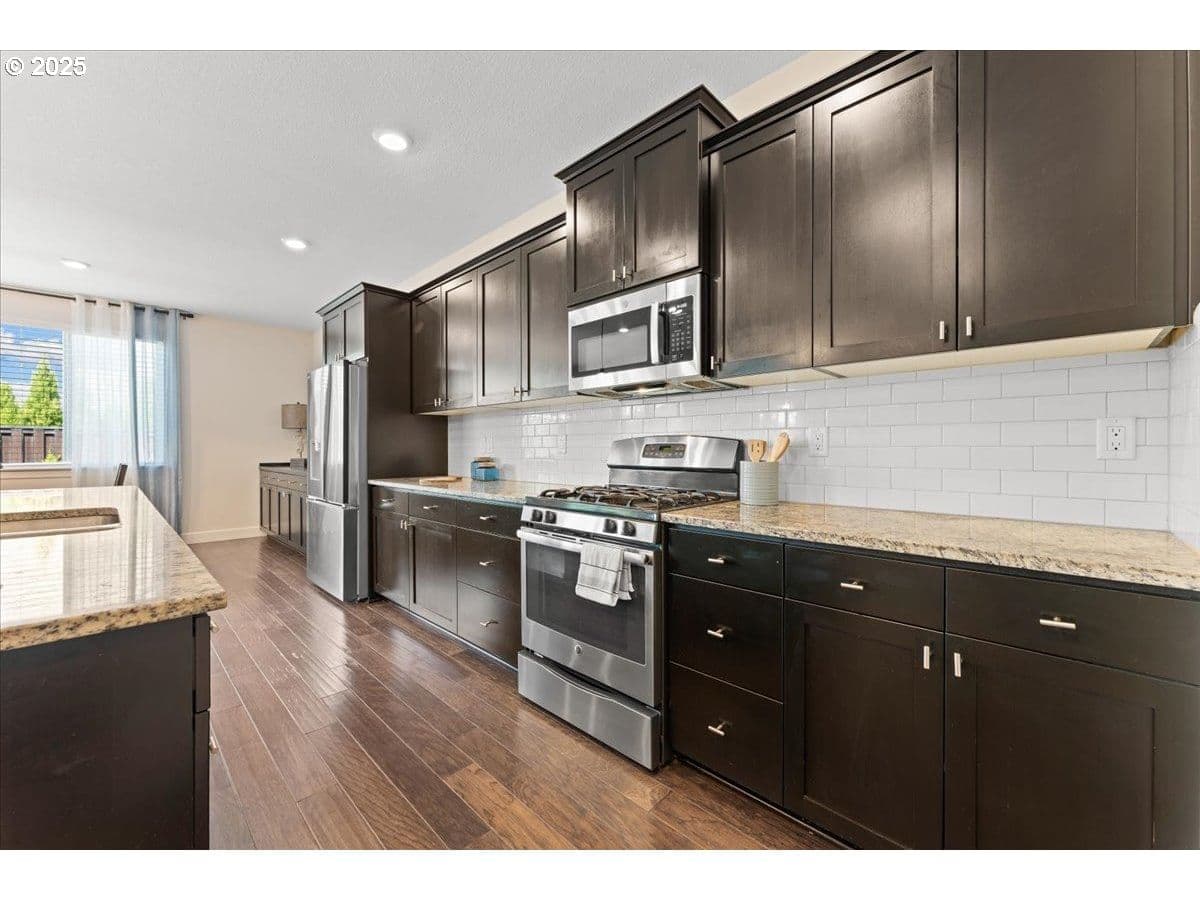 If you're looking for a spacious, MOVE-IN ready home this rare 5-bedroom, 3-bath Craftsman is a must-see. With nearly 3,000 sq. ft. of thoughtfully designed living space, this home offers the flexibility and comfort today's buyers need. A true HIGHLIGHT is the MAIN LEVEL BEDROOM and FULL BATH, ideal for guests, or a private home office. The open-concept kitchen is a DREAM for both everyday living and entertaining, featuring SLAB GRANITE counters, an oversized island, stainless steel appliances, and warm cabinetry. HUGE open BOUS ROOM, Fresh interior paint, BRAND NEW carpet, hardwood floors, central A/C, and a cozy gas fireplace make the entire home feel FRESH and welcoming. Step outside to a COVERED PATIO, SPRINKLER system—fully fenced yard, PERFECT for outdoor gatherings. A 2-car garage provides extra storage and convenience. All of this is located in a DESIREABLE neighborhood close to schools, shopping, and EASY freeway access. Homes with 5 true bedrooms and this much space don’t come along often—don’t miss your chance to make it yours.