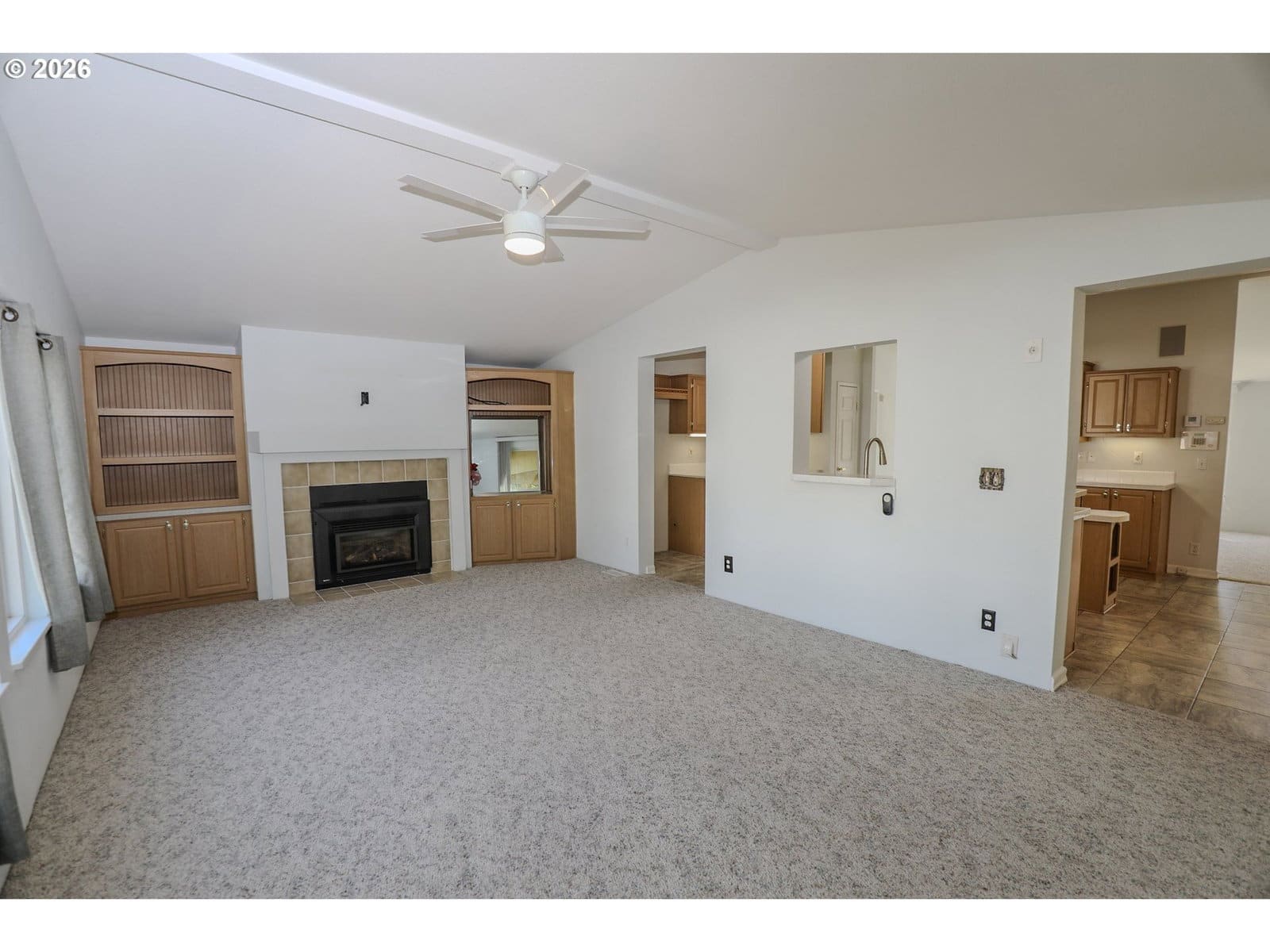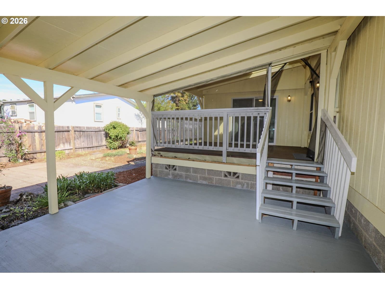 Welcome to this beautifully maintained triple-wide manufactured home offering 1,848 sq ft of spacious, comfortable living on a desirable corner lot. Situated on a .25-acre parcel, this 3-bedroom, 2-bath home combines functionality, style, and outdoor enjoyment. Step inside to an inviting layout featuring vaulted ceilings and abundant natural light throughout. The large kitchen is a true centerpiece, complete with new countertops, a generous island with eating bar, skylight, pantry, and double oven—perfect for everyday living and entertaining alike. The primary suite provides a relaxing retreat with vaulted ceilings, a walk-in closet, double sinks, and a soaking tub designed for comfort and convenience. The family room offers a cozy gas fireplace and direct access to a covered deck, creating the perfect indoor-outdoor flow. Enjoy the fully fenced backyard with raised garden beds, mature landscaping, and a full irrigation setup including in-ground sprinklers and drip system. Additional highlights include a new heat pump for efficient year-round comfort, an oversized extra-deep detached two-car garage, and ample parking space for vehicles, RVs, or guests. This property offers the perfect blend of space, upgrades, and outdoor living—ready for you to move in and enjoy! Call for your private tour today.