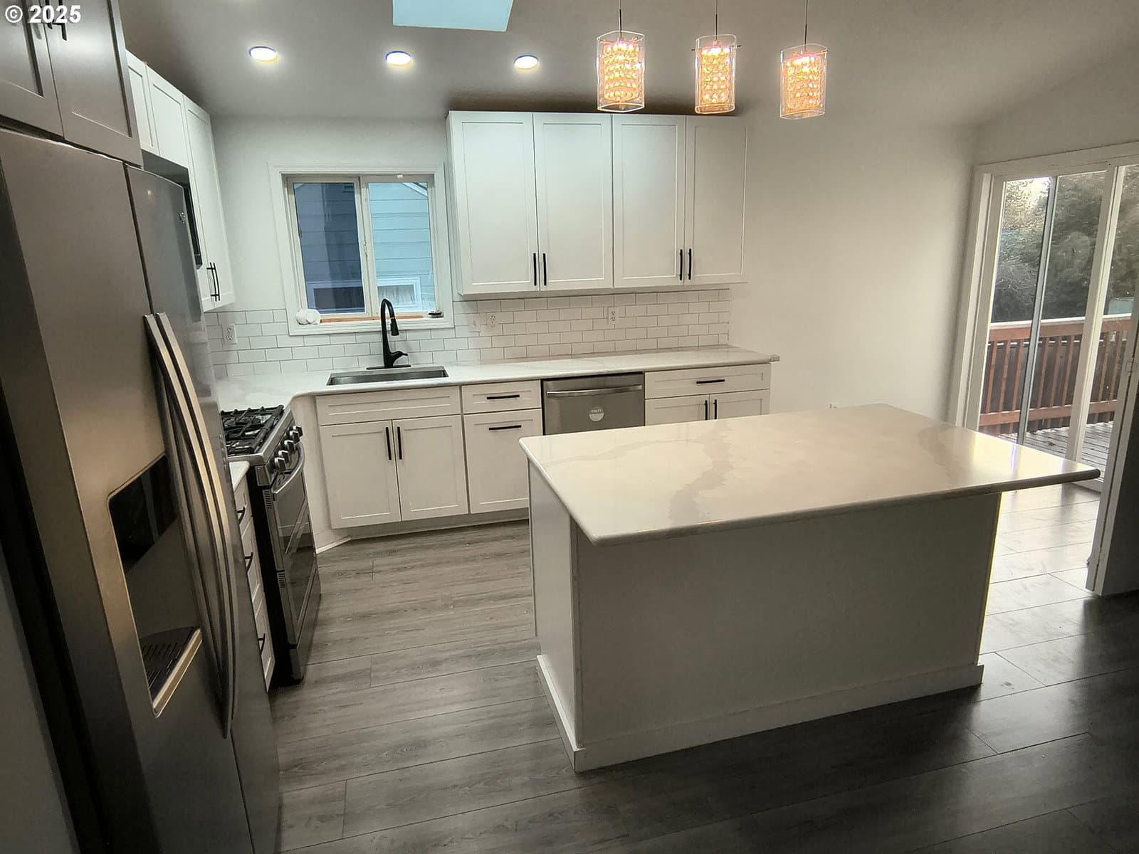 Fully Remodeled • Prime SW Portland Location • One-Level Living. Welcome to this beautifully remodeled, move-in-ready single-level ranch in one of SW Portland’s most desirable neighborhoods. Set on a quiet, elevated street and directly across from an elementary school’s playground and playing fields (no drop-off or pick-up traffic impact), this home offers a rare combination of peace, privacy, and convenience. Inside, the home truly lives like new. Recent upgrades include brand-new siding, fresh interior and exterior paint, new flooring, modern fixtures, and an efficient new boiler. The light-filled open floor plan creates an inviting space for everyday living and entertaining. The fully updated kitchen features sleek stainless-steel appliances, including a gas range, ample counter space, and a clean, modern aesthetic—perfect for both casual meals and hosting guests. A new washer and dryer are also included, reinforcing the home’s truly turn-key appeal.Step outside to a private, fenced backyard with raised garden beds, mature trees, and the perfect balance of grass and greenery. Sitting on top of a hill, the property offers excellent drainage and peace of mind — no flood concerns — while still feeling connected to nature. The location is hard to beat: Quiet, established neighborhood. Minutes to Multnomah Village shops and dining. Approximately 10 minutes to downtown Portland. Close to parks, schools, and everyday amenities. This home is ideal for buyers seeking one-level living, low maintenance, and a true move-in-ready experience in a prime SW Portland setting. Homes like this—fully remodeled, well-located, and turn-key—are rare. Really, anything under $600k in the Maplewood neighborhood is almost unheard of. Don’t miss the opportunity to make it yours. [Home Energy Score = 6. HES Report at https://rpt.greenbuildingregistry.com/hes/OR10231203]