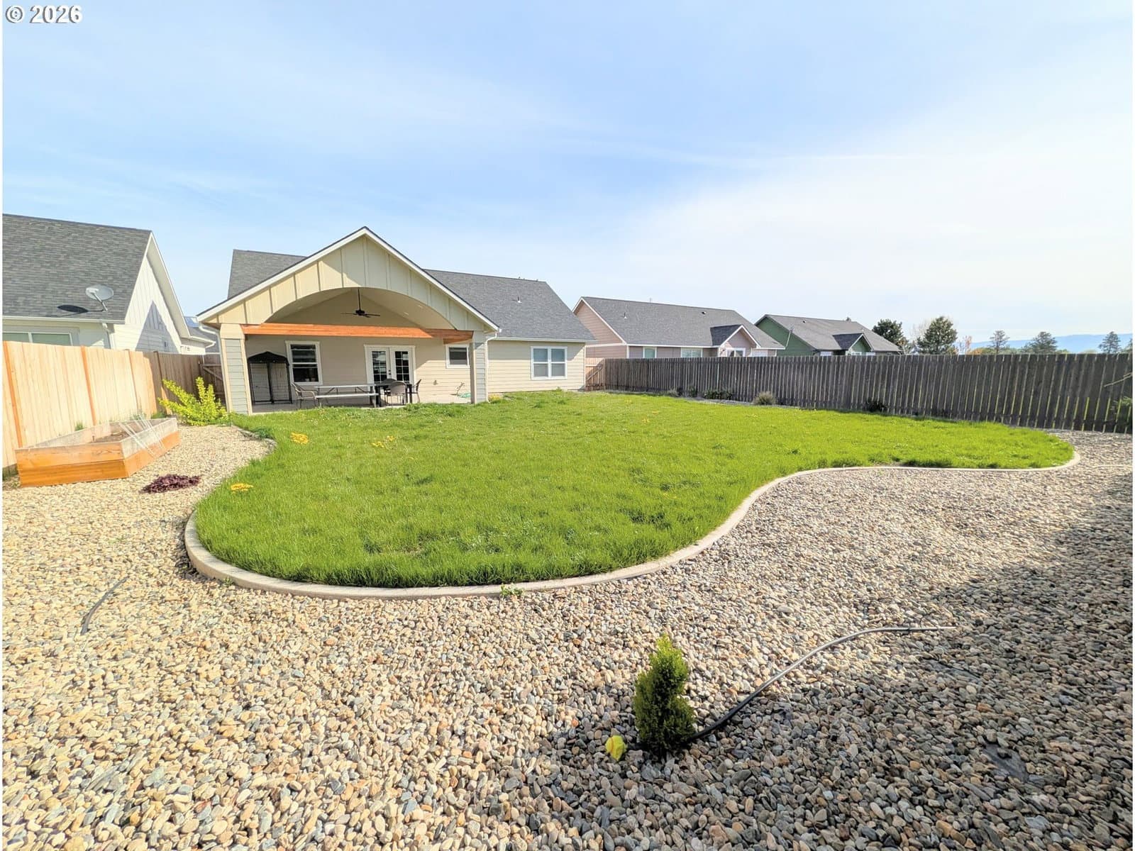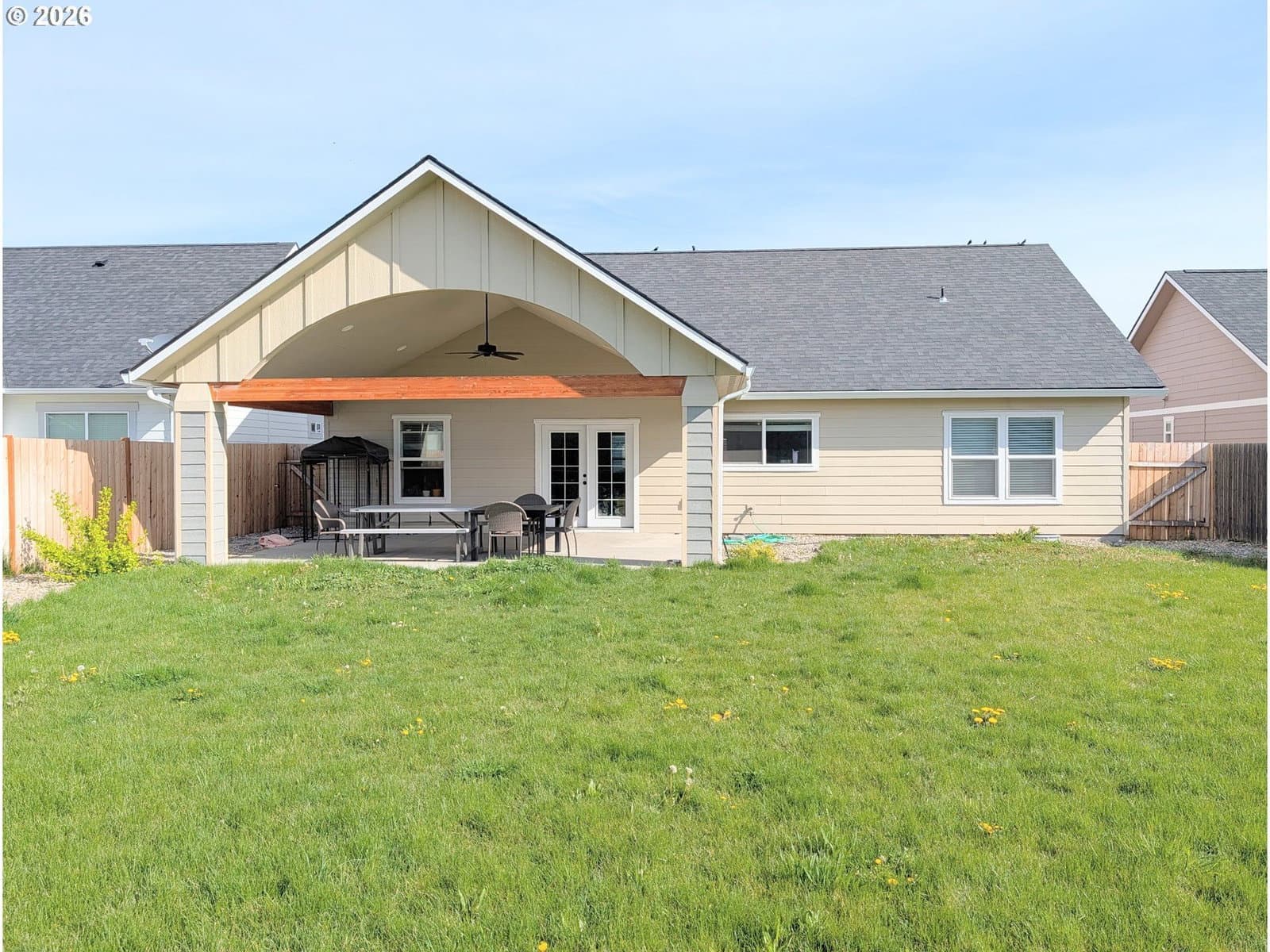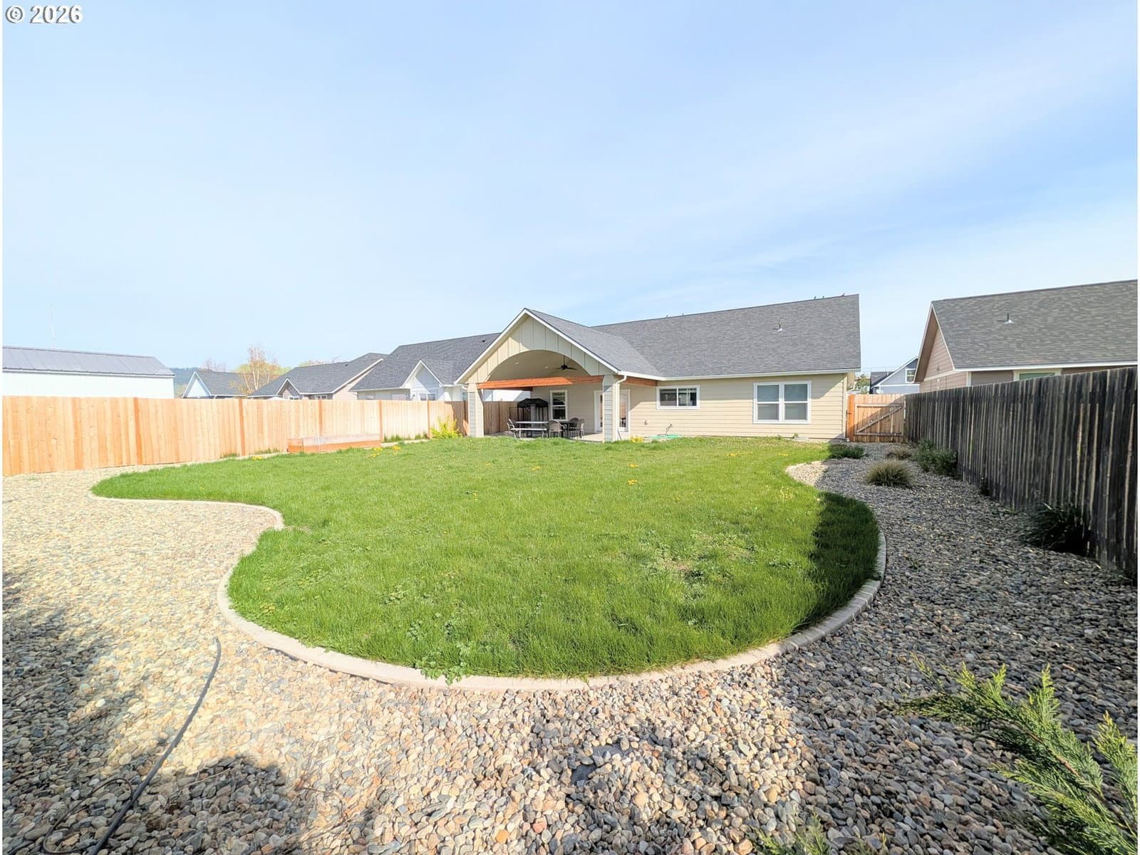 4days on marketDo the vaulted ceilings, open floor plan and single level feel of newer construction call your name? This 2021 Construction with 3 bedrooms and 2 bathrooms has just that and more! Enjoy the large living room, dining and kitchen combo featuring a gas fireplace, a kitchen island, separate pantry and bright windows and slider leading to the covered patio. The master and en suite is spacious and adorned with tile, privately located on the opposite side of the home from the other 2 bedrooms and bathroom. The back yard is private feeling and fully fenced with a vaulted covered patio, gas grill hook up, and sprinkler system. Spring market is here, grab your showing today of this newer home!