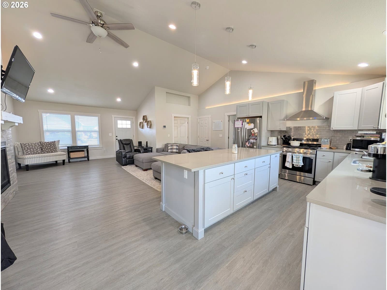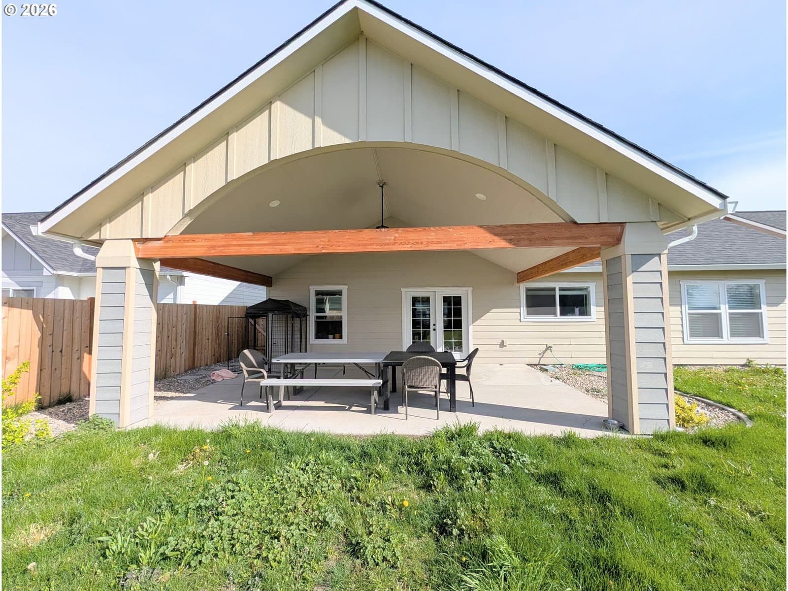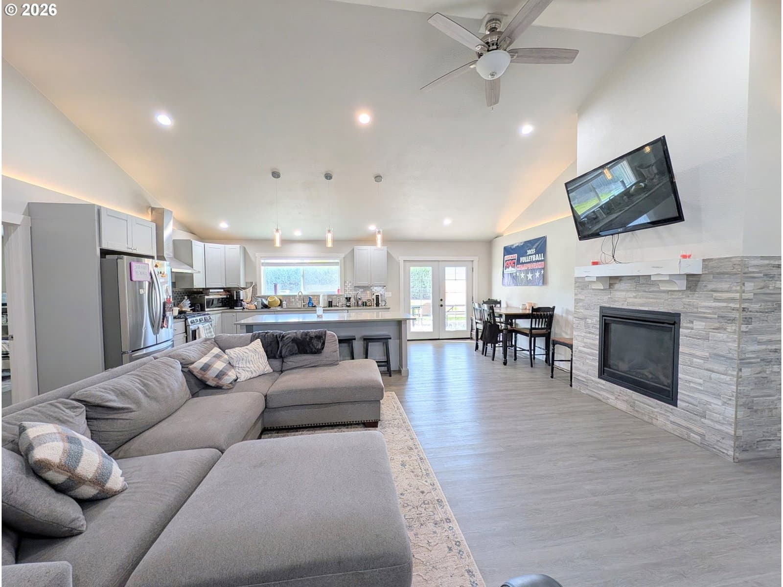 4days on marketDo the vaulted ceilings, open floor plan and single level feel of newer construction call your name? This 2021 Construction with 3 bedrooms and 2 bathrooms has just that and more! Enjoy the large living room, dining and kitchen combo featuring a gas fireplace, a kitchen island, separate pantry and bright windows and slider leading to the covered patio. The master and en suite is spacious and adorned with tile, privately located on the opposite side of the home from the other 2 bedrooms and bathroom. The back yard is private feeling and fully fenced with a vaulted covered patio, gas grill hook up, and sprinkler system. Spring market is here, grab your showing today of this newer home!