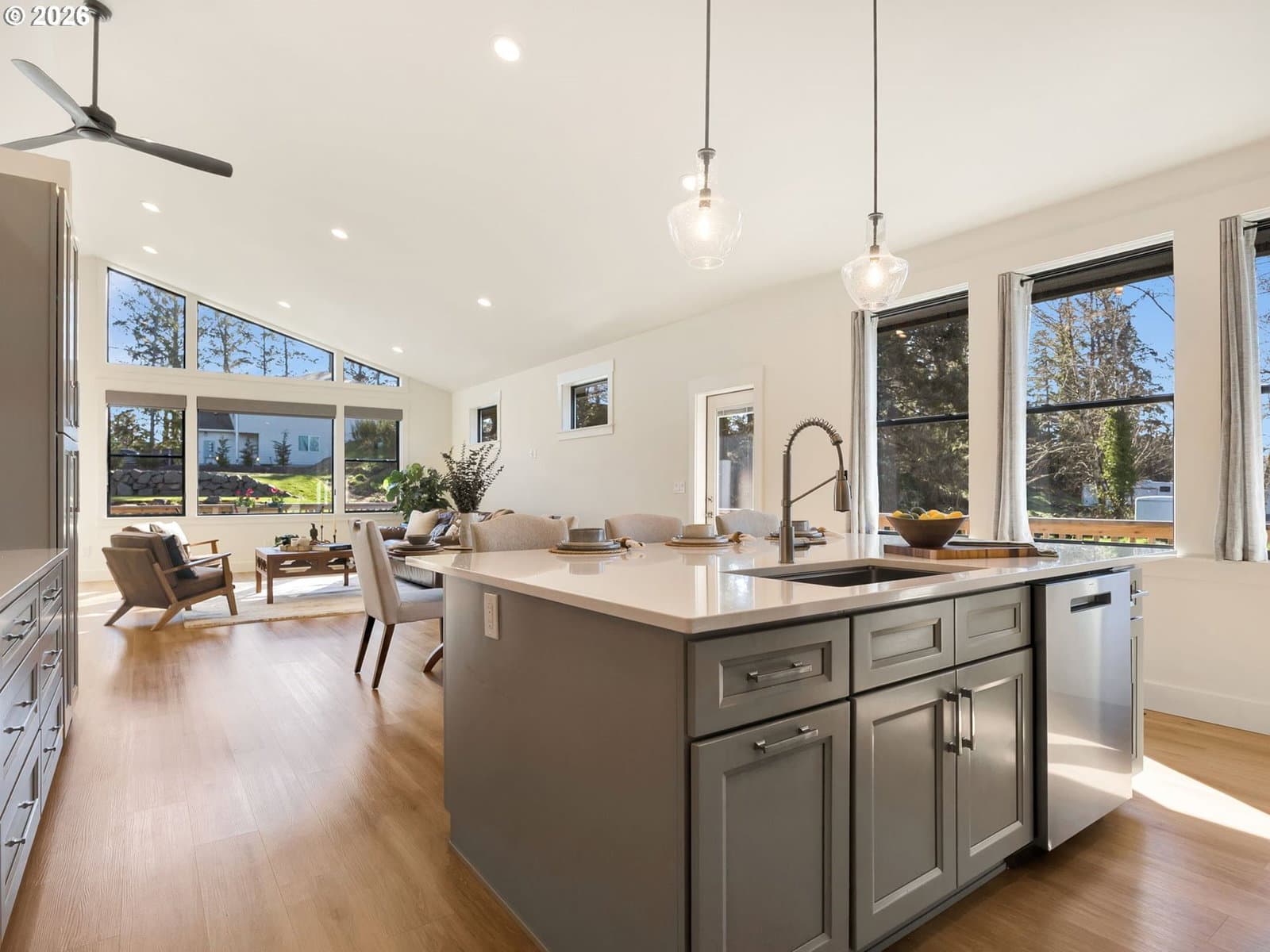 This beautiful Gearhart property offers 4 bedrooms, 2.5 bathrooms, two outbuildings, and sits on just over half an acre on a quiet non-through lane. With space, light, and flexibility both inside and out, this home is designed for comfortable coastal living.The open-concept kitchen, living, and dining areas feature vaulted ceilings, while the remaining rooms and hallways offer 9’ ceilings—all filled with natural light. The kitchen is well-appointed with quartz countertops, a large island with storage and seating for six, double pantry cabinets, and abundant drawer space.A small office just off the living area provides an ideal work-from-home setup. The spacious primary suite includes a 17' x 17' bedroom, walk-in closet, and a beautifully finished bathroom with quartz counters, tile floors, a tiled walk-in shower, and a 6' soaking tub.Additional features include fiberglass double-hung windows throughout, an on-demand tankless hot water heater, and a utility room with GE washer and dryer and a convenient half bath.Outdoor living shines with a wraparound cedar deck on the east and south sides—perfect for relaxing and enjoying the natural setting. The property also includes an attached 24' x 24' garage with extra-tall ceilings and a 9' door, plus a detached 24' x 28' shop with tall door clearance, built-in shelving, and plywood-lined walls ideal for storage or workspace.The grounds feature a fire pit, garden shed with built-in shelving, and mature landscaping. The upper portion of the lot is graveled with ample room for an RV, boat, trailer, or additional parking.Don’t miss this exceptional Gearhart property.
