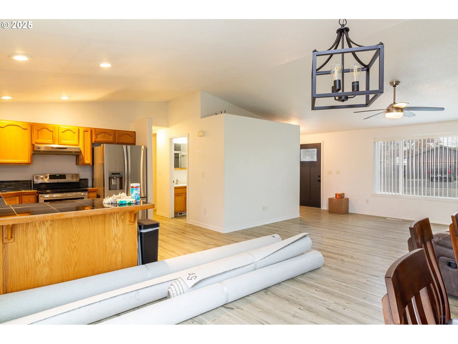 Welcome home!! 3 bed 2 bath home with huge fenced yard, fresh paint, new roof in 2020,HVAC in 2021, new carpet in rooms, new garage door opener too. Laminate flooring in main living areas. Patio space for outdoor entertainment. 0scape front yard and tons of parking!!