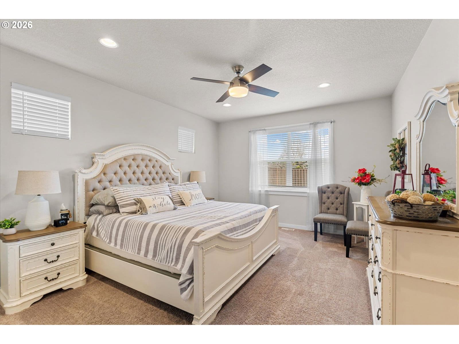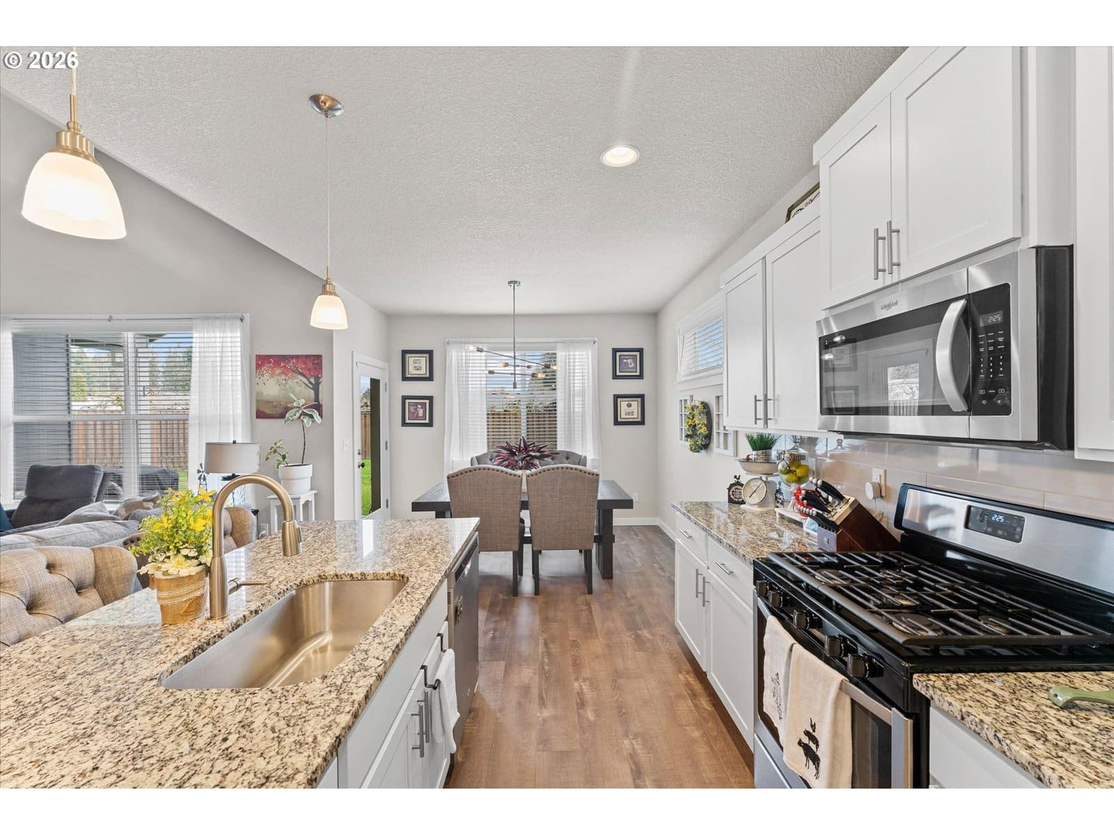 Don’t miss this hard-to-find, gorgeous modern one-level home tucked away on a quiet dead-end street. This beautifully maintained home offers an easy, comfortable layout with thoughtful upgrades throughout.Vaulted ceilings and large windows bring in plenty of natural light, giving the main living spaces a bright, open feel. The living room features an electric fireplace with custom built-ins—perfect for cozy evenings or gathering with friends and family.The kitchen is both stylish and practical, with slab granite countertops, stainless steel appliances, pull-out cabinet drawers, and a pantry for extra storage. Durable LVP flooring runs through the main living areas for easy maintenance. The spacious primary suite features double sinks, a soaking tub, walk-in shower, and a large walk-in closet.Step outside to the covered back patio and enjoy the private, fully fenced backyard—perfect for relaxing, entertaining, or enjoying the outdoors.The home also includes a tankless water heater, air conditioning, pre-wiring for an electric vehicle, overhead garage storage, and front and back irrigation.A wonderful home in a quiet location—and best of all, no HOA.