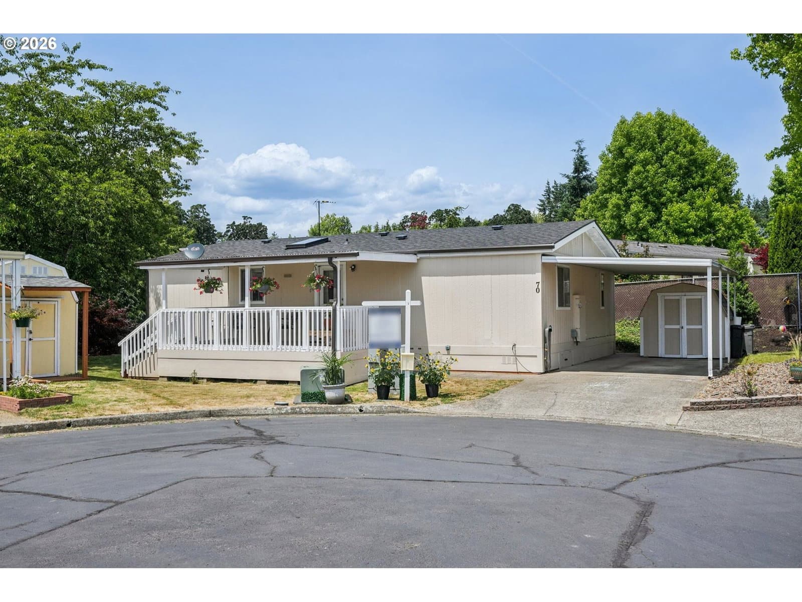 Welcome to this updated, light and bright, 2bd, 2ba home in 55+ park, Southwest Terrace. Quiet Location, Great View! Located near shopping, Linfield University and historic downtown McMinnville. The large open Kitchen and Living Room provide plenty of space for you to enjoy. The big projects are done: Newer & recent updates (2024-2026) - Roof and leaf guard gutters. Kitchen update with all new stainless steel appliances in kitchen including induction range, built in microwave, laminate flooring, bathroom vanities, shower/tub in Primary bath, step-in shower in hall bath, water heater, all new plumbing, outlets installed in carport (110 & 220 with 50 amp breaker) for EV charging. Heat pump and furnace new in 2017. Well maintained MH park with friendly neighbors. Space rent $807/mo. Or, $726/mo with potential discount of $81 for residents in good standing. Garbage service included. Don't miss this one! Welcome home!