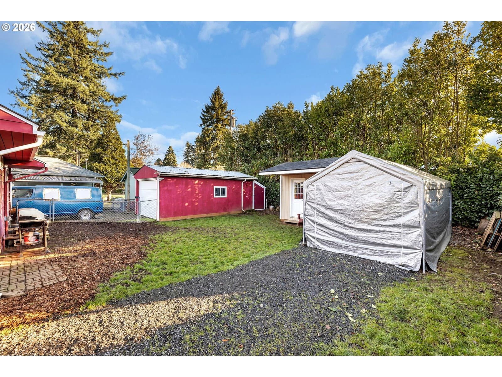 Charming move-in ready bungalow with detached garage and 2nd driveway with portable carport, perfect for storage and RV parking. Home has been updated throughout with newer LVP flooring. Remodeled kitchen with pantry area, including a Stainless Steel fridge and stackable washer/dryer. Dining room with built-in bench seating. Updated bathroom with tile floor. Newer hot water heater. Private fenced back yard with an adorable garden shed.