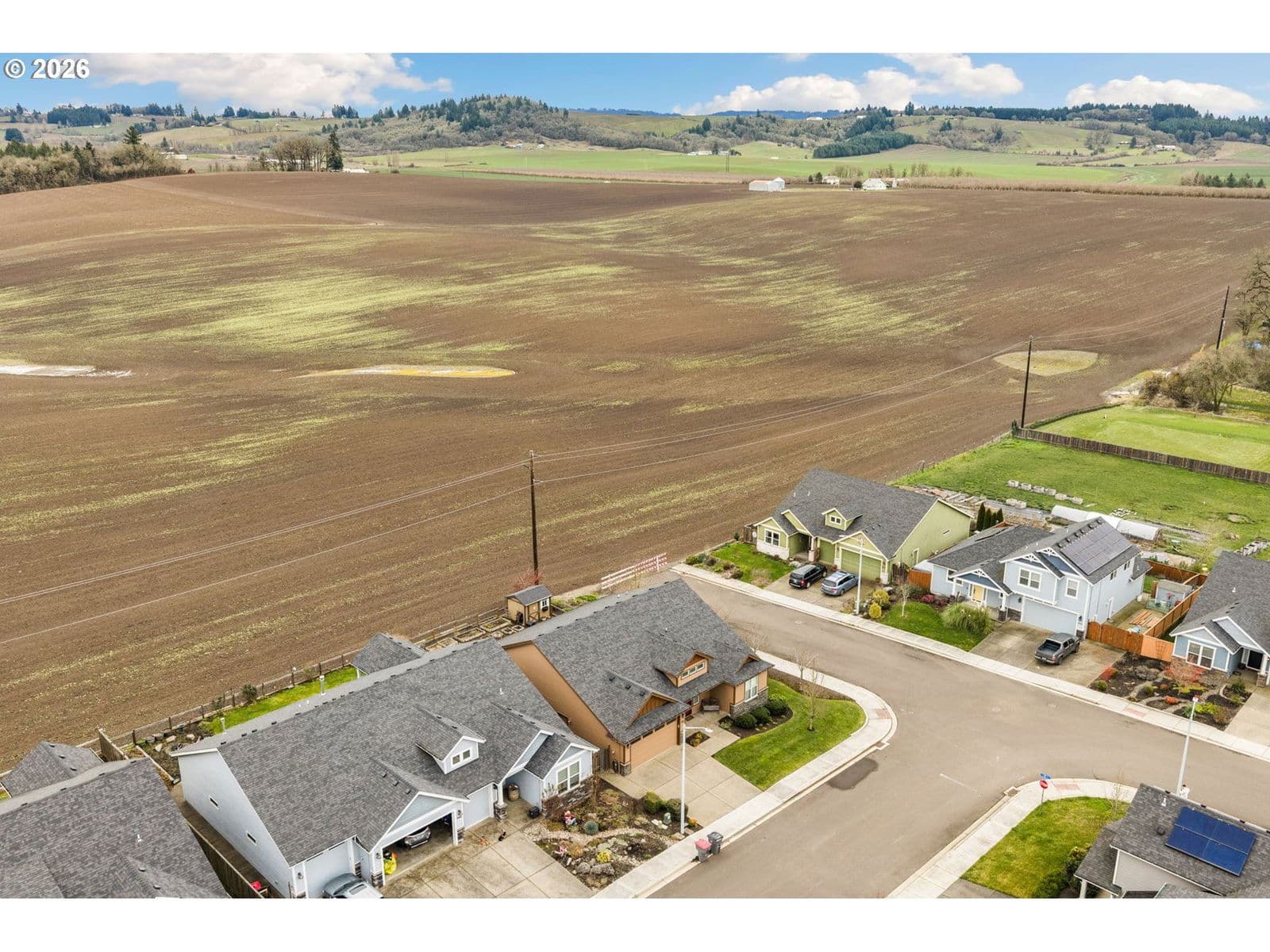 Step inside to a spacious, open floor plan defined by tall ceilings, abundant natural light, and oversized windows framing relaxing views of rolling pastures and distant hills. The functional, modern kitchen serves as the heart of the home, featuring durable granite countertops, an expansive island, and generous pantry storage. Adjacent, the light-filled dining area opens directly through sliding doors to the serene back patio and gardens. Three comfortable bedrooms on a single level, beautiful bathrooms, a private office and a workshop behind the garage complete the layout, offering both retreat and functionality.Outside, the excellent .19-acre lot balances relaxation and practicality. Enjoy the peaceful patio and gardens, front and back irrigation systems for simple maintenance and a spacious tool shed handles storage needs. Built for enduring quality, the home features concrete board siding, newer paint, an electric car hookup, an energy efficient whole house heat pump and a quality roof.Location is key. Situated in the sought-after Carlton Crest neighborhood, this home is just blocks from the vibrant heart of downtown Carlton. World-class wineries, restaurants, shops, and tasting rooms are easily accessible within minutes—by foot or short drive. Experience the tranquility and privacy of a quiet dead-end street setting, moments from Yamhill County’s finest offerings. There is a one time $400 transfer fee due to HOA at closing.