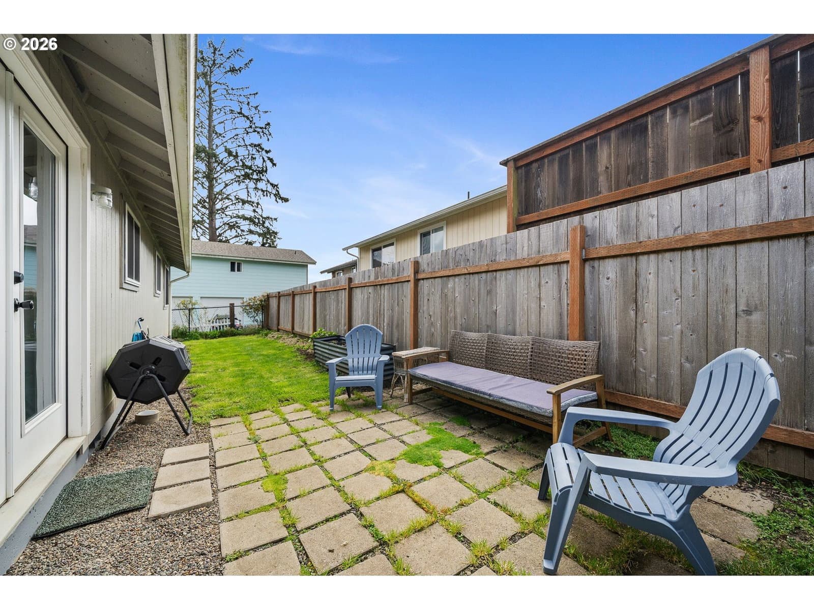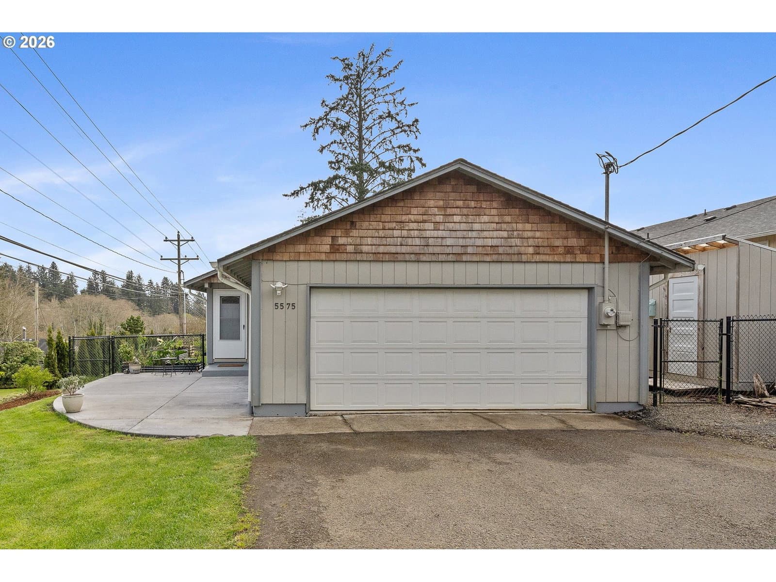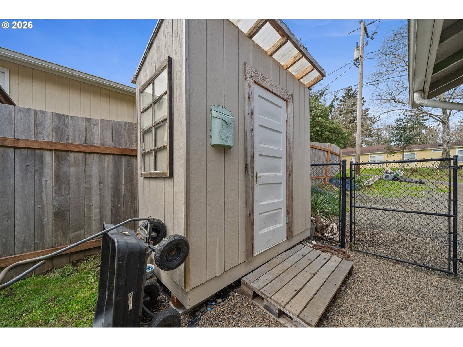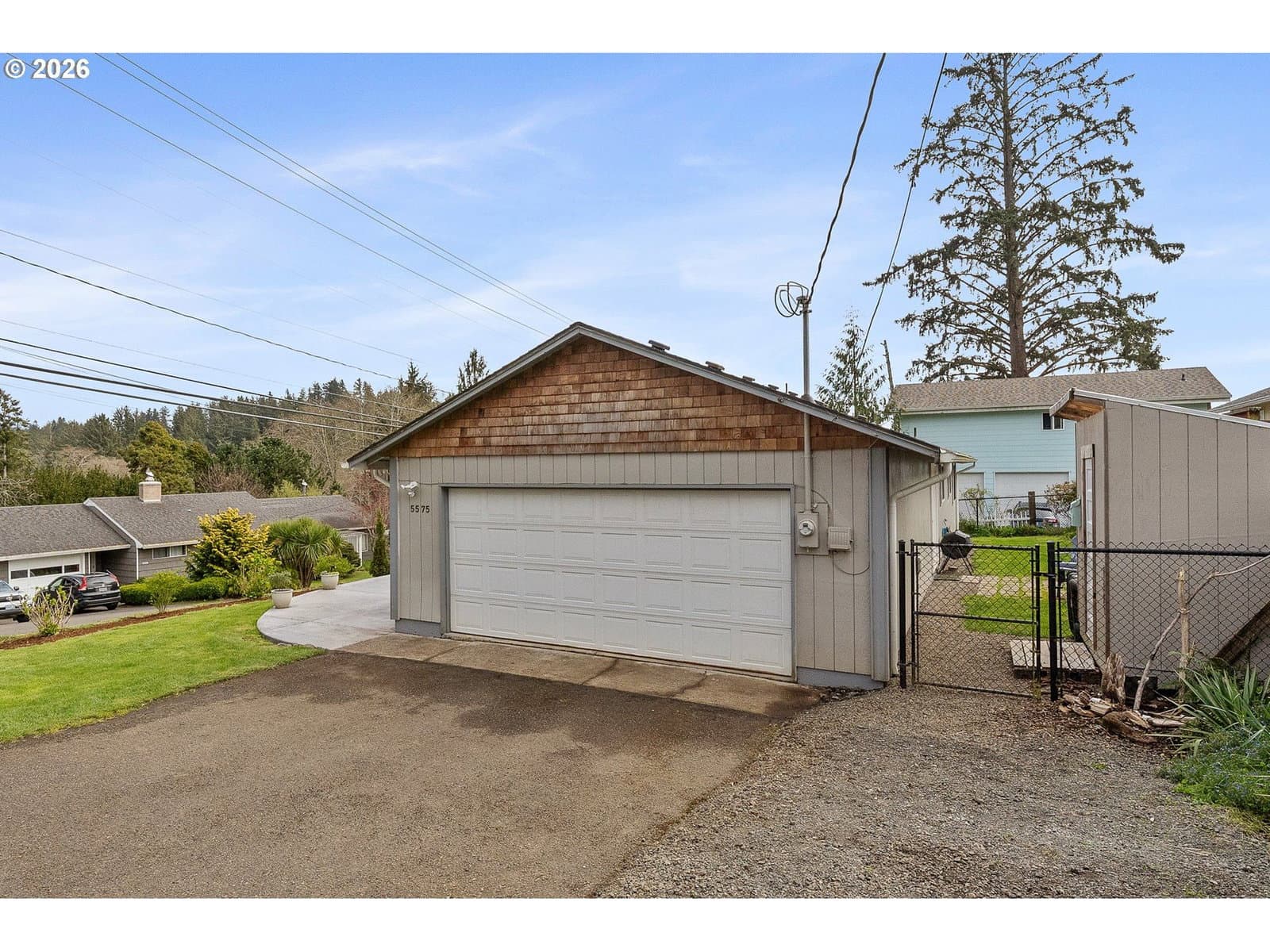 Charming Bay City home with bay views, located just a few blocks from the heart of town. This one level, 3 bed, 2 bath home offers a great layout, perfect for a starter home, downsizing, or coastal getaway. Enjoy an open kitchen with painted cabinetry, butcher block counters, full-height backsplash, pantry and newer appliances. Vaulted living room has lots of light and and custom live-edge myrtle wood shelving. Outdoor spaces, perfect for entertaining with a nicely landscaped, fenced yard, raised garden beds, garden shed, and new concrete front patio that has a view of the bay! Double car garage with storage. Thoughtful updates include new insulation, new dishwasher and kitchen faucet. No carpet, for easy indoor maintenance. Enjoy this quiet neighborhood and take your evening stroll down to the park, local art center, café or just enjoy the bay views! Schedule a showing today!
