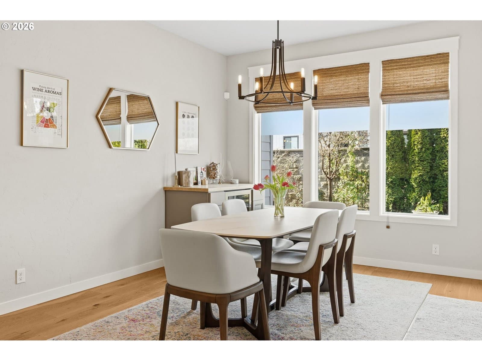 Beautiful Butler Built home (2019) located on 0.15 acres in the highly sought-after “The Nines” subdivision in North Gilham. Just a hop, skip, and jump to the community park and a quick drive to Gilham Elementary, Cal Young Middle School, Market of Choice, and Delta Oaks Shopping Center.The welcoming exterior features dry creek bed landscaping and elegant stone masonry accents. Inside, you’ll find modern design with custom touches throughout—hardwood, tile, and carpeted flooring, wide hallways, high ceilings, ceiling fans, and abundant natural light. Cozy up by the living room fireplace in the inviting great room layout.The luxurious kitchen is a showstopper with quartz countertops, a large island with eat bar, soft-close walnut cabinetry, and stunning GE Café Matte White gas appliances. The owner’s suite is filled with natural light and features a tray ceiling and spa-like bathroom with dual sinks and a beautifully tiled walk-in shower.Additional highlights include a convenient hallway storage nook, a separate laundry room with sink and cabinetry, and a versatile fifth room perfect for a playroom, office, art studio, or workout space.Step outside to a gorgeous backyard retreat complete with paver patio, firepit, pergola, and a large shed/workshop/she-shed—ideal for hobbies or extra storage. Artificial turf means your grass is always green and no mowing needed. A rare opportunity to own a thoughtfully designed home in one of North Gilham’s most desirable newer neighborhoods.