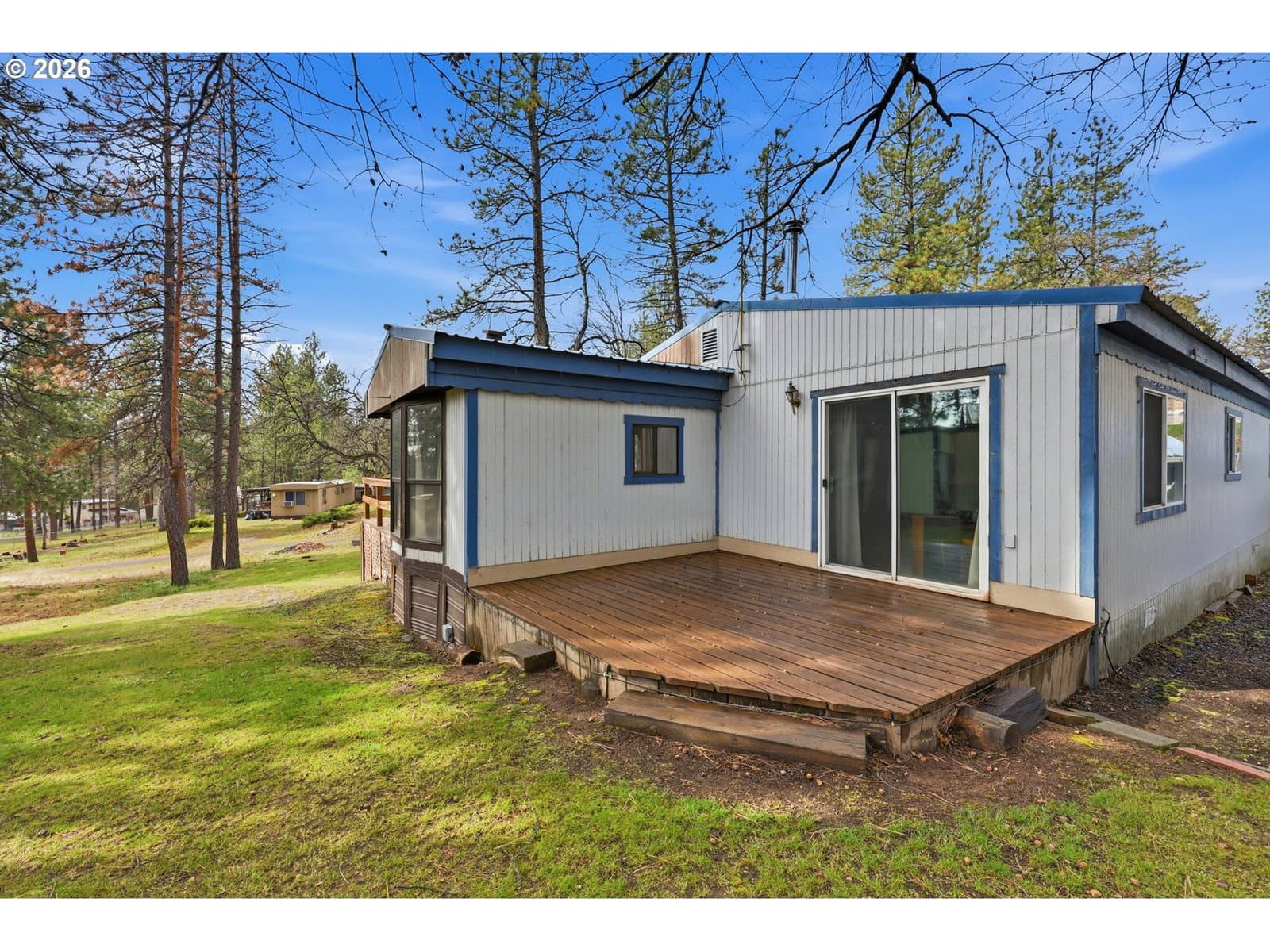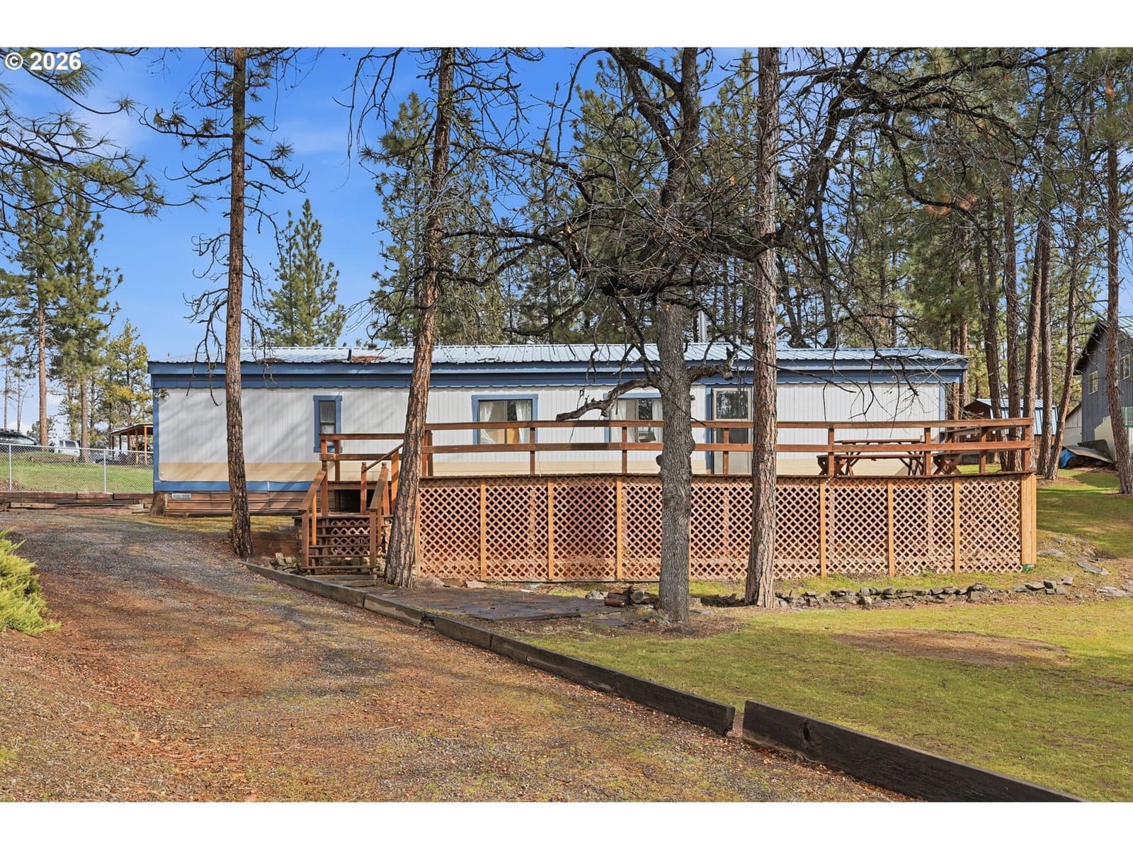 Private and comfortable home near Pine Hollow Reservoir, located a short distance from the lake. Set on a private, treed, and secluded lot with inviting outdoor spaces, this property offers the perfect blend of recreation and peaceful country living.Originally a 1986 single wide manufactured home, the home features a permitted 14 × 44 stick-built addition that adds beautiful extra living space with vaulted ceilings and abundant natural light. The overall floor plan offers a comfortable interior with plenty of storage throughout.Inside, the living room features a cozy fireplace and a slider leading to a second, private deck, perfect for quiet moments, relaxing alone, or reading a book. The spacious kitchen offers generous storage, a giant eating bar, and a separate dining room. The vaulted primary suite adds to the home’s comfortable layout.One of the standout features is the huge front deck with a peek-a-boo view of Pine Hollow Reservoir. This expansive outdoor space is perfect for enjoying summer days and evenings. There is room for a full outdoor seating area, dining space, and even a hammock. Picture BBQs, entertaining friends, or simply relaxing for hours while taking in the peaceful surroundings.Recent updates include a new 1000-gallon concrete septic tank (2020) and new water heater (2019).Beyond the lake, the area offers endless outdoor recreation, including rafting the Deschutes River in nearby Maupin, along with hunting, hiking, fishing, kayaking, and paddleboarding throughout the surrounding area. This property includes extra parking just above the main driveway, along the road leading to the back exit.