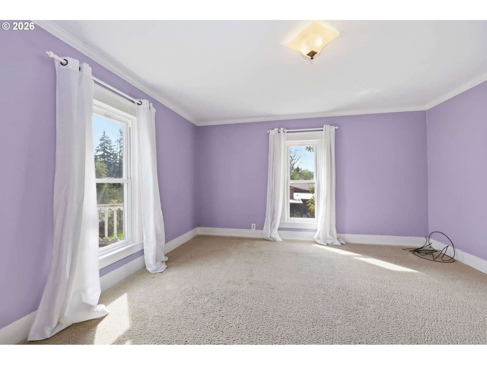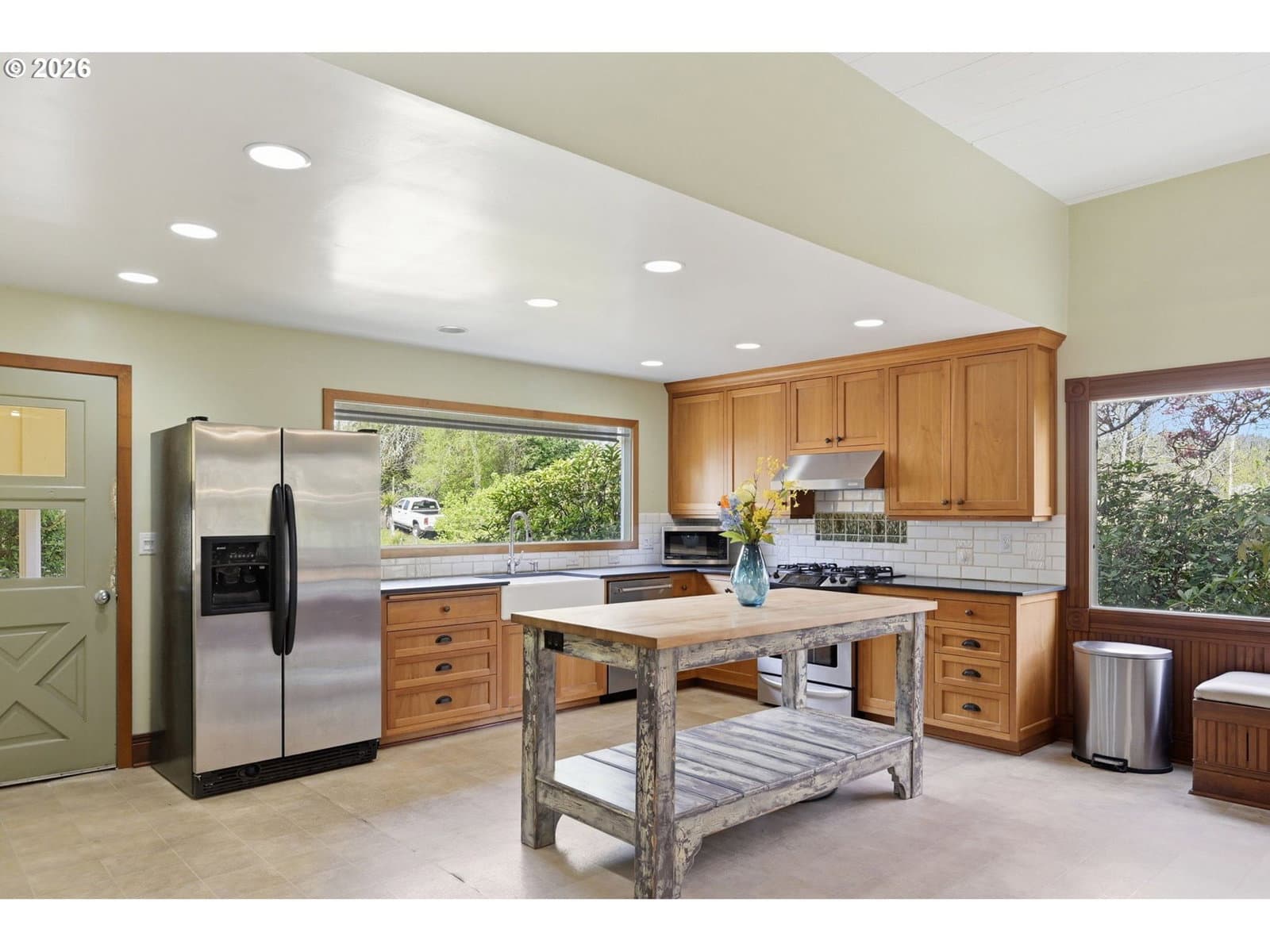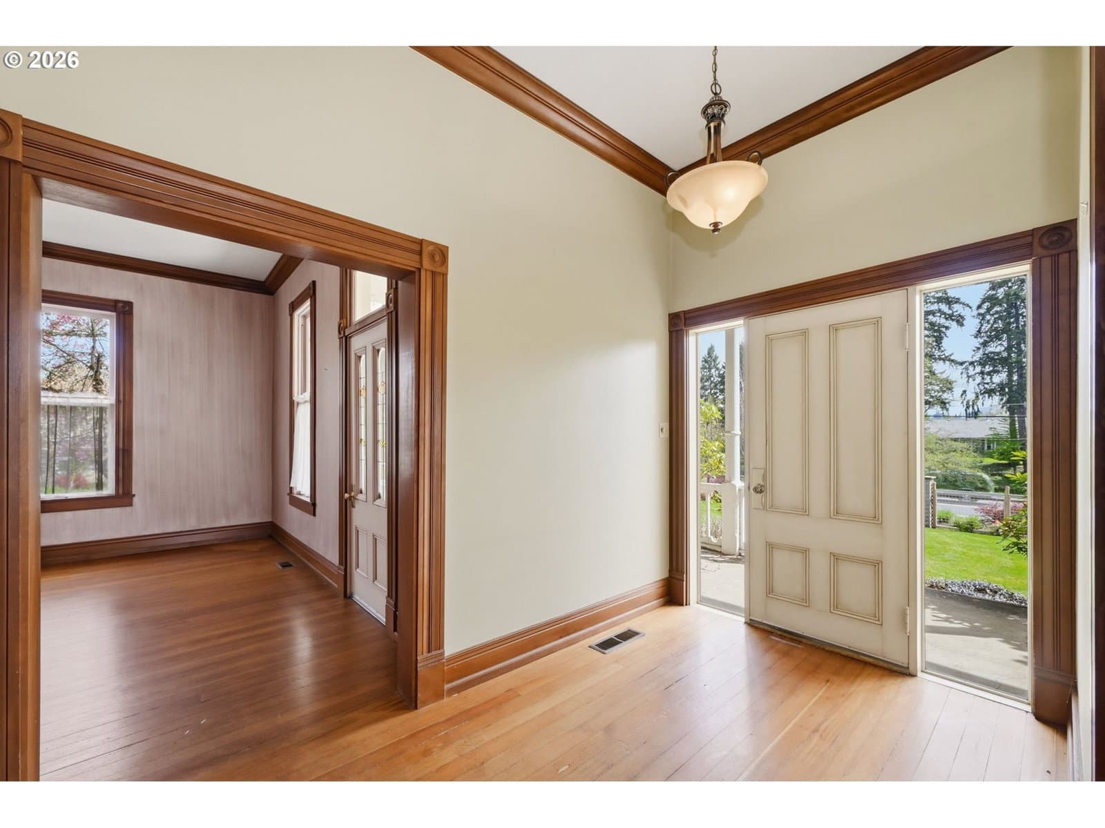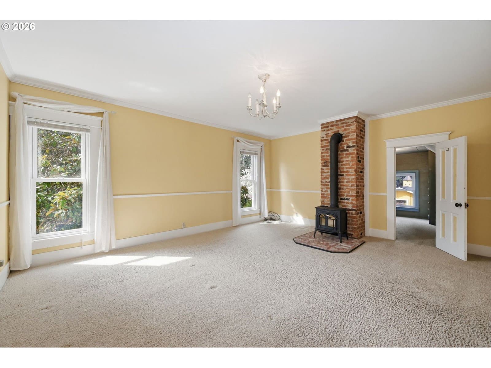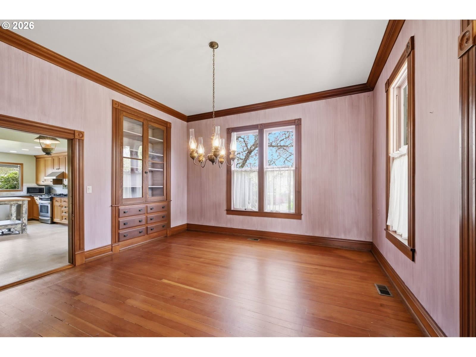 Discover a once-in-a-lifetime opportunity to own a truly exceptional property in the Historic District of Cottage Grove. Over an acre of beautifully landscaped grounds, this remarkable estate features a 2,700 sq ft charming, vintage, home paired with an attached 1,740 sq ft addition, offering endless potential for your unique vision. Lovingly cared for more than 125 years, the main home has preserved its timeless character while enjoying thoughtful updates. The welcoming country kitchen blends history and modern convenience with an antique-style pellet stove, period light fixtures, slate counters, gas range, farmhouse sink, butcher block island with power, walk-in pantry, and oversized picture windows framing the serene landscape. The main-level bathroom exudes luxury with a walk-in shower, deep claw-foot tub, wood wainscoting, and pedestal sink. The expansive living room features original hardwood floors, high ceilings with crown molding, built-in bookshelves, and a cozy wood-burning fireplace stove. The formal dining room features a built-in hutch and a stunning chandelier reminiscent of classic kerosene lighting. The well-sized primary bedroom has its own wood-burning stove and walk-in closet. Upstairs, all bedrooms have newer windows and crown molding. The second full bathroom continues the period style with an antique claw-foot tub and shower attachment. The 1,750 sq ft attached addition, designed in harmony with the original home, includes heating and A/C, gas fuel, and a half bath. Currently a commercial bakery, this space offers limitless potential. Buyers are encouraged to perform their due diligence regarding change of use or conversion. Outdoor living spaces include, large patio with a fire pit, gated, fully paved driveway, detached oversized, one-car garage with shed. Fenced garden, fruit trees, and expansive grassy areas with sprinkler system. This extraordinary property blends history,charm & versatility, in an unmatched opportunity in Cottage Grove.