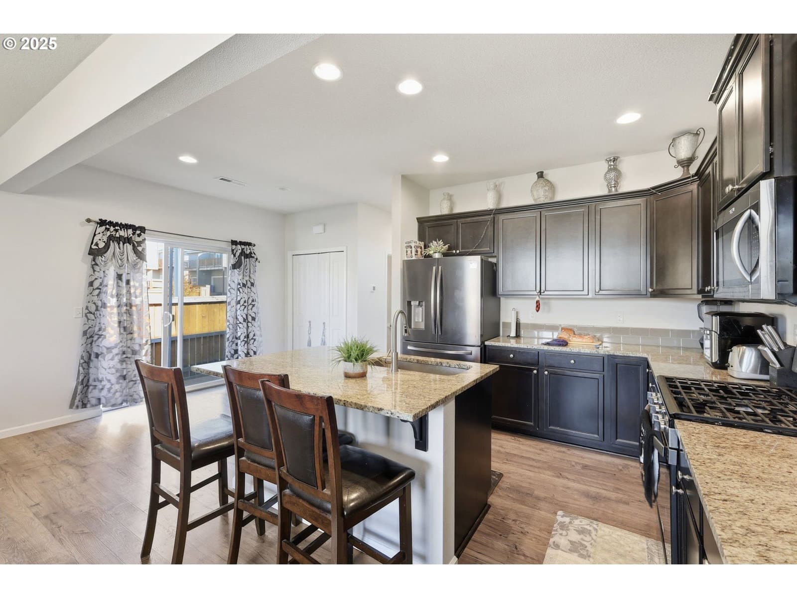 Beautiful light-filled corner home with an open floor plan and modern finishes! This 3-bedroom, 2.5-bath home features a loft and a spacious 2-car attached garage. The kitchen offers an island, granite countertops, stainless steel appliances, and a 5-burner gas stove. Upstairs, all bedrooms and the laundry room are conveniently located, including a huge primary suite with a walk-in closet and private bath. Enjoy a fully fenced yard with a patio plus a peaceful, park-like green space right out front. Just 30 minutes from both downtown Portland and Multnomah Falls. The brand-new Gradin Community Park opening nearby will feature trails, a dog park, sports fields, playground, picnic areas, and rotating food trucks. May qualify for the Gresham Welcome Home Grant!