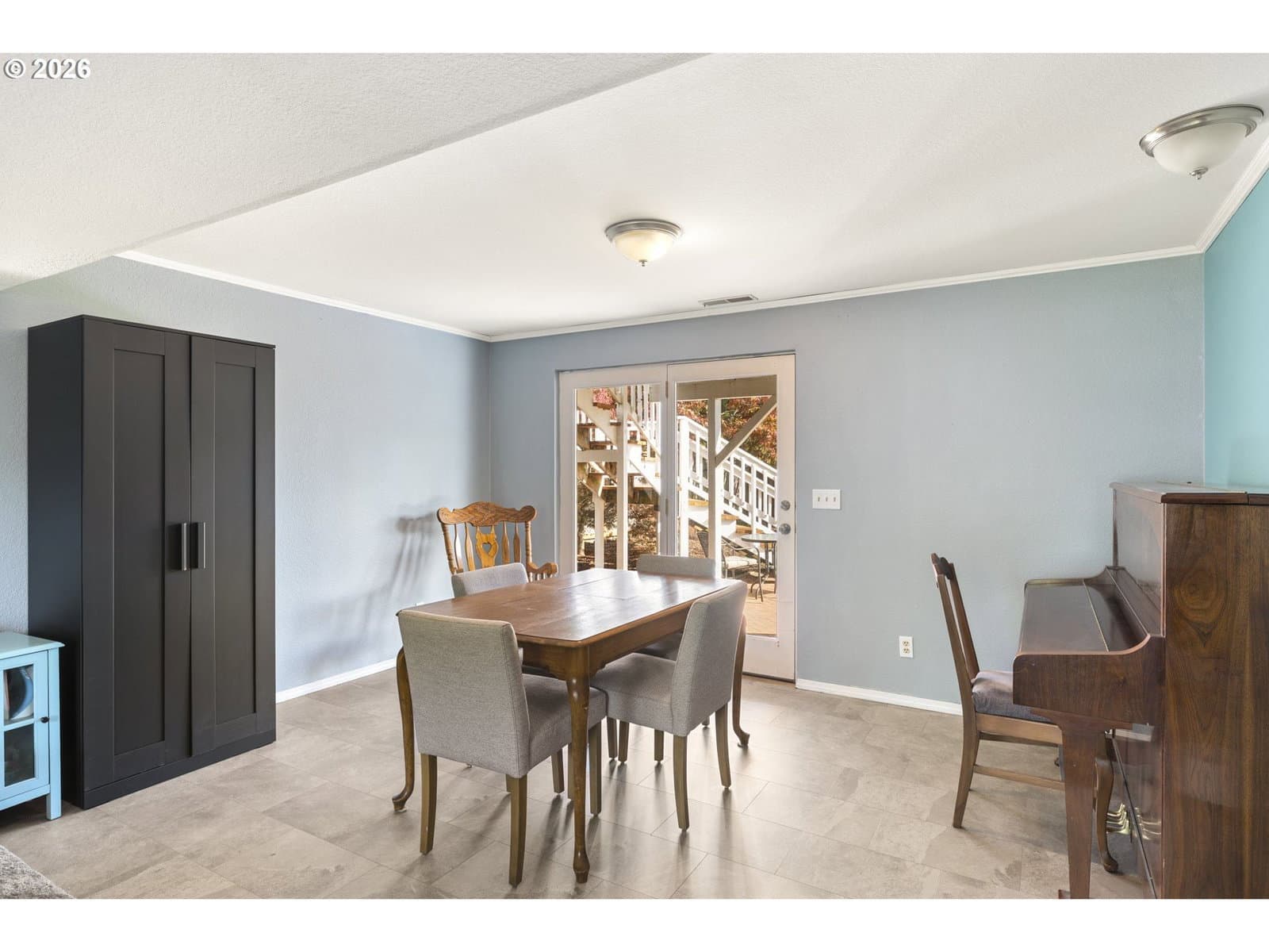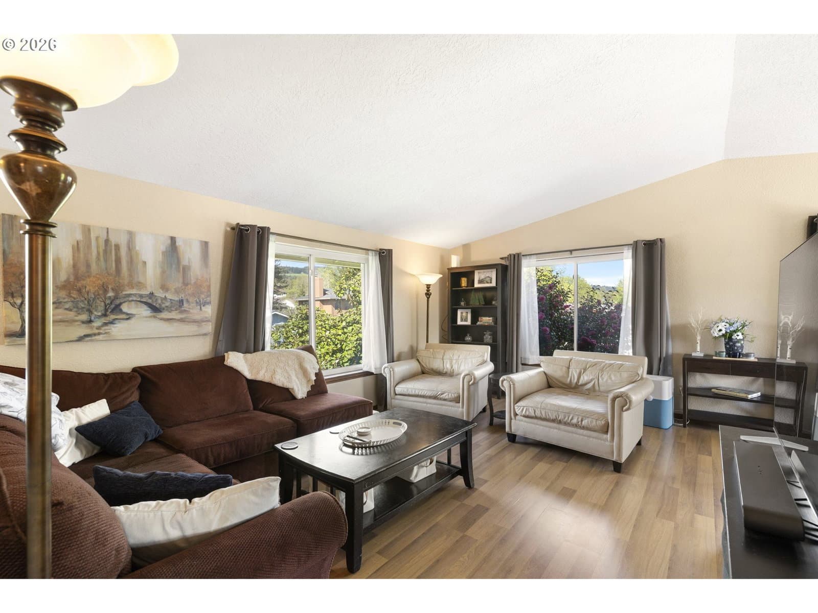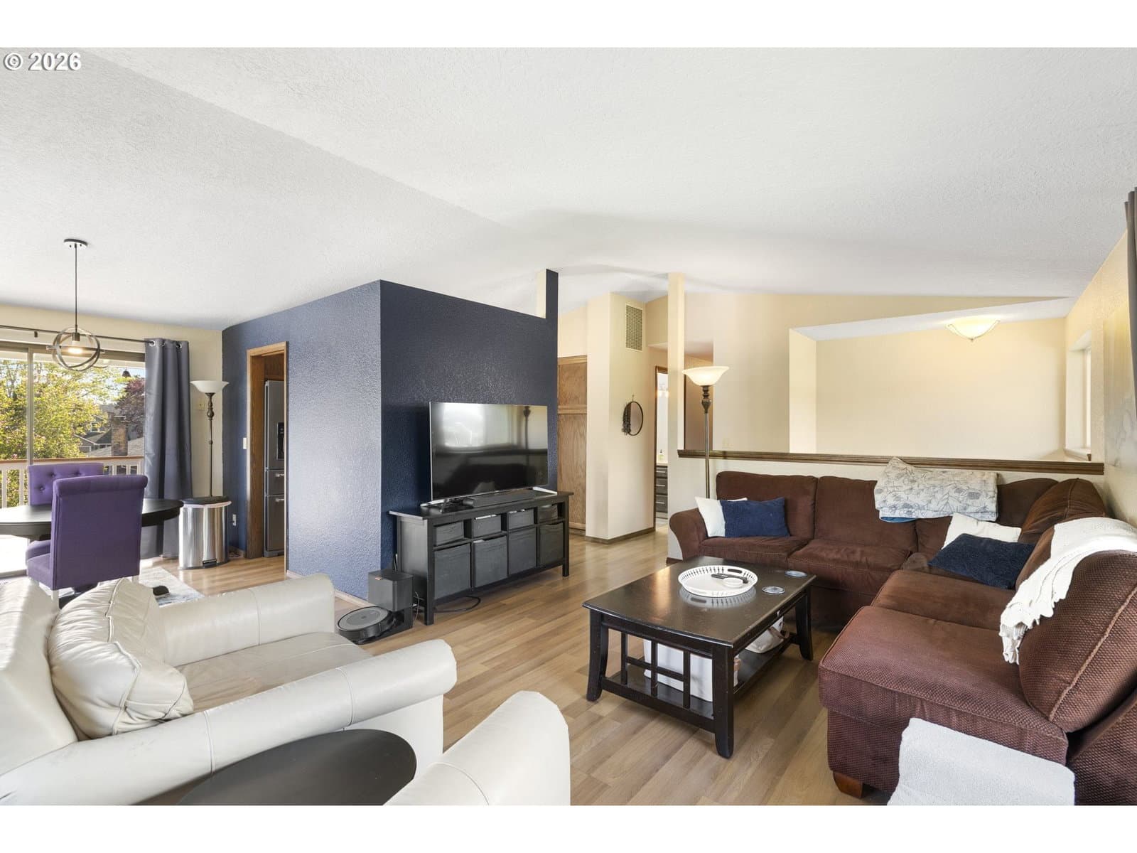 A well-planned split level that balances open living areas with flexible spaces below. Vaulted ceilings and easy-care laminate floors give the living and dining spaces an airy feel, flowing seamlessly into a well-designed kitchen with quartz counters and a standout tile backsplash. Three comfortable bedrooms all feature plush carpet, including a primary suite with double closets and its own private bath. Downstairs, a flexible lower level adapts to whatever you need right now: media room, guest space, homeschool setup, or a quiet retreat. The oversized, extra-deep garage is a major bonus with room for storage, projects, or a full-on hobby space or home gym. Out back, enjoy a fully fenced yard with mature foliage, plus both a deck and covered patio for year-round use. Smart upgrades are already in place with a smart thermostat, smart locks, and a smart garage door opener. Thoughtful spaces inside and out, paired with a location near parks, schools, and the Darnell Wright Sports Complex. Comfortable, functional, and ready for its next chapter!