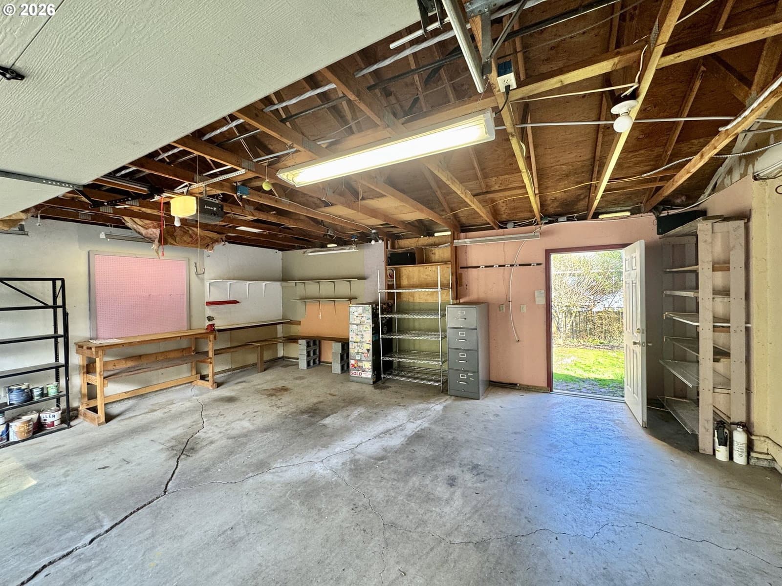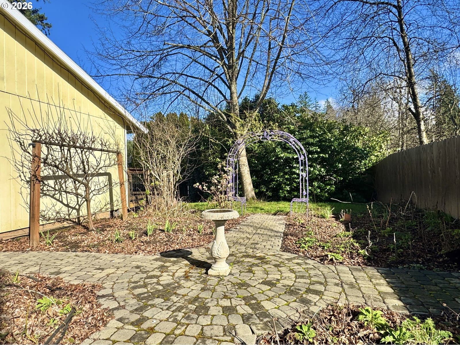 Tucked at the end of a quiet cul-de-sac, this well-maintained 3-bedroom, 2-bath single-level ranch-style home offers privacy and exceptional outdoor living. Peacefully removed from the noise, yet ideally situated for easy commuting- just 3 minutes to I-5 and 7 minutes to Multnomah Village. Built in 1985 with 1,360 square feet of comfortable living space, the home features an efficient, livable layout. All vinyl windows provide energy efficiency throughout. French doors in both the dining area and the primary suite open to the back deck, creating wonderful indoor-outdoor flow and connection to the backyard. The backyard being one of the standout features on this nearly quarter acre lot begins with a spacious deck spanning the entire width of the home. Enjoy mature apple trees, tiered flower beds, a tool shed, and a large, sunny, south-facing garden seating area. A newer charcoal BBQ, deck furniture, and all gardening equipment inside the shed may be included in the sale. The property borders beautiful neighborhood trails and side streets that connect all the way to SW Barbur Blvd via Woods Memorial Natural Area (a 10-minute walk away). Major system upgrades include a brand-new furnace (2025), newer water heater (2023) and a professionally installed 14kW Generac whole-house generator wired directly into the home and designed to automatically power the house during a neighborhood outage. The attached two-car garage provides ample room for storage, hobbies, or workspace (220v power available). A rare blend of seclusion, infrastructure upgrades, and outdoor beauty in a location that keeps you connected. (Buyer to verify all.) Fence to be repaired before transfer of ownership. Check out the 3D walkthrough!
