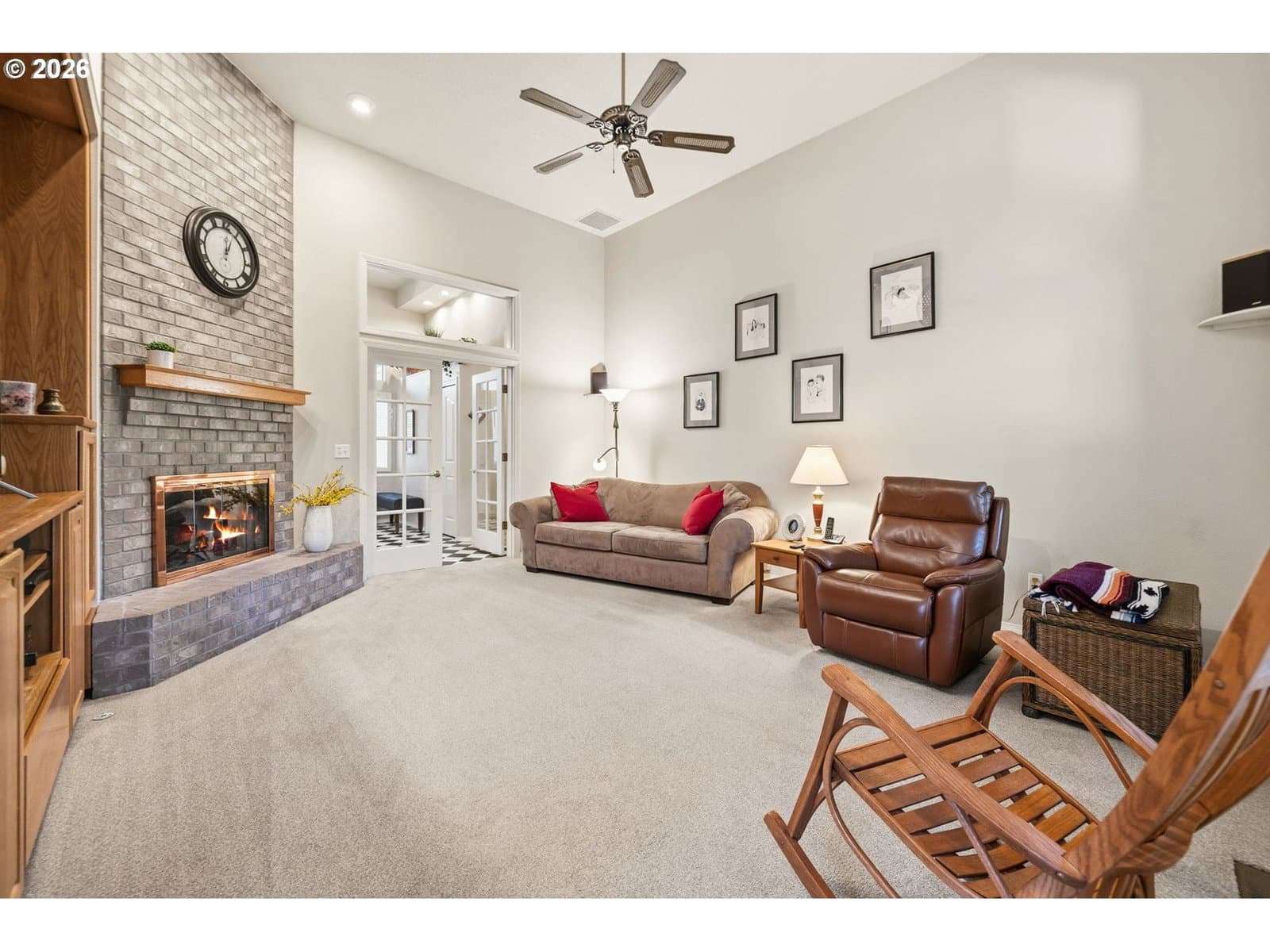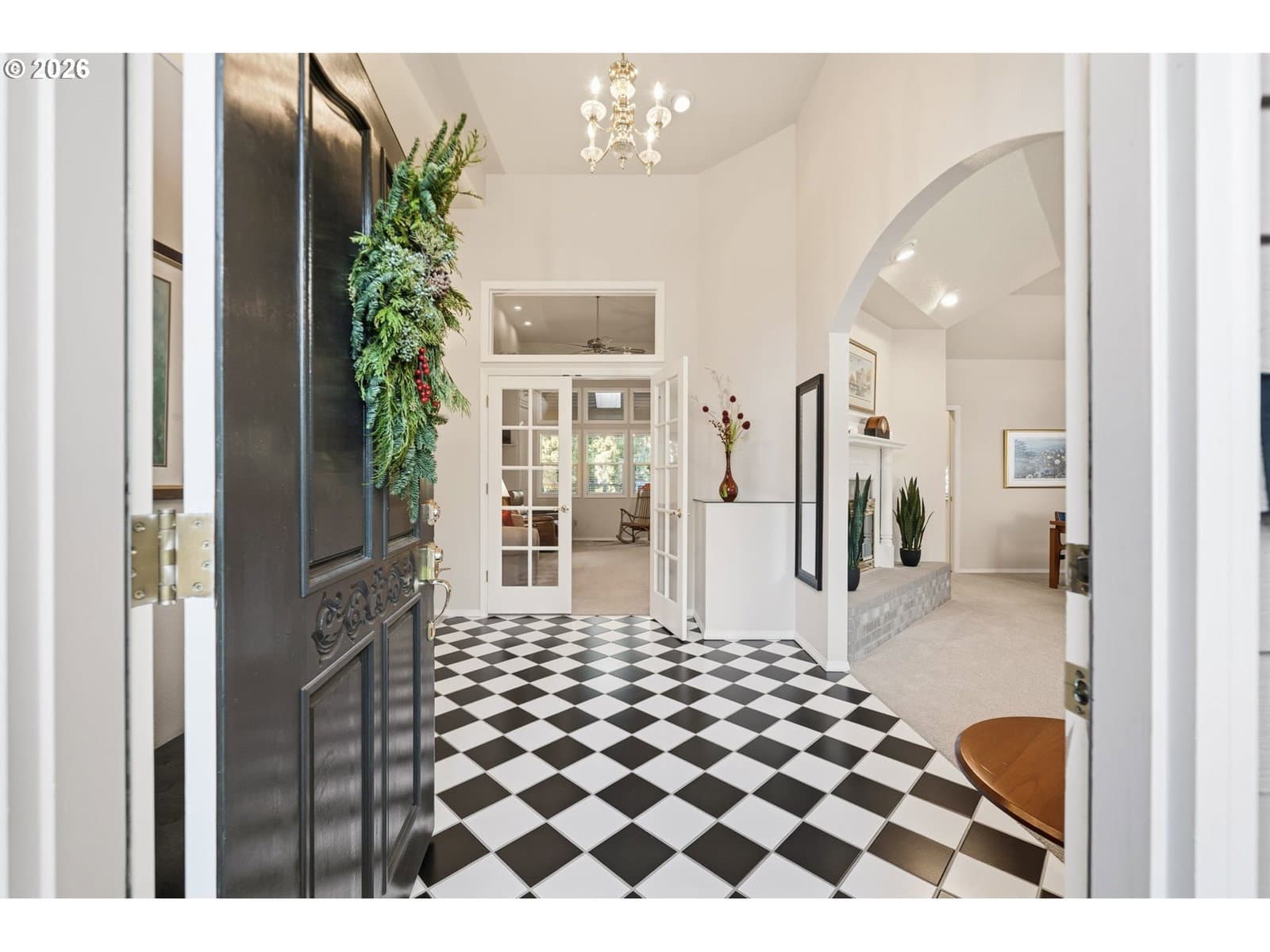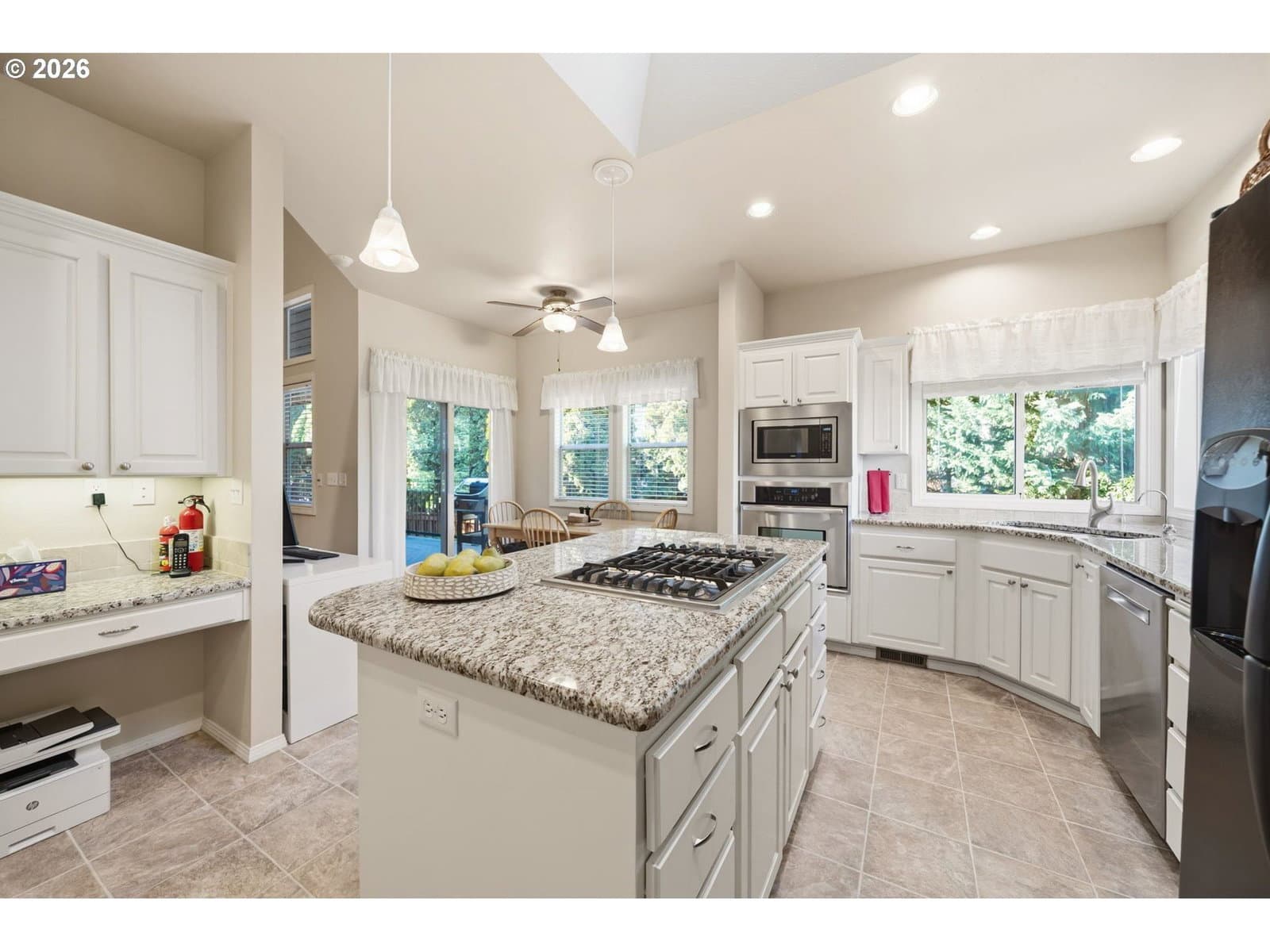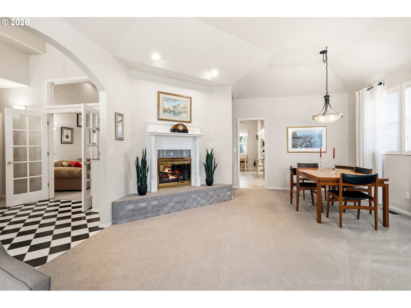 This custom one-level 3BR/2BA is just as neat as a pin and shows like new! Starting w outside, newer driveway, wide pathway to front door, and exterior paint all completed in 2020. Brickwork w ‘eyebrow’ archway leads to covered entry. Once inside black and white tiles on diagonal make for a pleasing and classic aesthetic. Formal living RM off to the right w double-sided fireplace shared w family RM. Continue thru to dining area w alcove for showcase or artwork. Head to kitchen w vaulted ceiling and skylight, white cabs, solid surface counters, 4-burner gas cook island w eating bar, Bosch dishwasher, built-in Whirlpool micro, and convection oven. Appliance garage, pantry, built-in desk, and eating nook. All feels spacious and open, light and bright. From eating nook, access covered wood deck w new railing in 2025. Enjoy outdoor gatherings and BBQ in all seasons! Family RM offers custom floor to ceiling wall unit and fireplace. Tall and vaulted ceilings. Warm neutral interior paint creates a very inviting appeal. Just off family RM double doors lead into a generous RETREAT of a primary suite leads to spacious en-suite offering a soak tub w waterfall adding to a spa-like appeal, separate shower, separate and private toilet. Dual sinks, solid surface countertop, and walk-in closet. This home has been lovingly maintained, lightly lived in w a ‘shoes off policy’. Carpet looks beautiful. HVAC system new in 2023. Beautifully landscaped and professionally maintained w front yard sprinklers. Backyard offers area for above ground gardening and storage space under deck. Largely privatized w fencing and tall arborvitae. Feels wonderfully private both inside and out. 3-car garage w painted floor. Great neighborhood and friendly Home Owner Association. Dues are $483 annually covers common areas and management. Wonderful proximity to Tualatin Hills Park & Rec, trails, parks, EZ access to HWY 26, quick commute to hi-tech, w endless options for shopping, groceries, dining, and more. Jenne Lake Park Project
