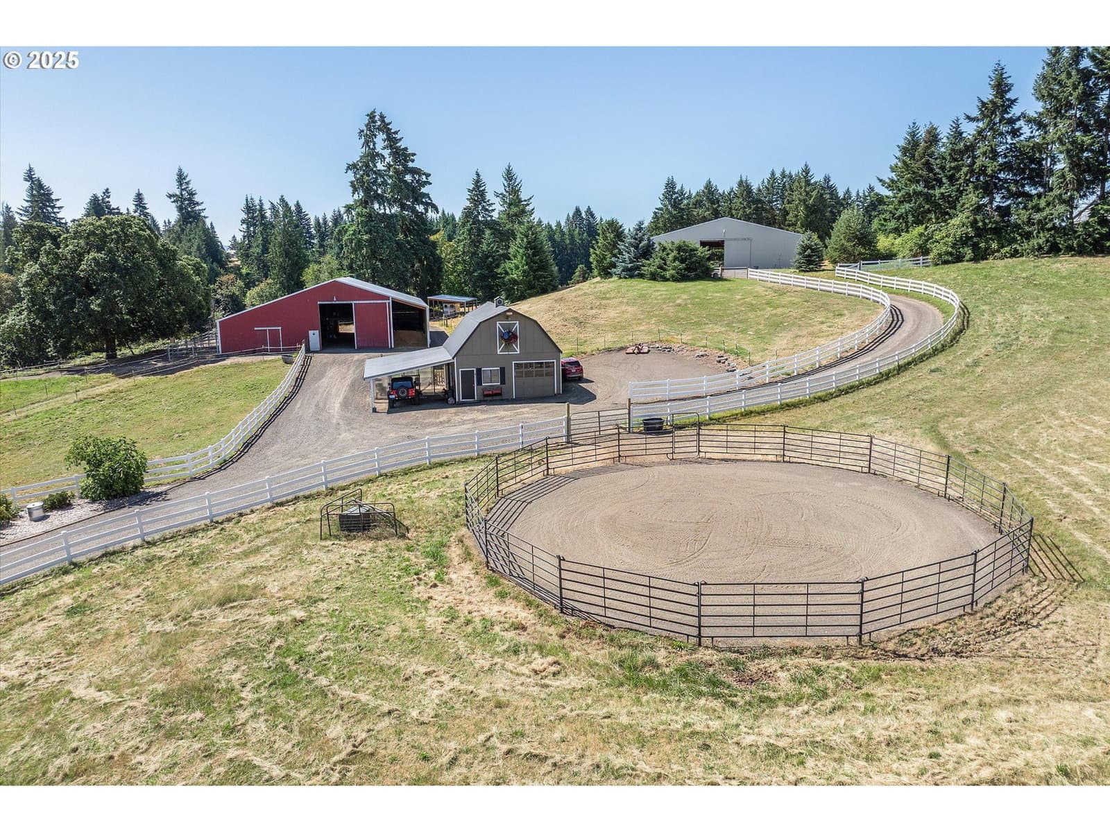 Discover the perfect blend of classic elegance and country charm with this exceptional 30-acre equestrian estate. Nestled amid rolling hills and open pastures, this private, gated retreat offers a luxurious lifestyle in a serene setting—just minutes from the conveniences of Canby and Oregon City. At the heart of the property sits a beautifully remodeled 3,000+ sq ft farmhouse, where quality craftsmanship and attention to detail shine throughout. With 4 bedrooms and 4 bathrooms, including a second primary suite, the home offers both comfort and flexibility for multi-generational living or guest accommodations.The gourmet kitchen, complete with a cozy fireplace nook, is the true centerpiece—ideal for quiet mornings . Multiple decks create effortless indoor-outdoor living, perfect for hosting gatherings or enjoying evenings around the fire pit.To support your equestrian dream is a 7-stall barn complete with a spacious hay loft, shavings shed, and everything you need to care for horses in comfort and style. The impressive 71x144 covered arena features a heated tack room and a dedicated viewing area, making it ideal for training and year-round riding. 6 fenced pastures and mud free/all weather paddocks make it easy to manage pony-life. Meandering trails and a serene pond, offer opportunities to enjoy riding, or hiking on your own expansive estate.Additional highlights include a well-equipped shop and greenhouse with a number of raised beds for the gardening enthusiast .Whether you're a seasoned equestrian, hobby farmer, or simply seeking a peaceful place to call home this is more than a property—it’s a refined lifestyle, where luxury meets functionality in a beautiful country setting. And for peace of mind, the whole-house generator is hardwired in the event of emergency.