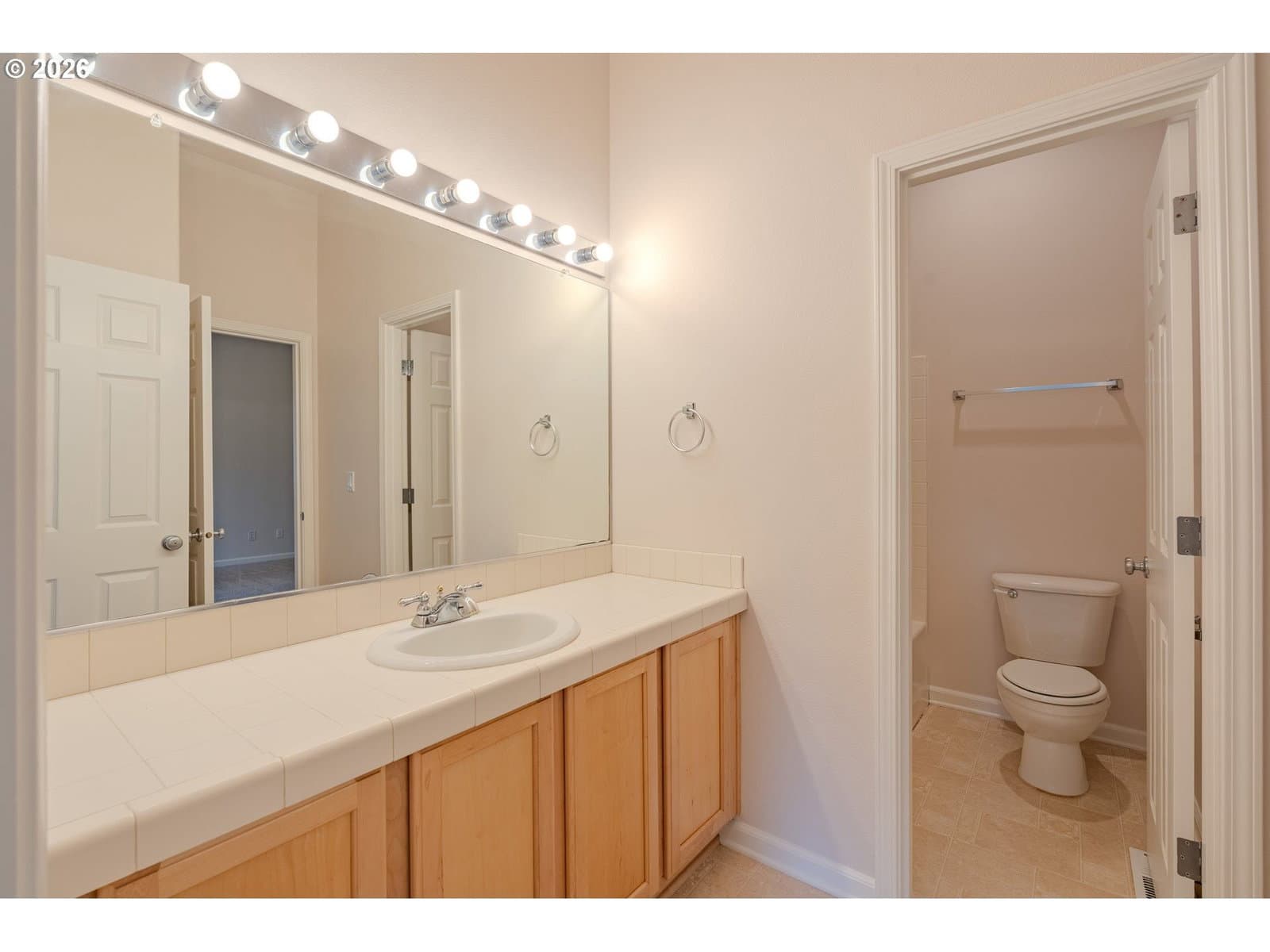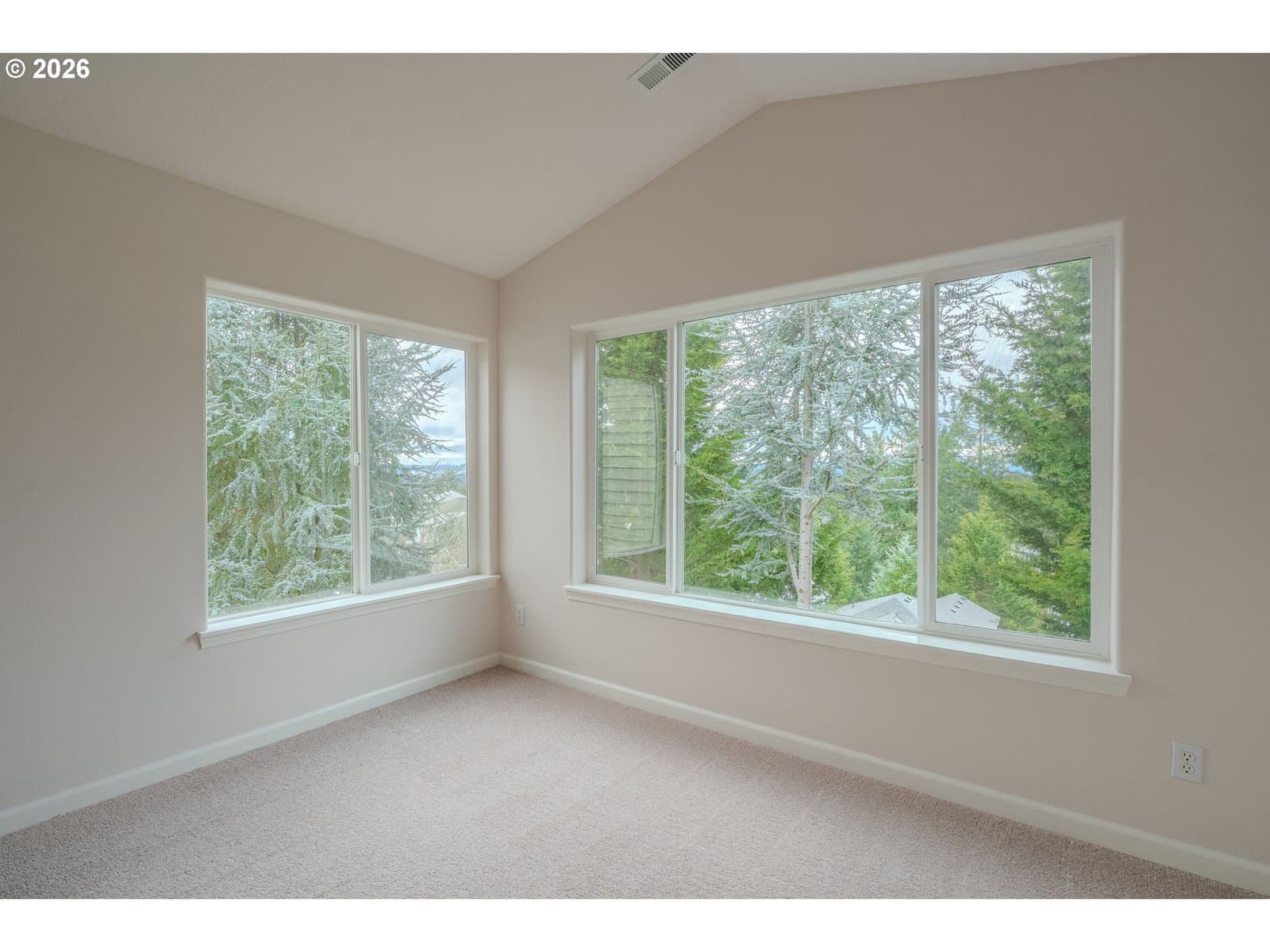 Perched on a private gated street just off Bull Mountain Road, this impeccably maintained residence commands breathtaking, forever valley and city views from nearly every room—an irreplaceable backdrop that elevates everyday living and secures long-term view value. Soaring vaulted ceilings and expansive windows frame the landscape beautifully, filling the spacious floor plan with natural light and a sense of openness rarely found in this price category. The open-concept kitchen anchors the home with a generous island, abundant cabinetry, and seamless connection to the dining and living areas—designed for effortless entertaining. Two expansive view decks extend the living space outdoors, creating a premium vantage point for sunrise coffee, sunset gatherings, and sparkling evening city lights. Thoughtfully designed for flexibility, the home features two primary suites, offering a rare and highly desirable separate living space layout. Whether accommodating extended family, long-term guests, dual living arrangements, or private executive work-from-home space, the configuration provides both independence and cohesion under one roof. Additional bedrooms further enhance adaptability for evolving lifestyle needs. Recent updates—including fresh interior paint, brand-new flooring, and new carpet—deliver true move-in-ready confidence and reinforce long-term investment appeal. Complete with A/C, sprinkler system, and a two-car garage, this low-maintenance property is located within the highly sought-after Tualatin School District and just minutes from parks, shopping, and dining. Private, flexible, and defined by exceptional views—this is premium Bull Mountain living with enduring value.