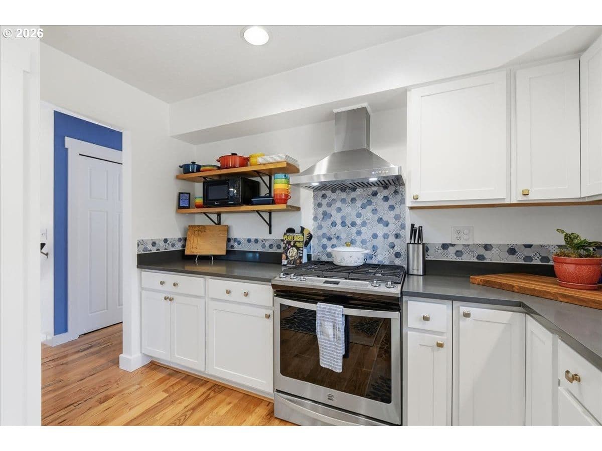 Stunning West Portland Park home in true move-in condition. Thoughtfully updated over the years with key improvements including new backyard fencing, garage doors and opener, front door with updated panel and casing, garage-to-home security door, gas fireplace logs, furnace, central A/C, and bathroom lighting with exhaust fan (2020). Exterior paint and additional bathroom lighting/exhaust fan completed in 2022. New tile flooring was installed in the upstairs bathroom in 2023. Hardwood floors on both levels were added in 2024, and tile flooring in the lower-level bath and utility room was added in 2026. The home offers four bedrooms and two bathrooms with excellent natural light throughout. Spacious kitchen with ample storage and a functional layout. Outdoor living shines with a generous, fully fenced yard ideal for entertaining, featuring fruit trees and berry bushes. A Prime location near I-5 trailheads, parks, shopping, Multnomah Village, and public transportation. [Home Energy Score = 4. HES Report at https://rpt.greenbuildingregistry.com/hes/OR10070266]