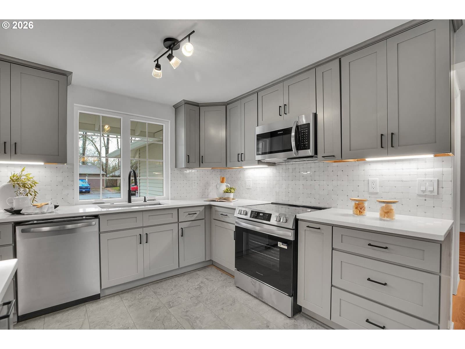 Gas Water Heater, Dishwasher, Disposal, Microwave, Plumbed For Ice Maker