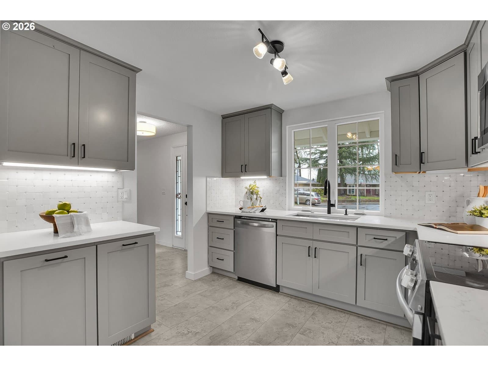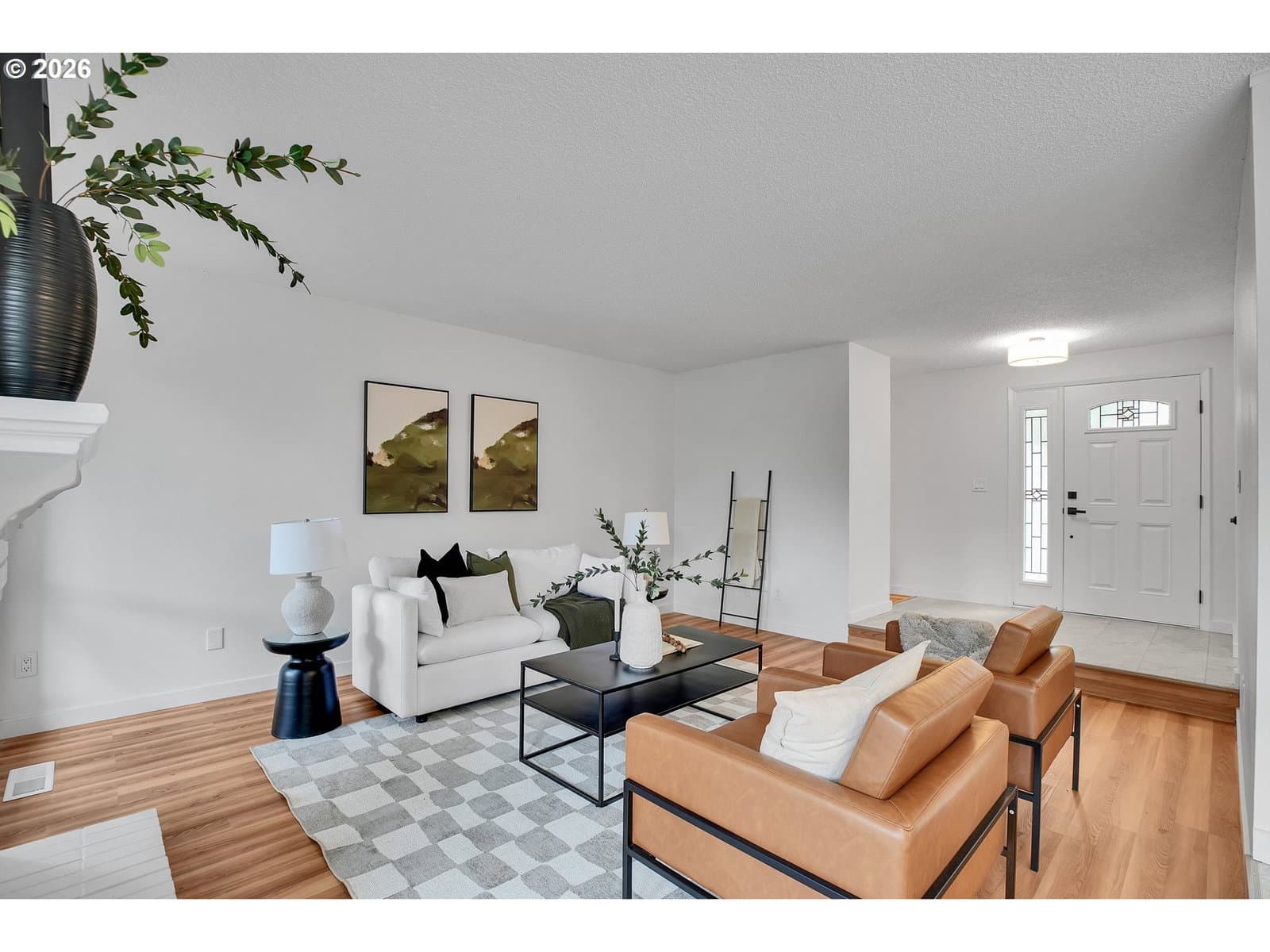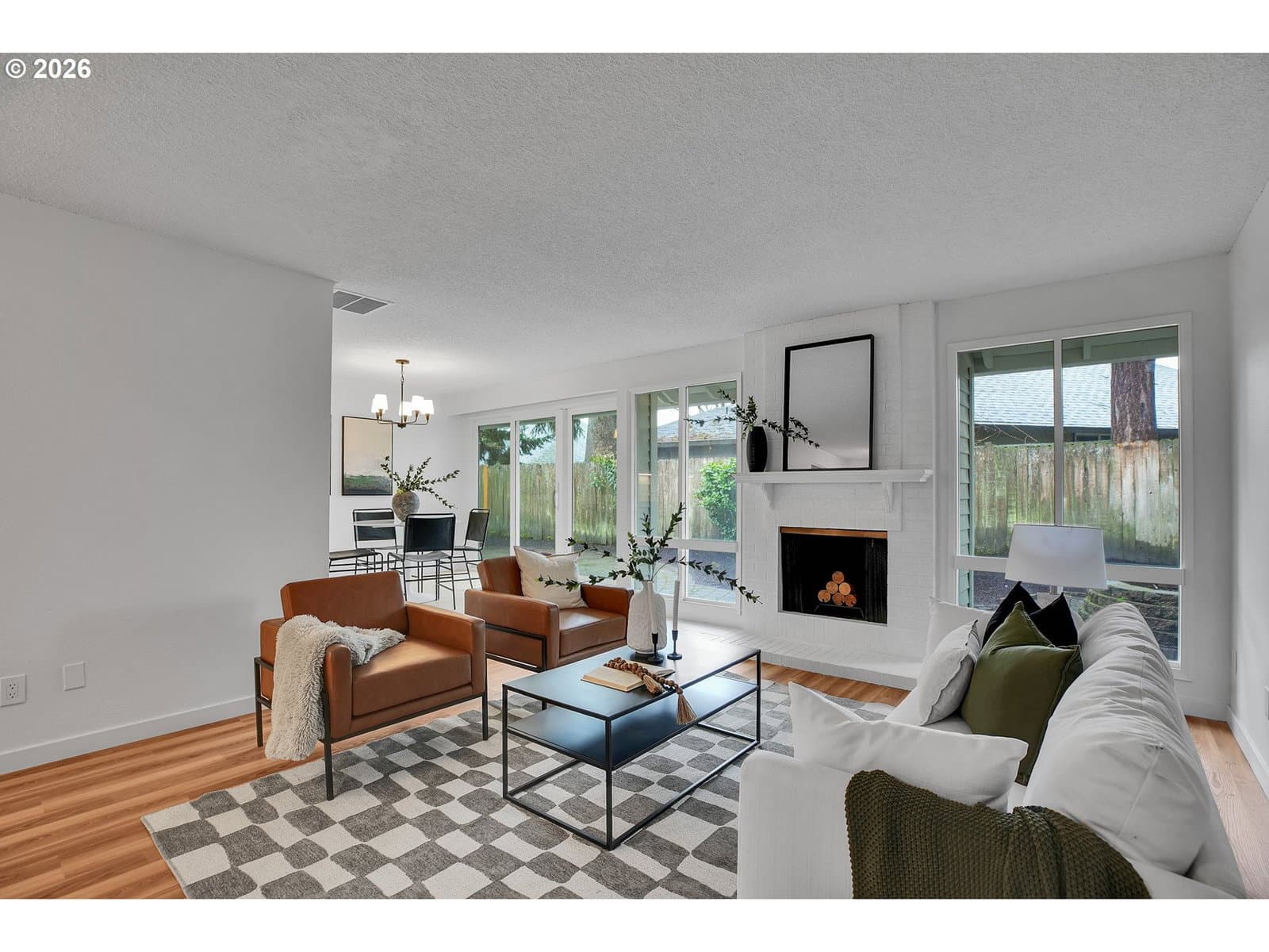 Tastefully updated single-level ranch tucked on a quiet cul-de-sac, minutes to parks, schools, shopping, and dining. Inside, enjoy a bright, inviting layout filled with natural light, a formal living room with a classic brick fireplace, and a separate dining area perfect for hosting. The upgraded kitchen features shaker cabinets with soft-close drawers, quartz countertops, tile backsplash, under-cabinet lighting, and ss appliances. The primary suite includes dual closets and a private en-suite with a designer-tile walk-in shower. A spacious secondary living room adds flexibility for a bonus lounge, home office, or playroom. Fresh interior paint and modern fixtures create a clean, cohesive feel throughout. Major improvements include a brand new roof for added peace of mind. This home has central air conditioning, a gas furnace, and an indoor laundry space. Outside, fresh landscaping boosts curb appeal, while the private backyard offers a nature-inspired setting with a paver patio and firepit. Front and back yard both equipped with zoned sprinkler system. With timeless updates, easy indoor-outdoor living, and a prime location near countless amenities, this home is truly move-in ready. Owner is the listing agent.